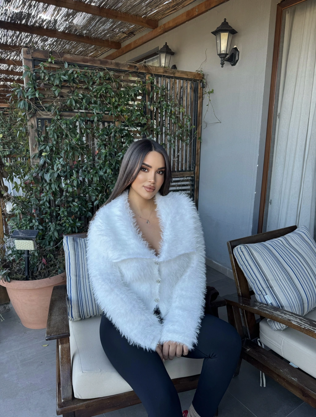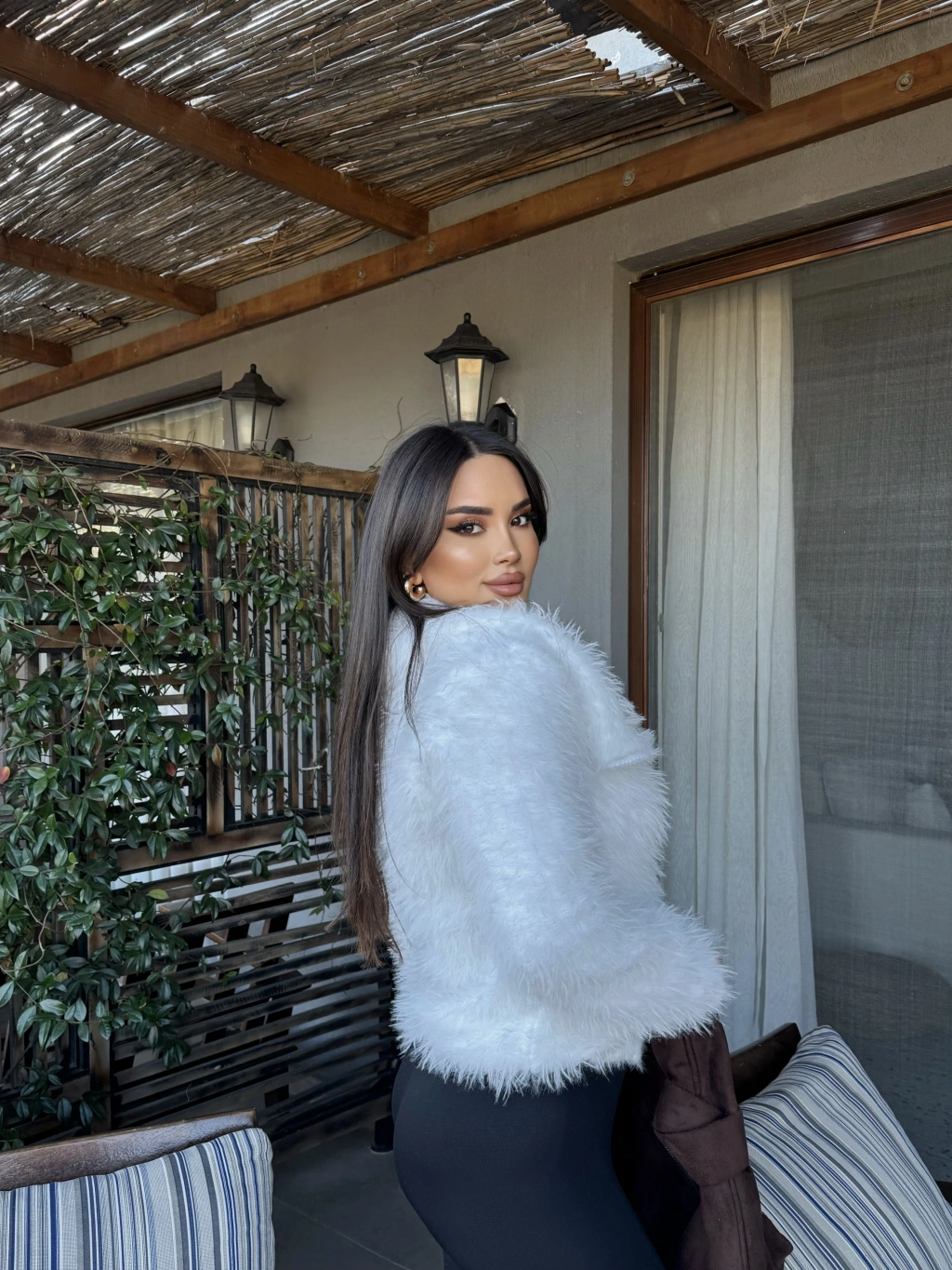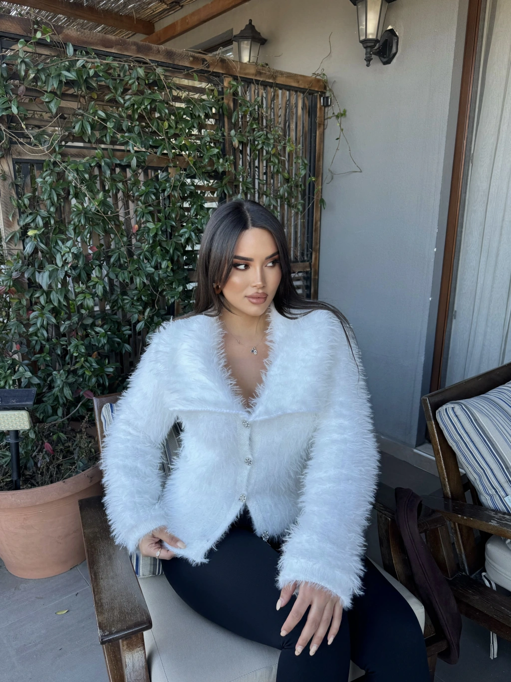 Beyaz Polo Yaka Taşlı Yumoş Kazak