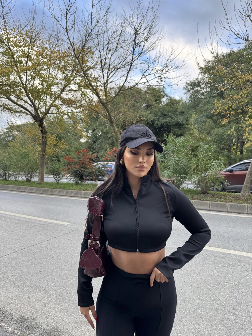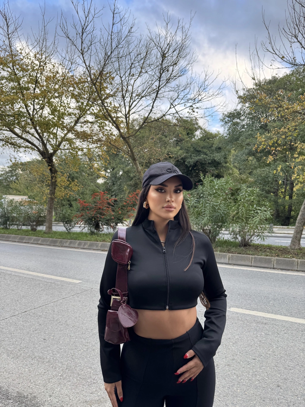 Crop Siyah Fermuarlı Hırka