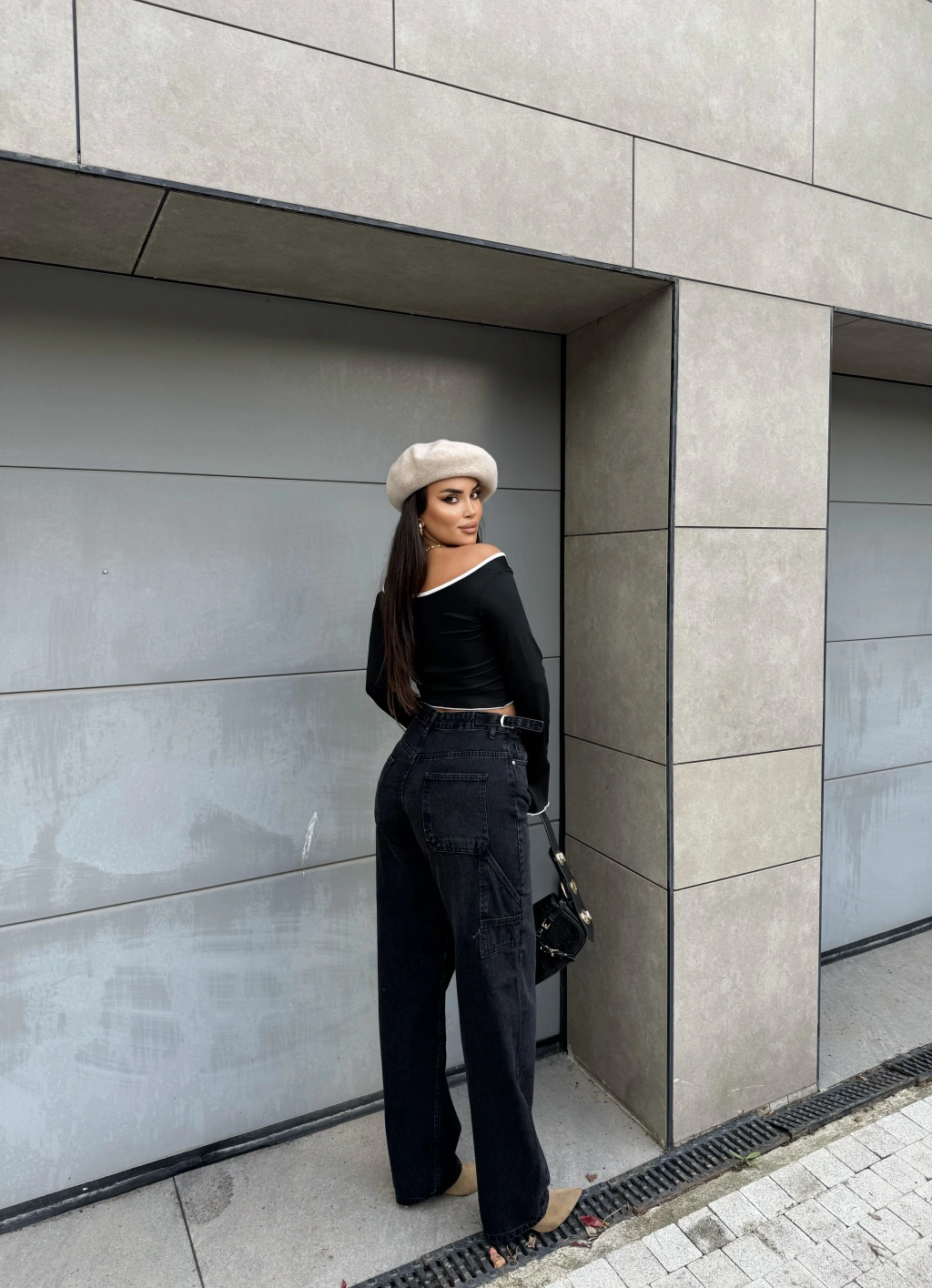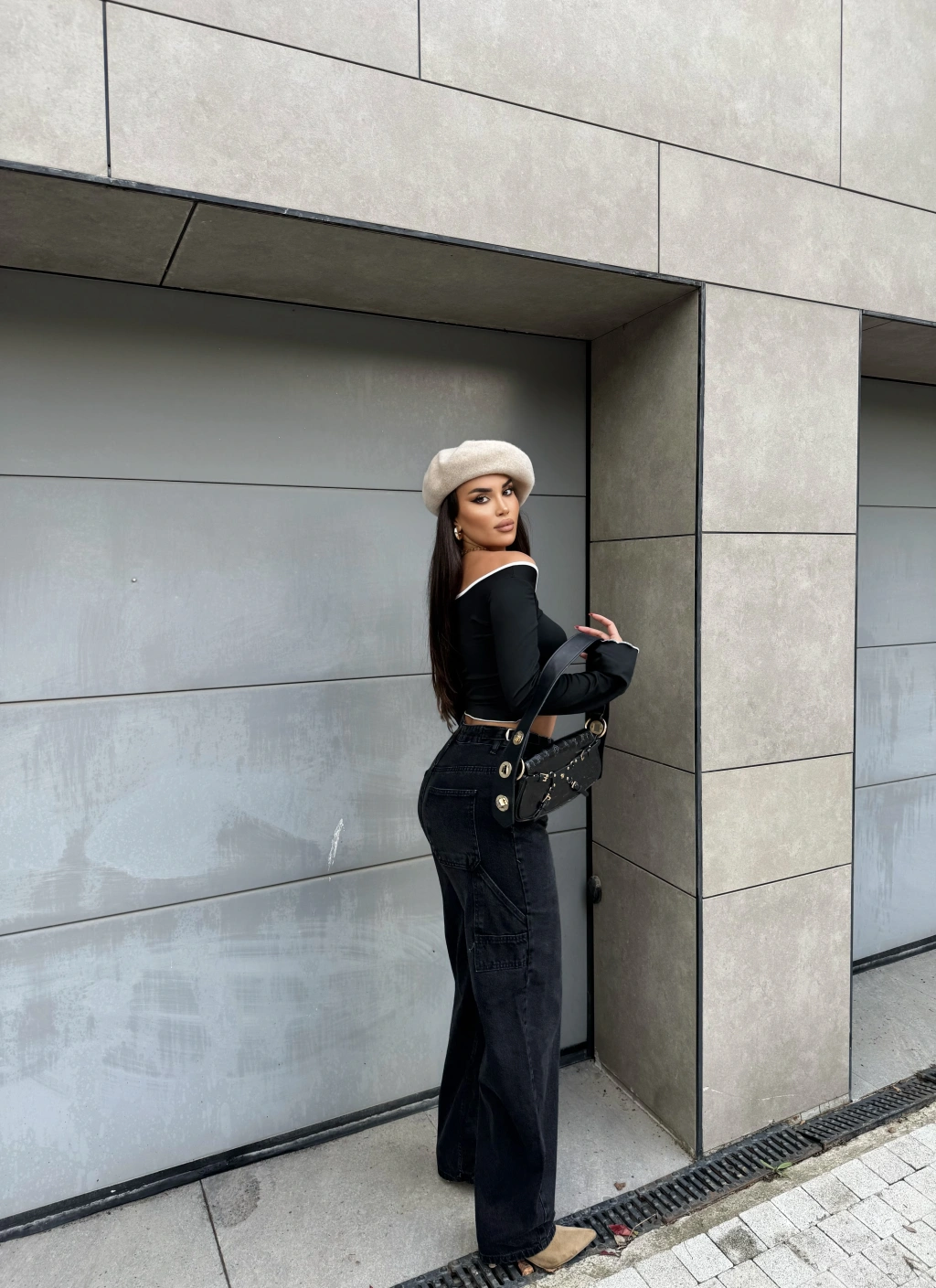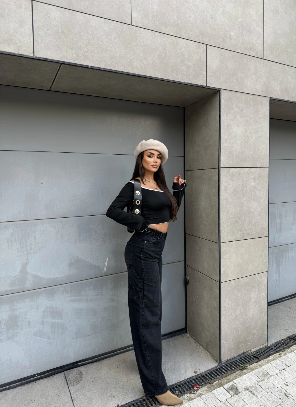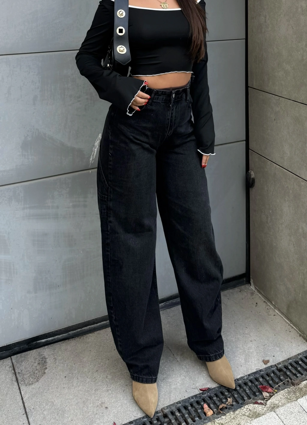 Füme Yan Apoletli Baggy Pantolon