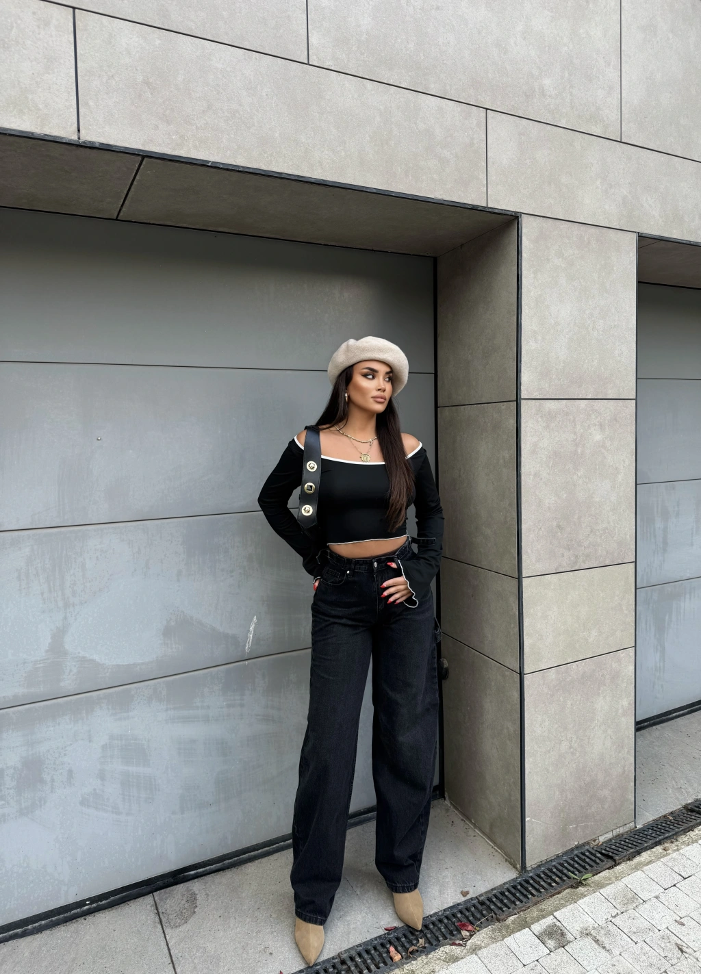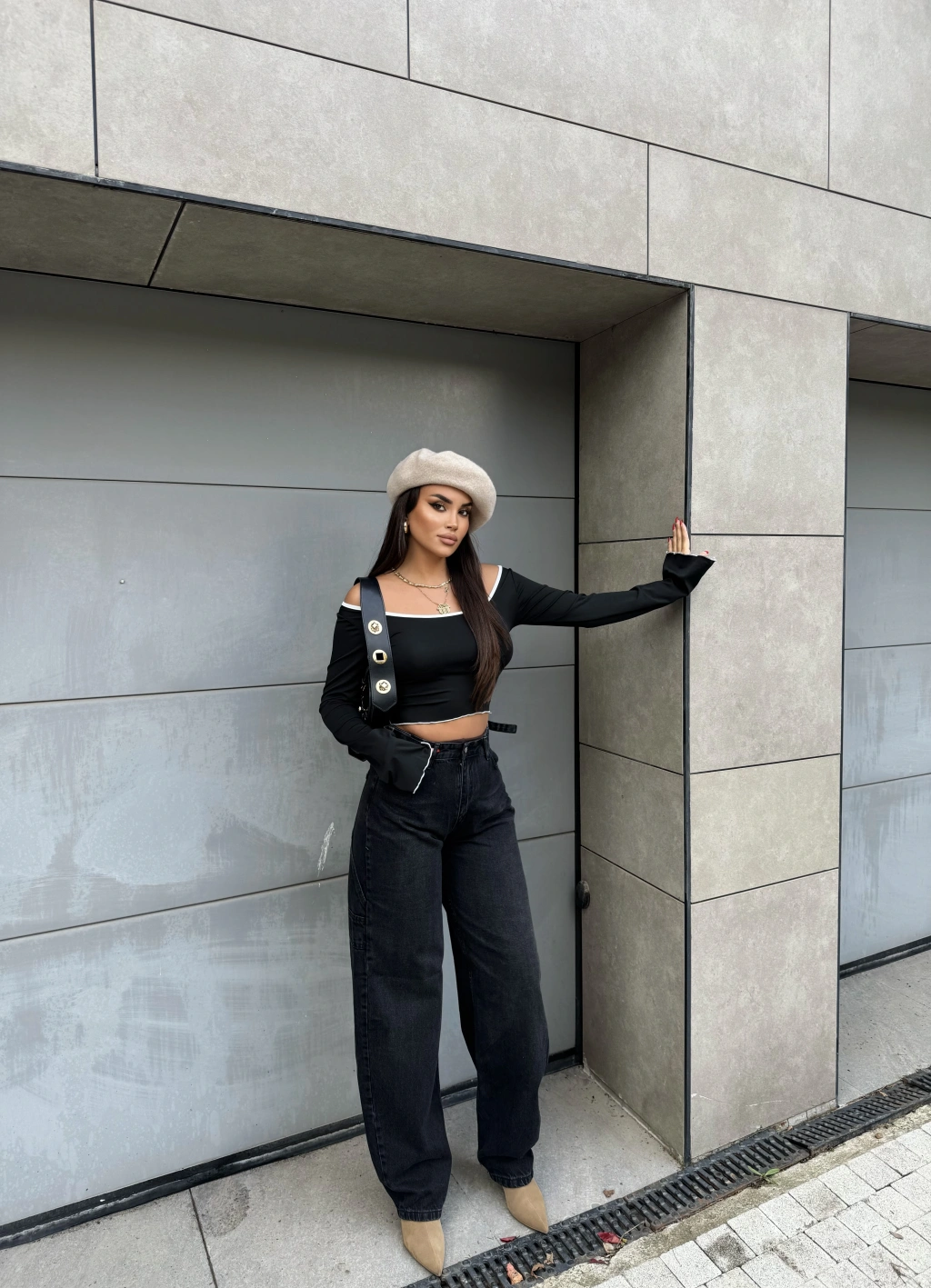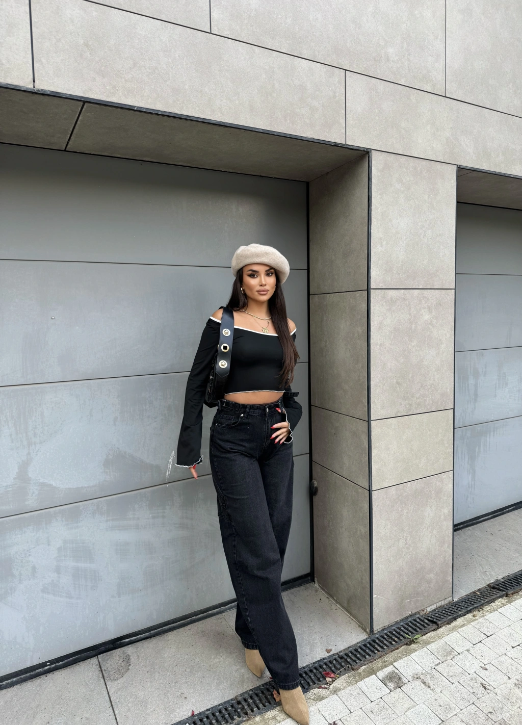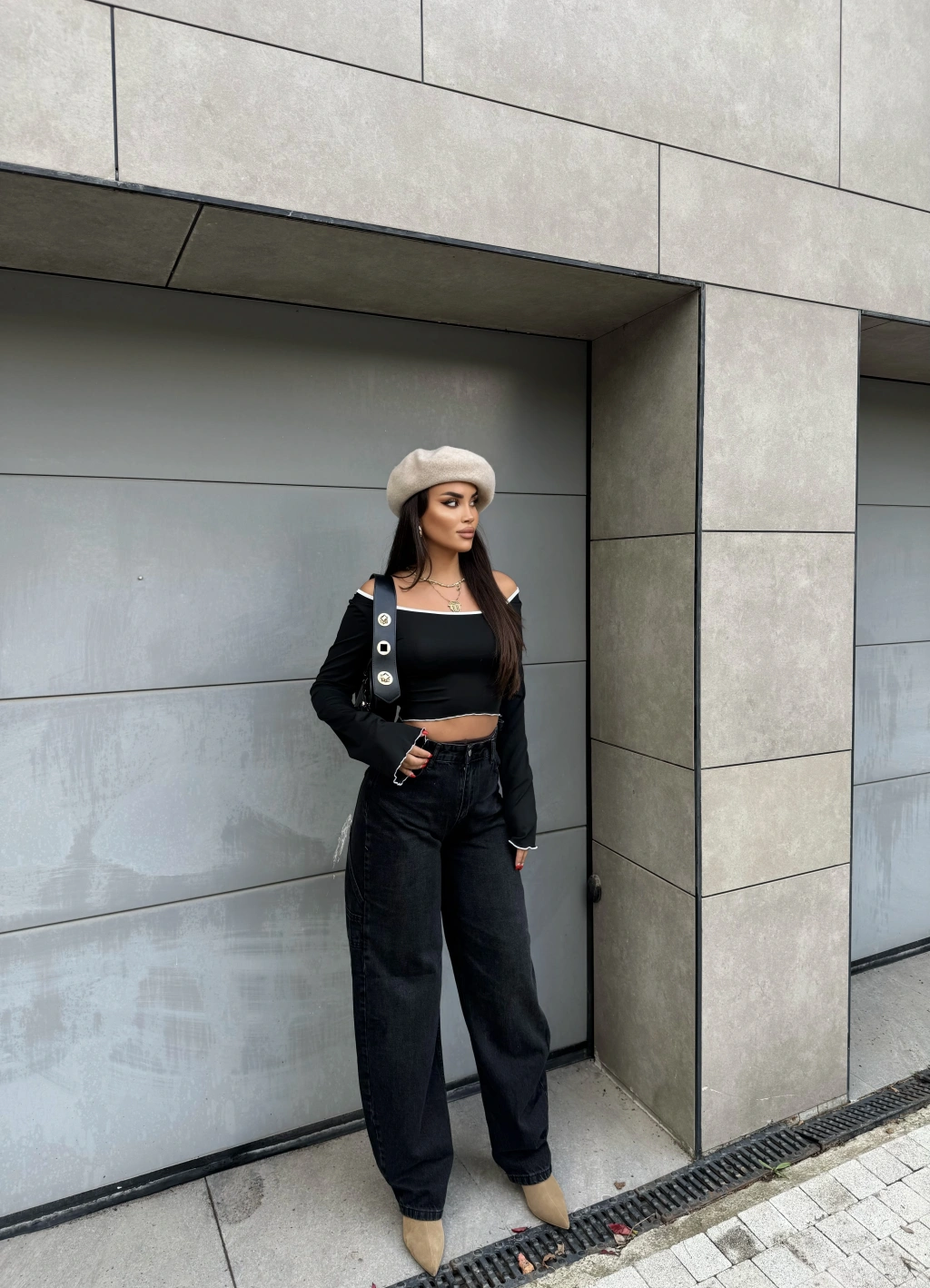 Füme Yan Apoletli Baggy Pantolon