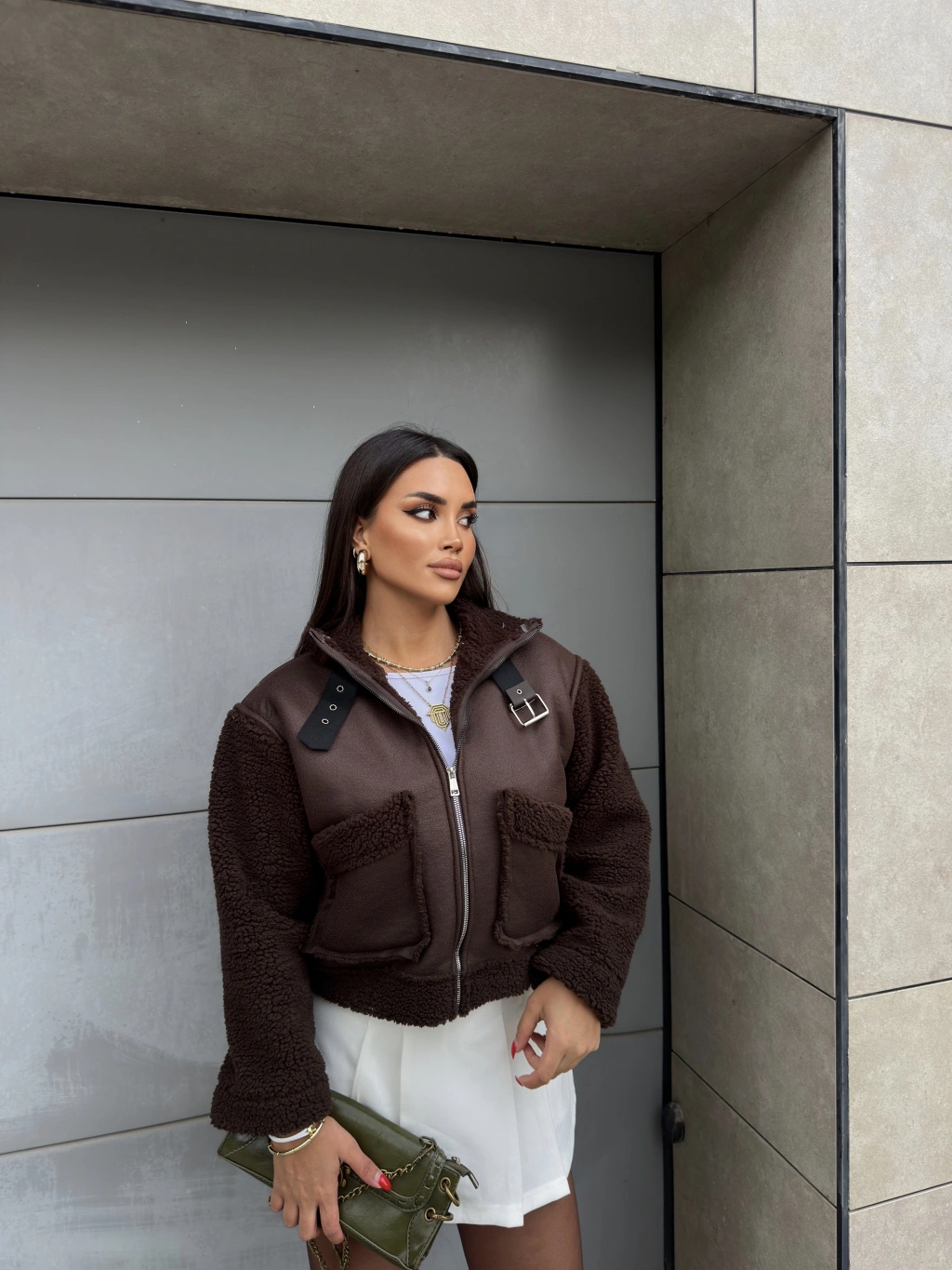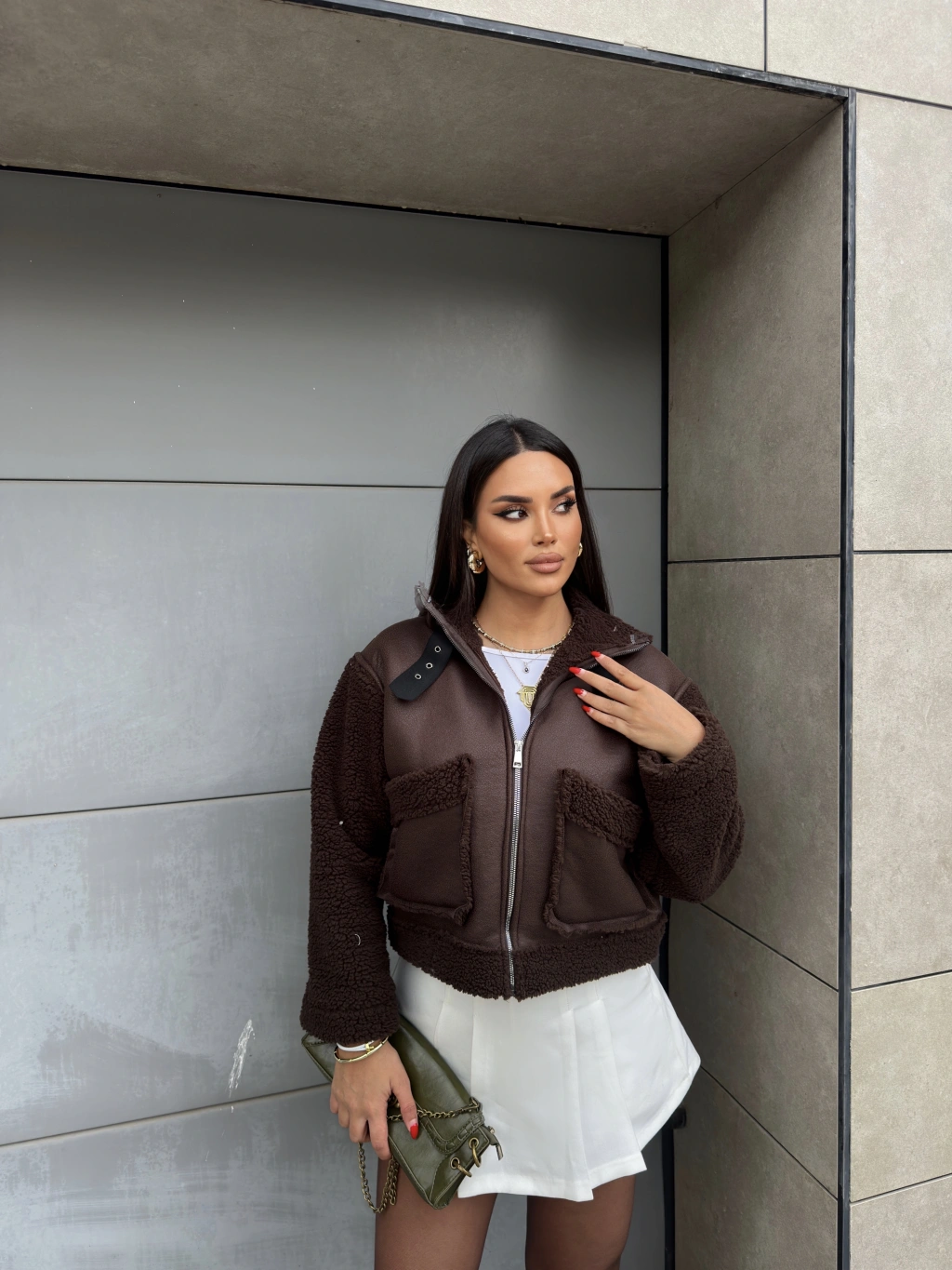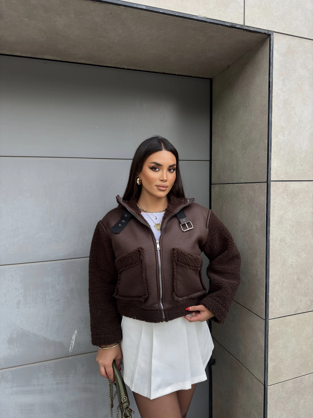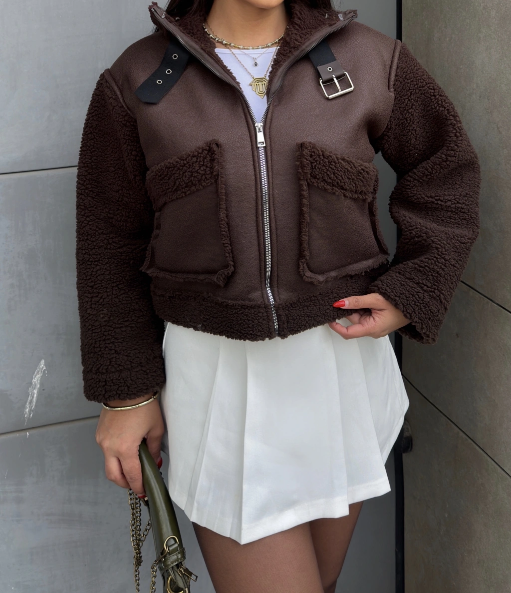 Kahverengi Cep Detay Premium Mont