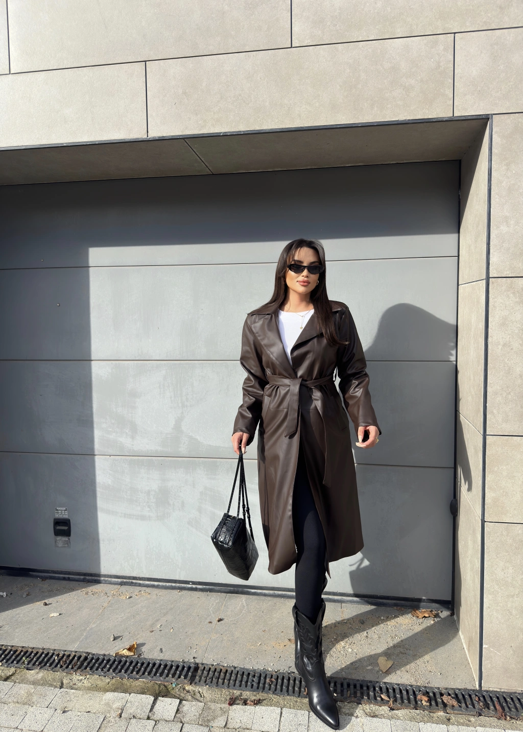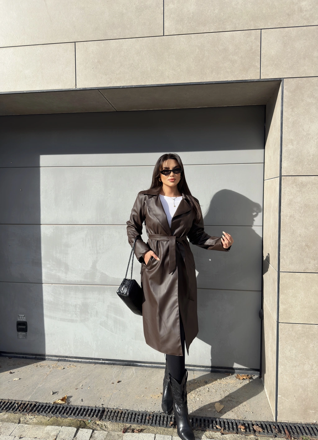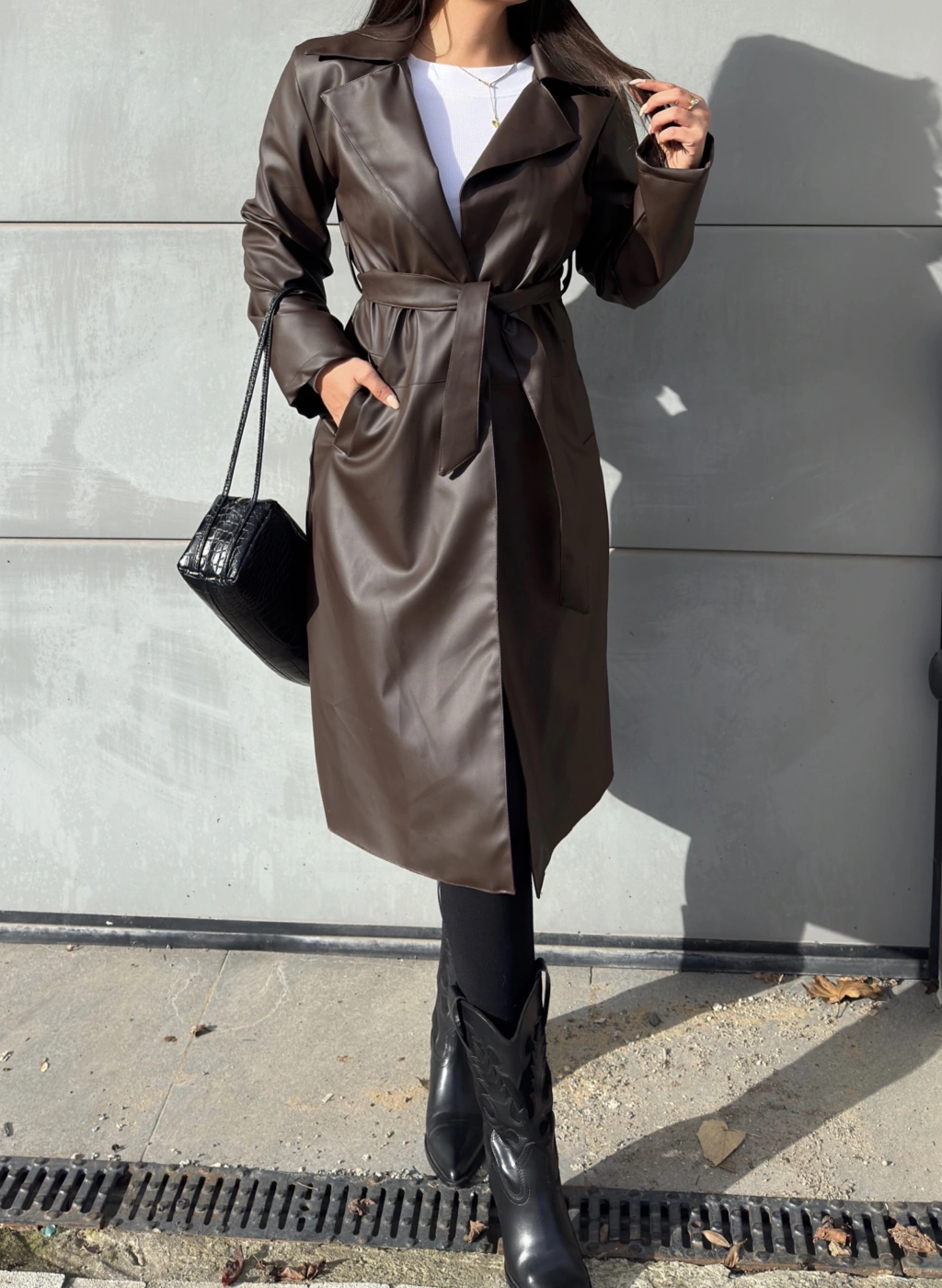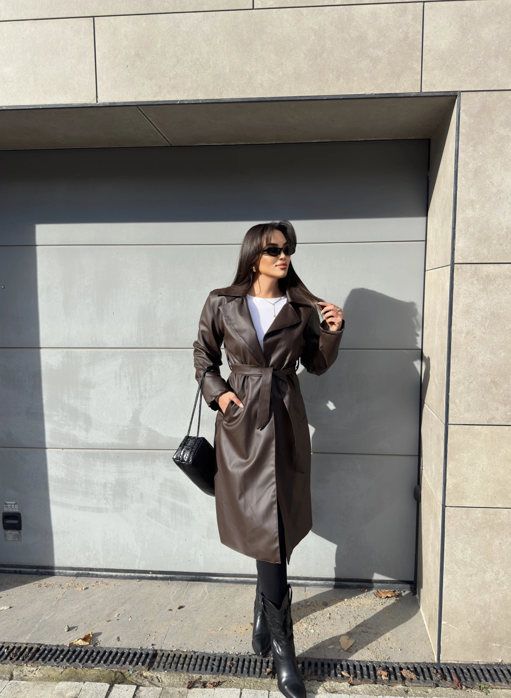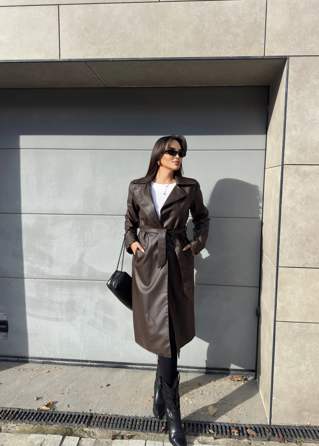 Kahverengi Deri Trençkot