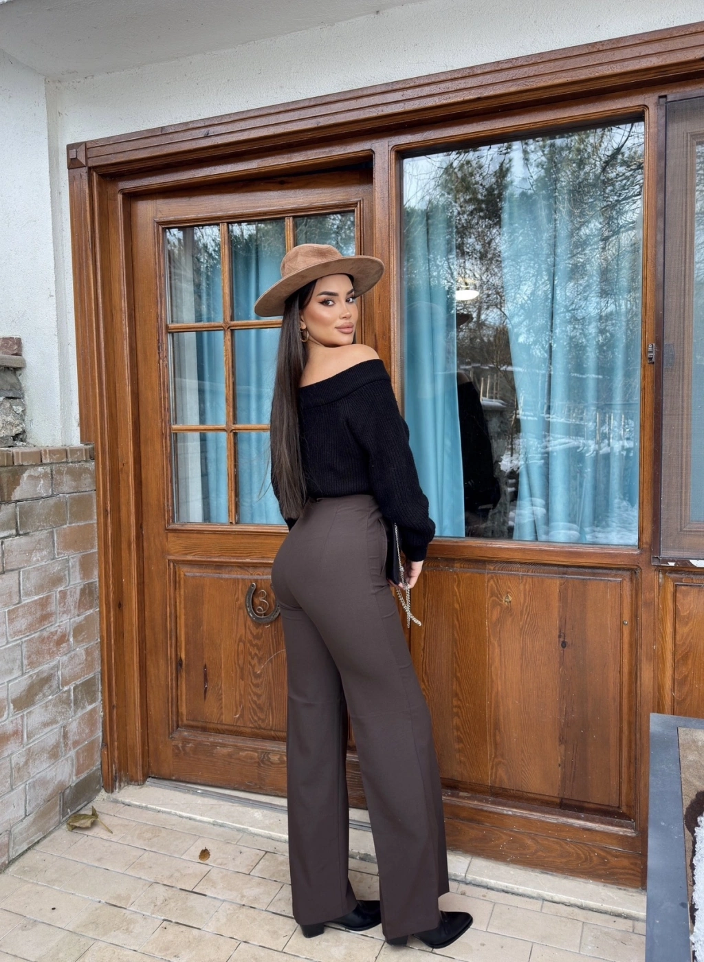 Kahverengi Yüksek Bel Kumaş Pantolon