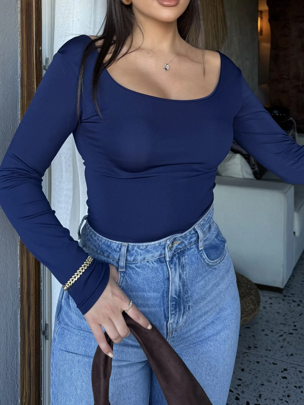 Lacivert Kare Yaka Bodysuit