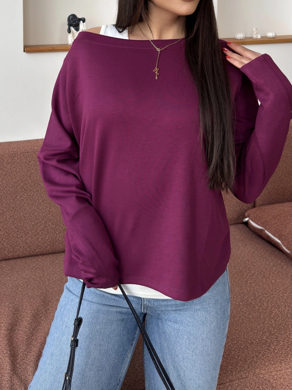 Mürdüm İkili Kayık Yaka Bluz Takım
