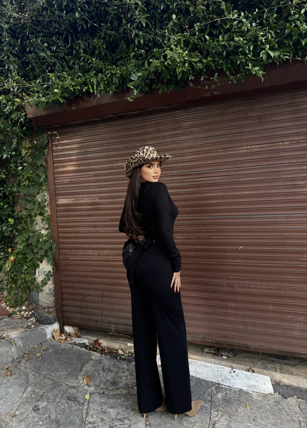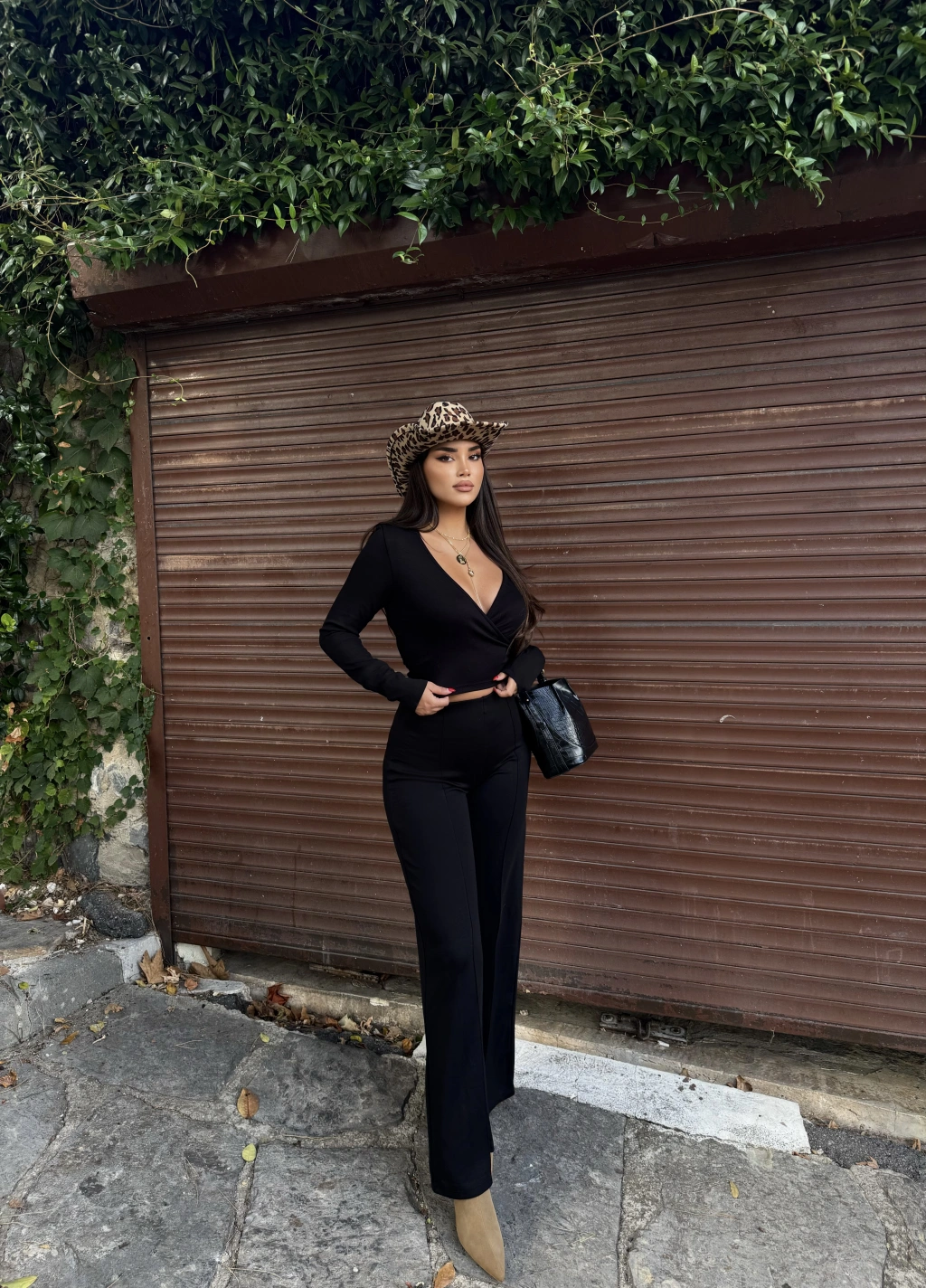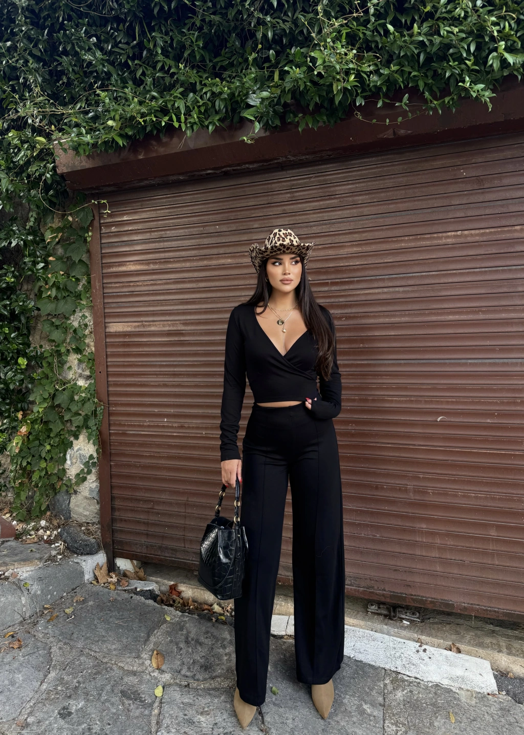 Siyah Modal Kruvaze Yaka Bağlamalı Takım