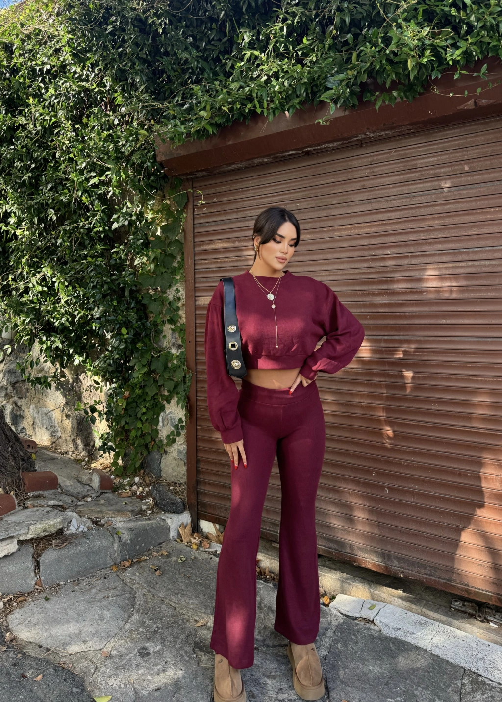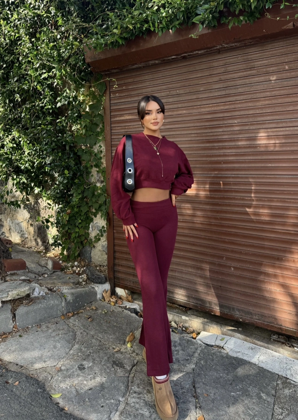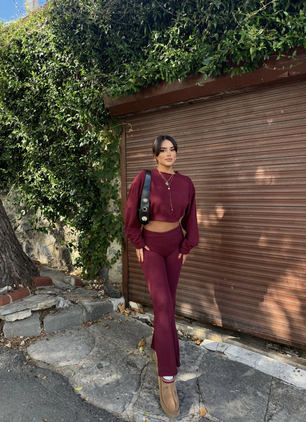 Bordo Bisiklet Yaka Yumoş Alt Üst Takım