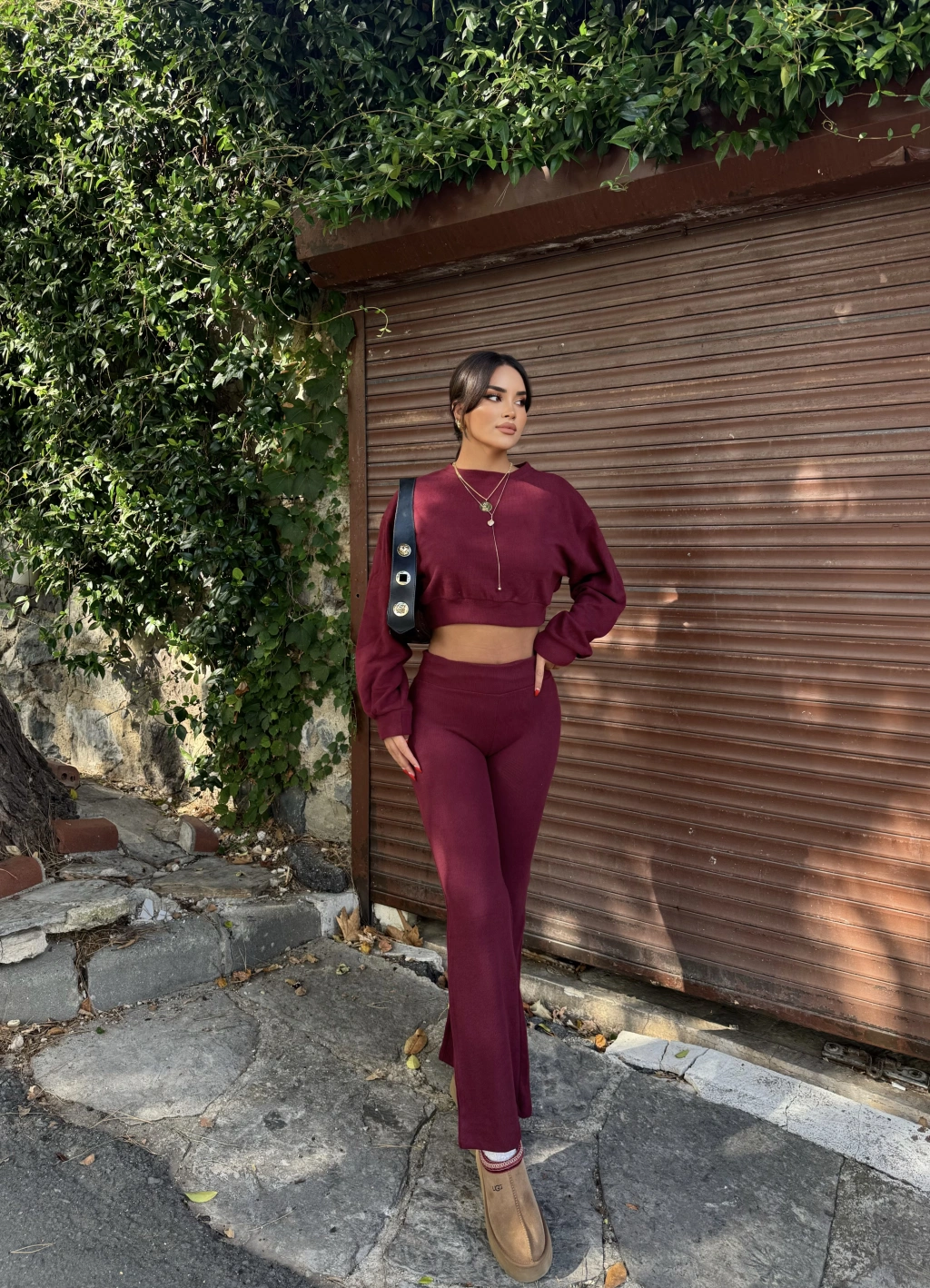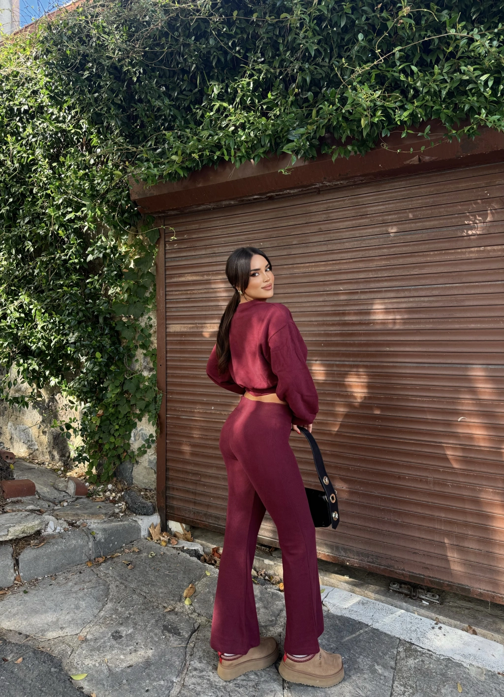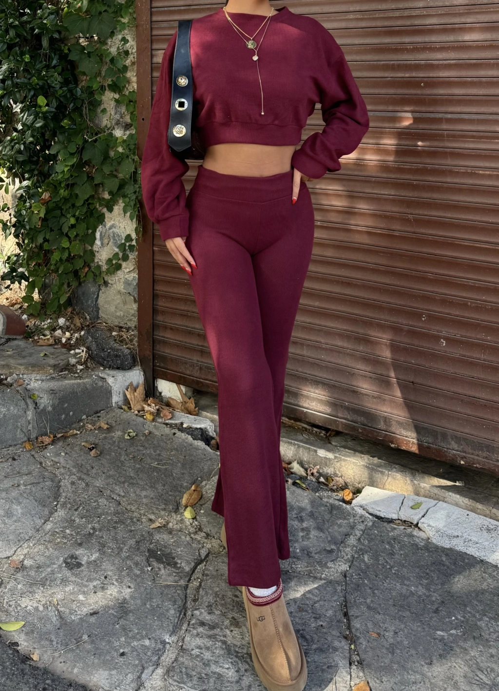 Bordo Bisiklet Yaka Yumoş Alt Üst Takım