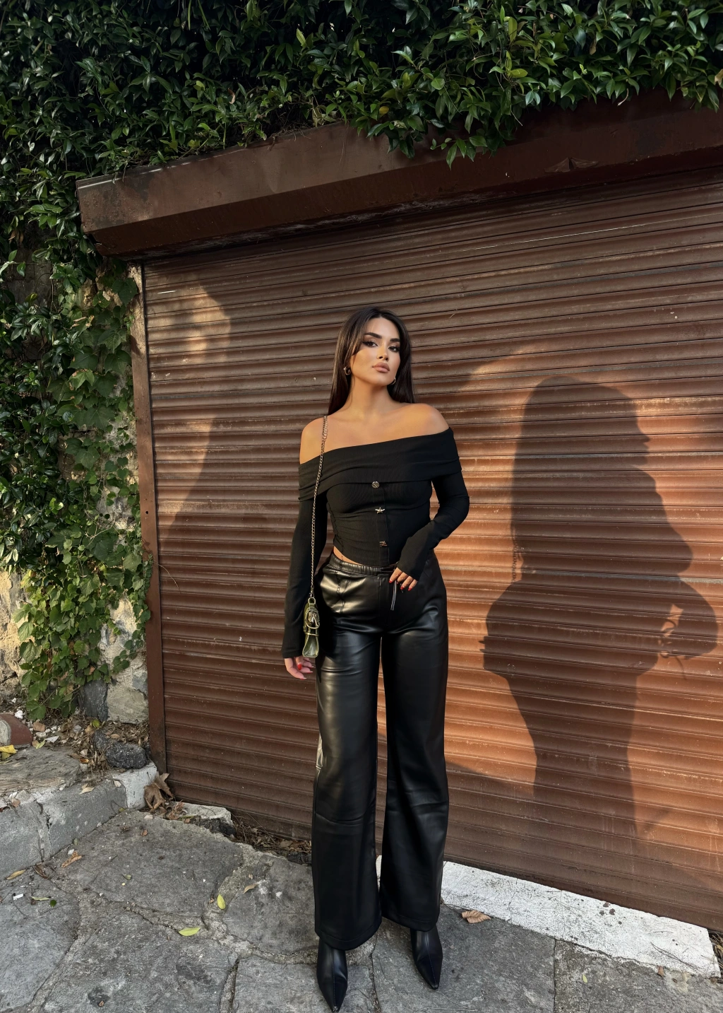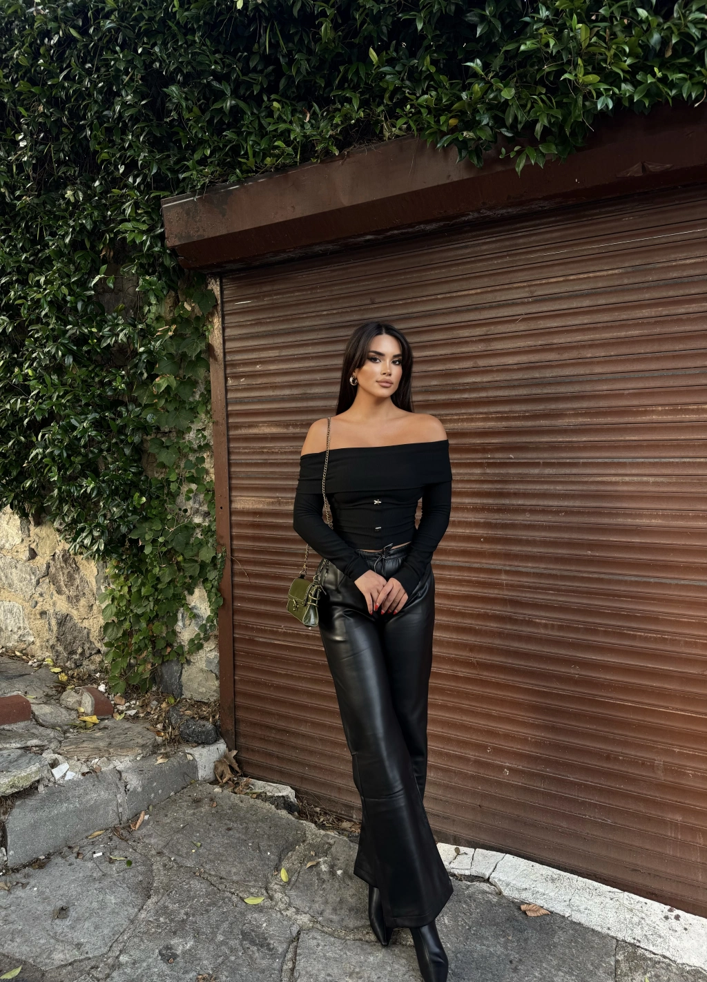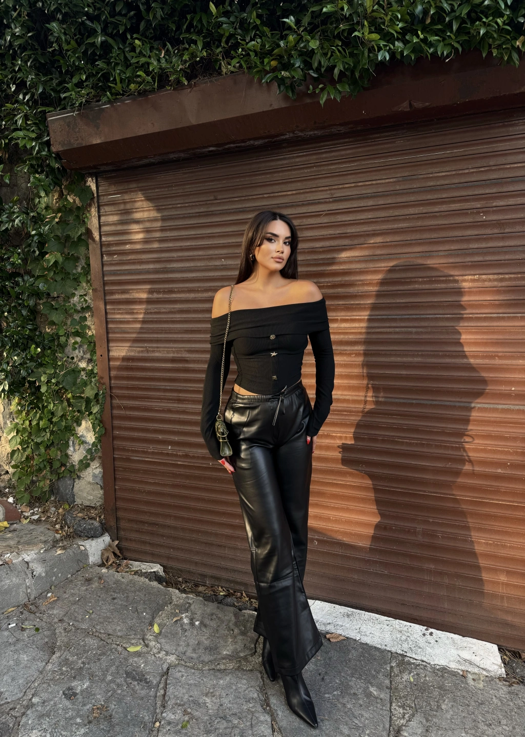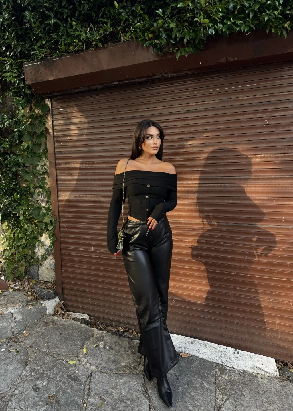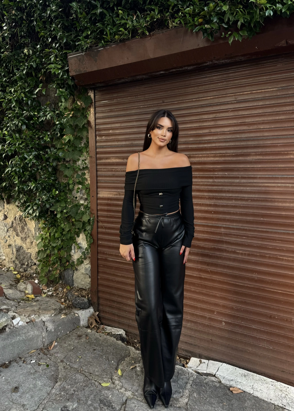 Siyah Şardonlu Deri Pantolon