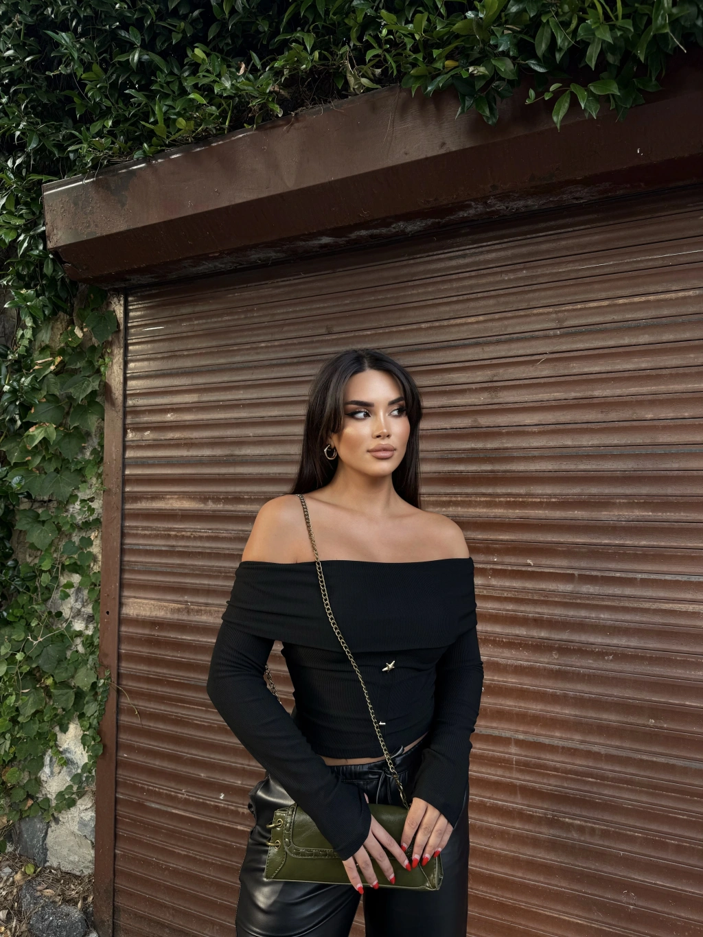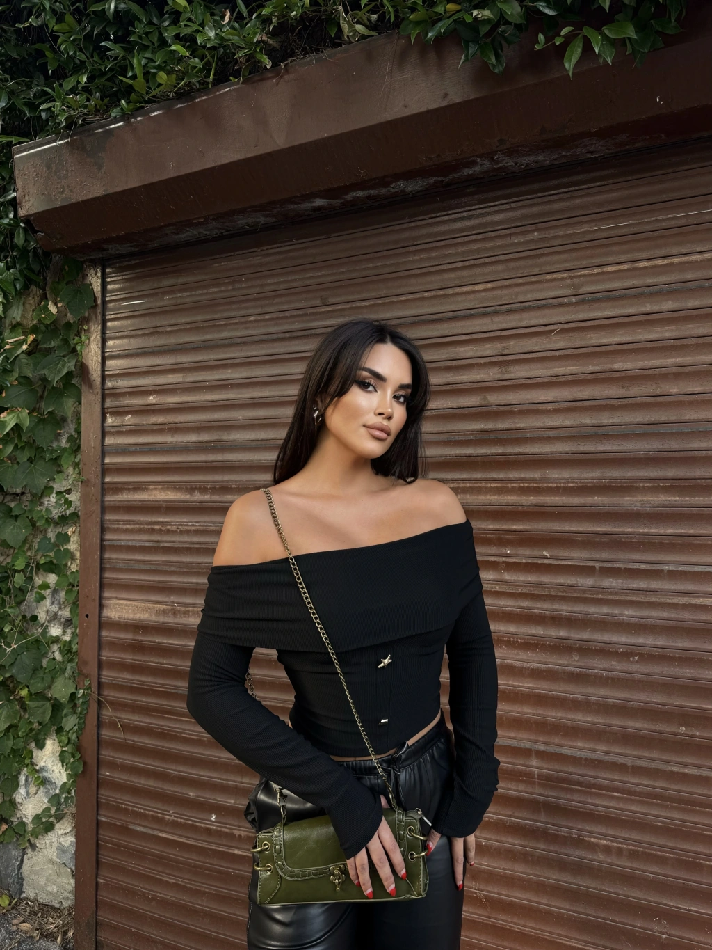 Siyah Aksesuar Detay Madonna Bluz