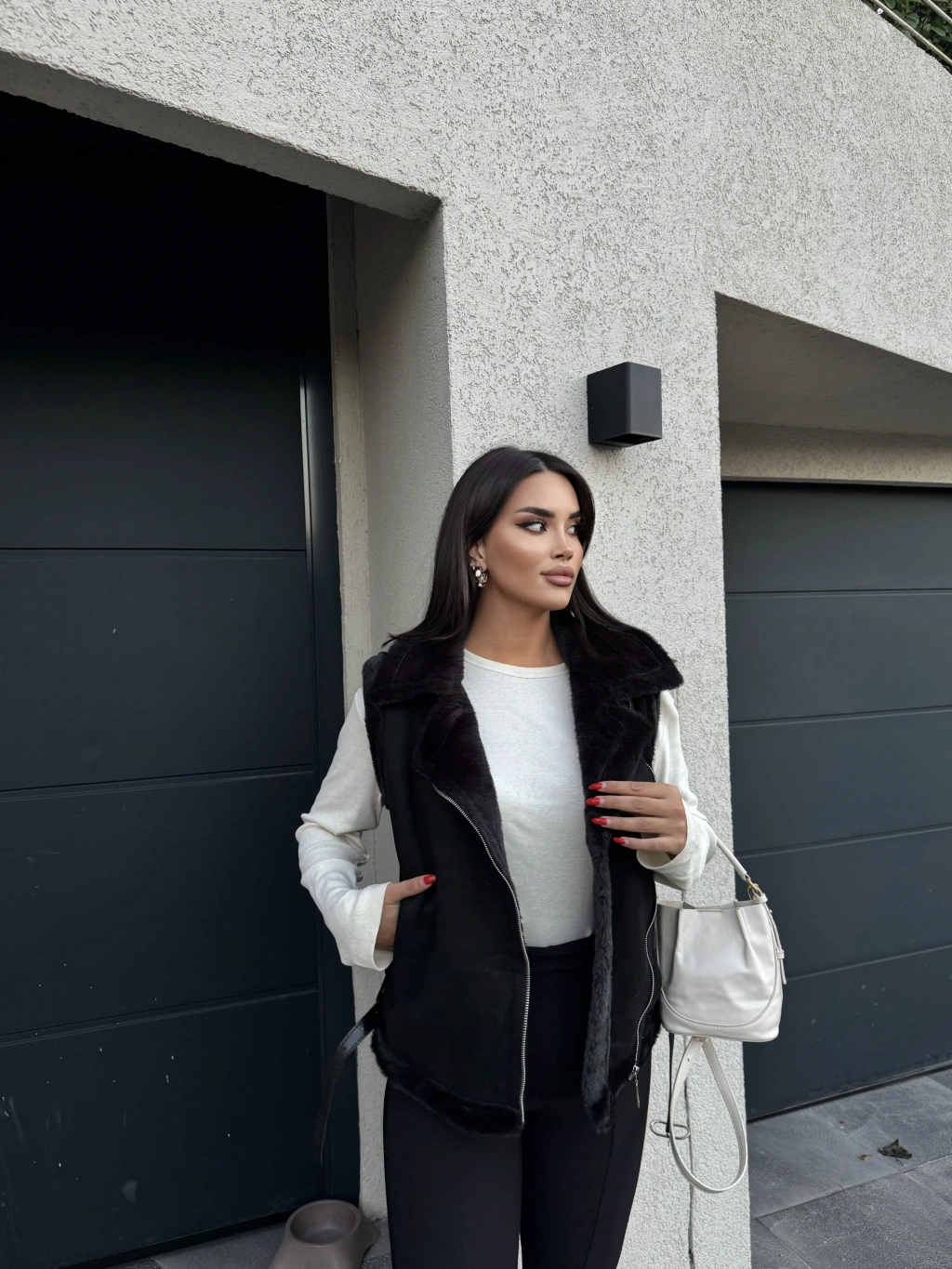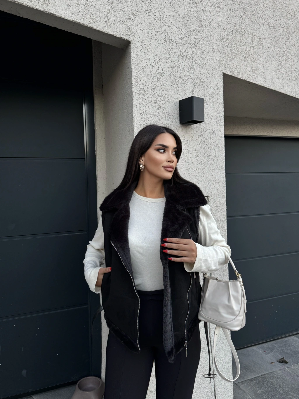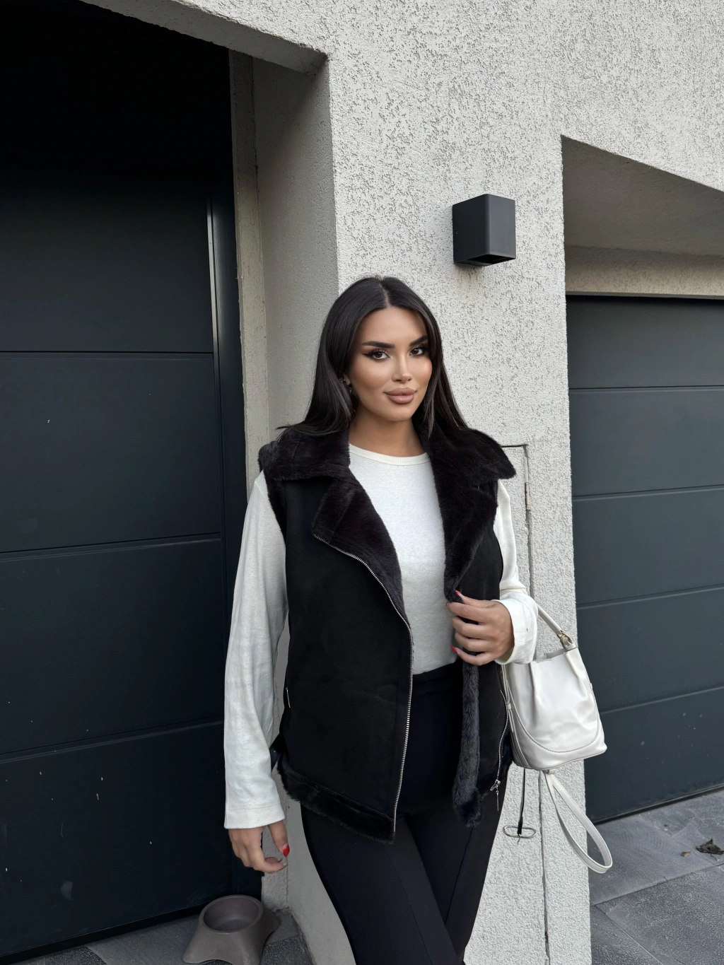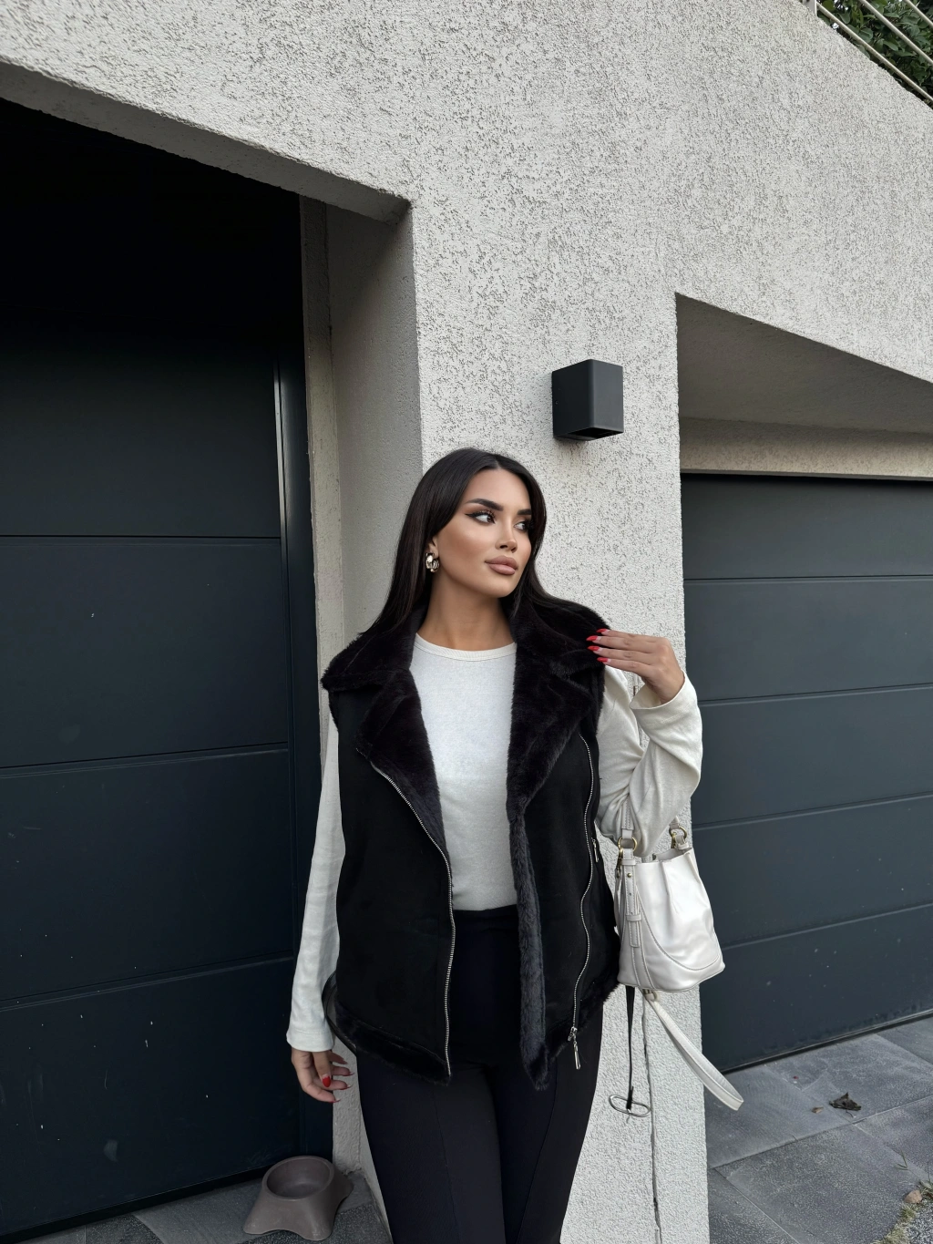 Siyah Peluş Detay Kürk Yelek