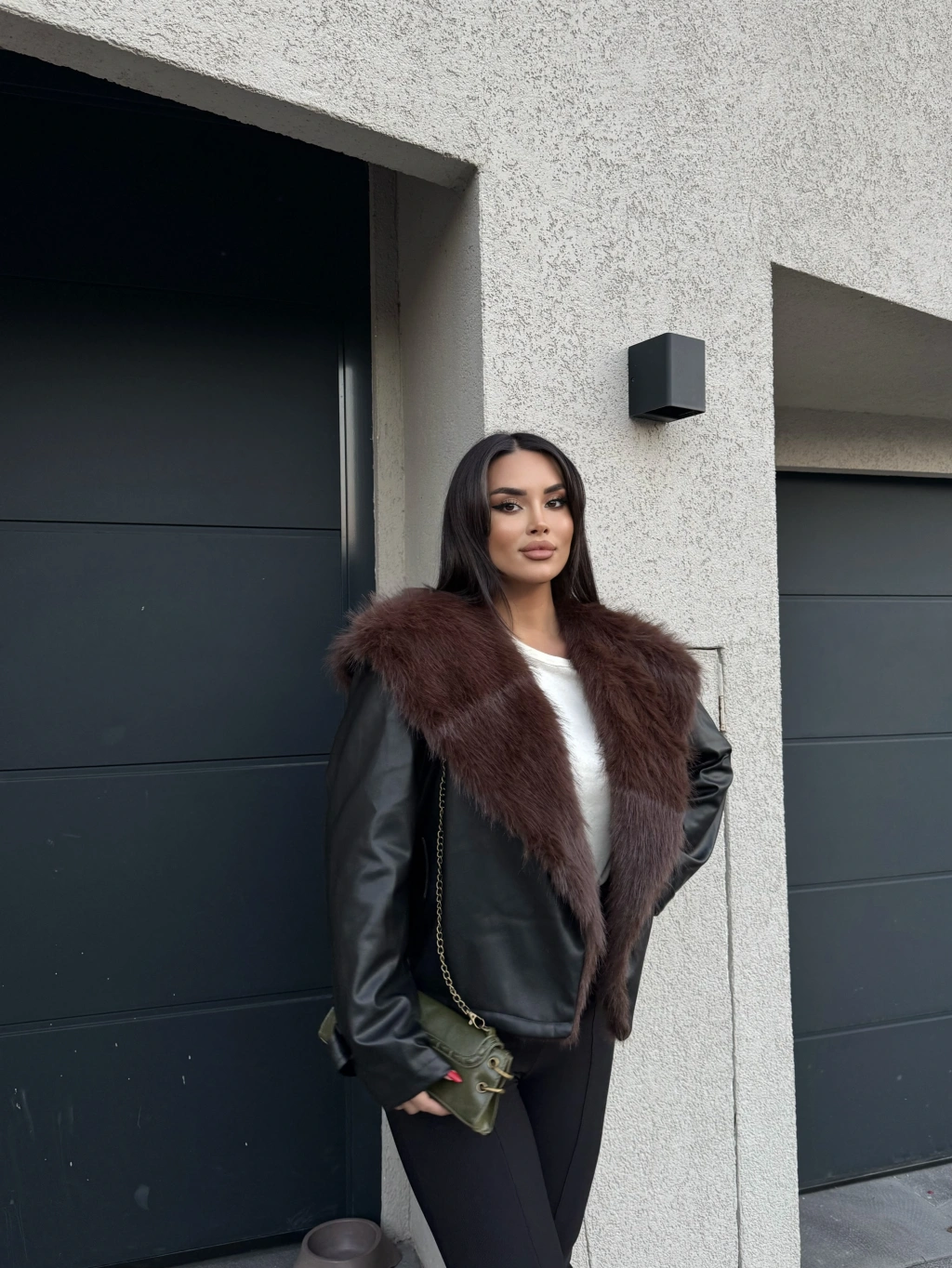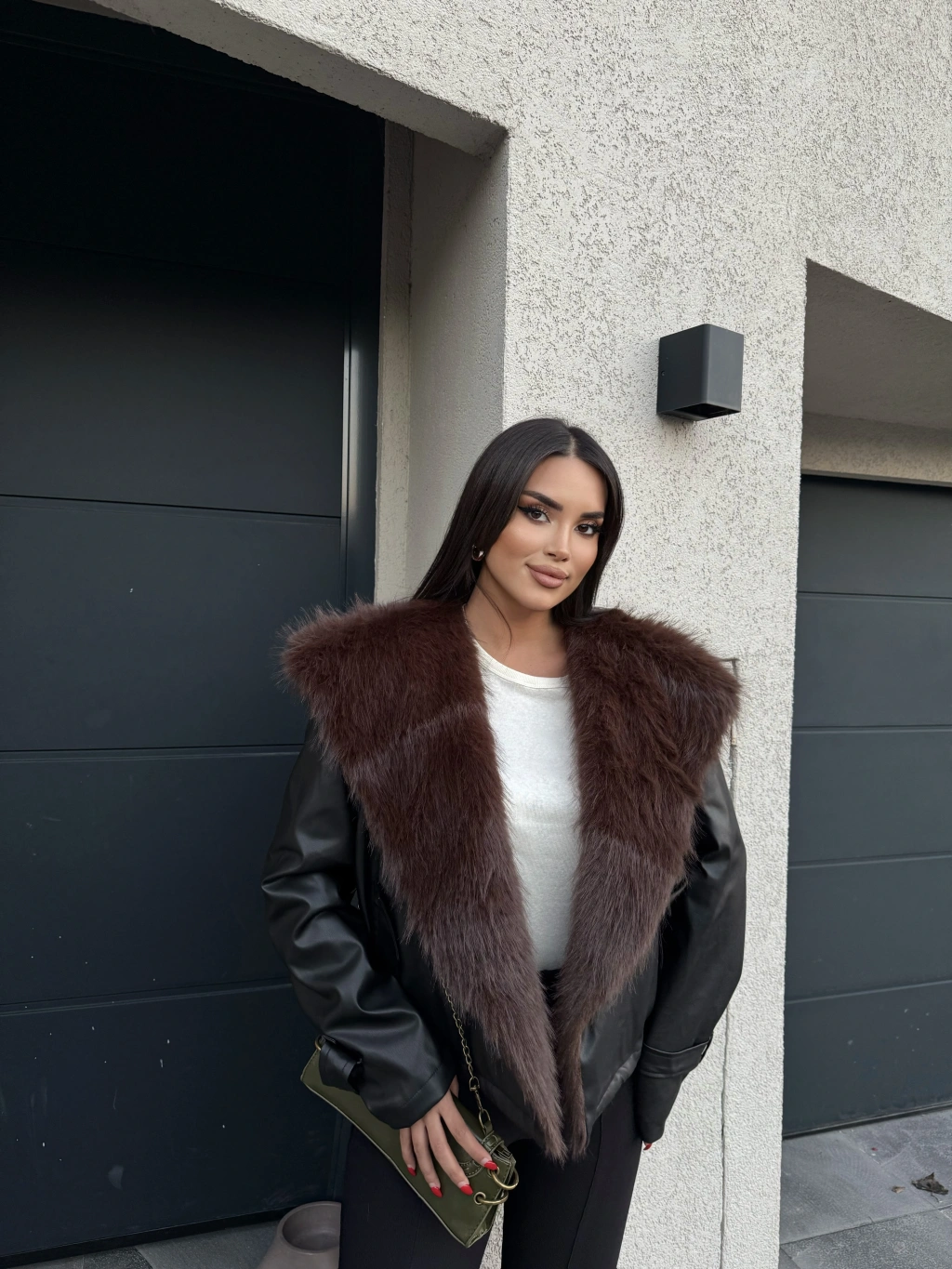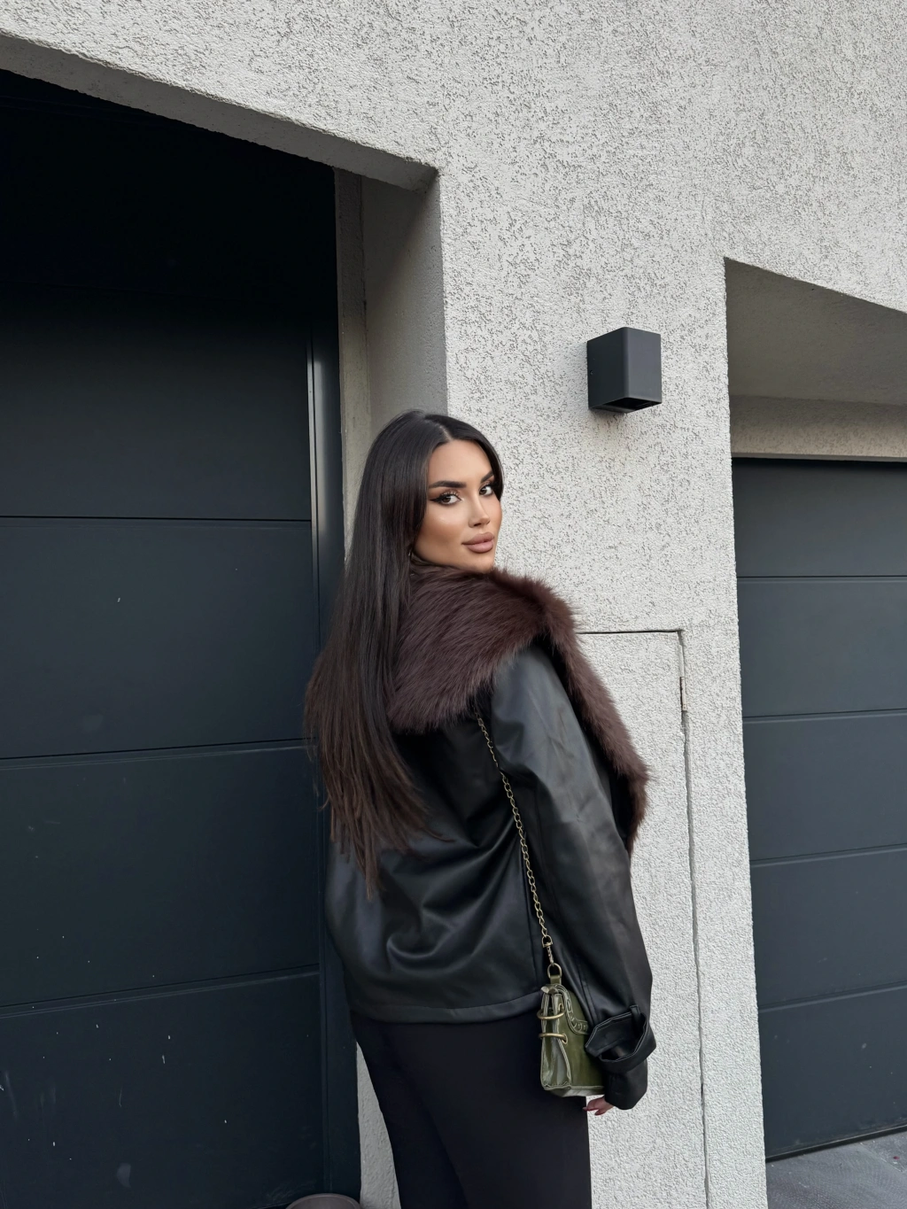 Siyah Kahverengi Kürklü Deri Premium Ceket