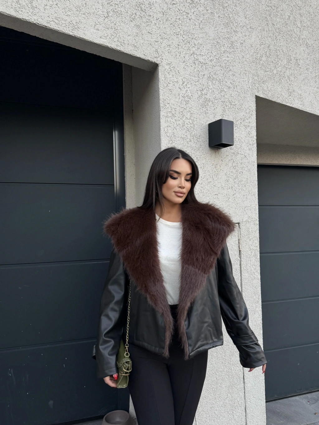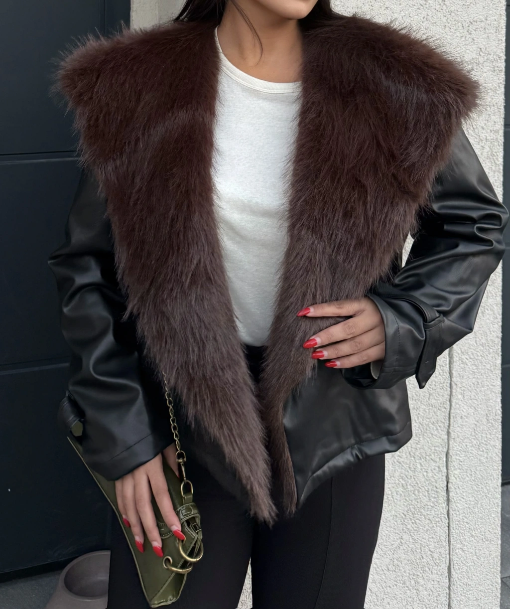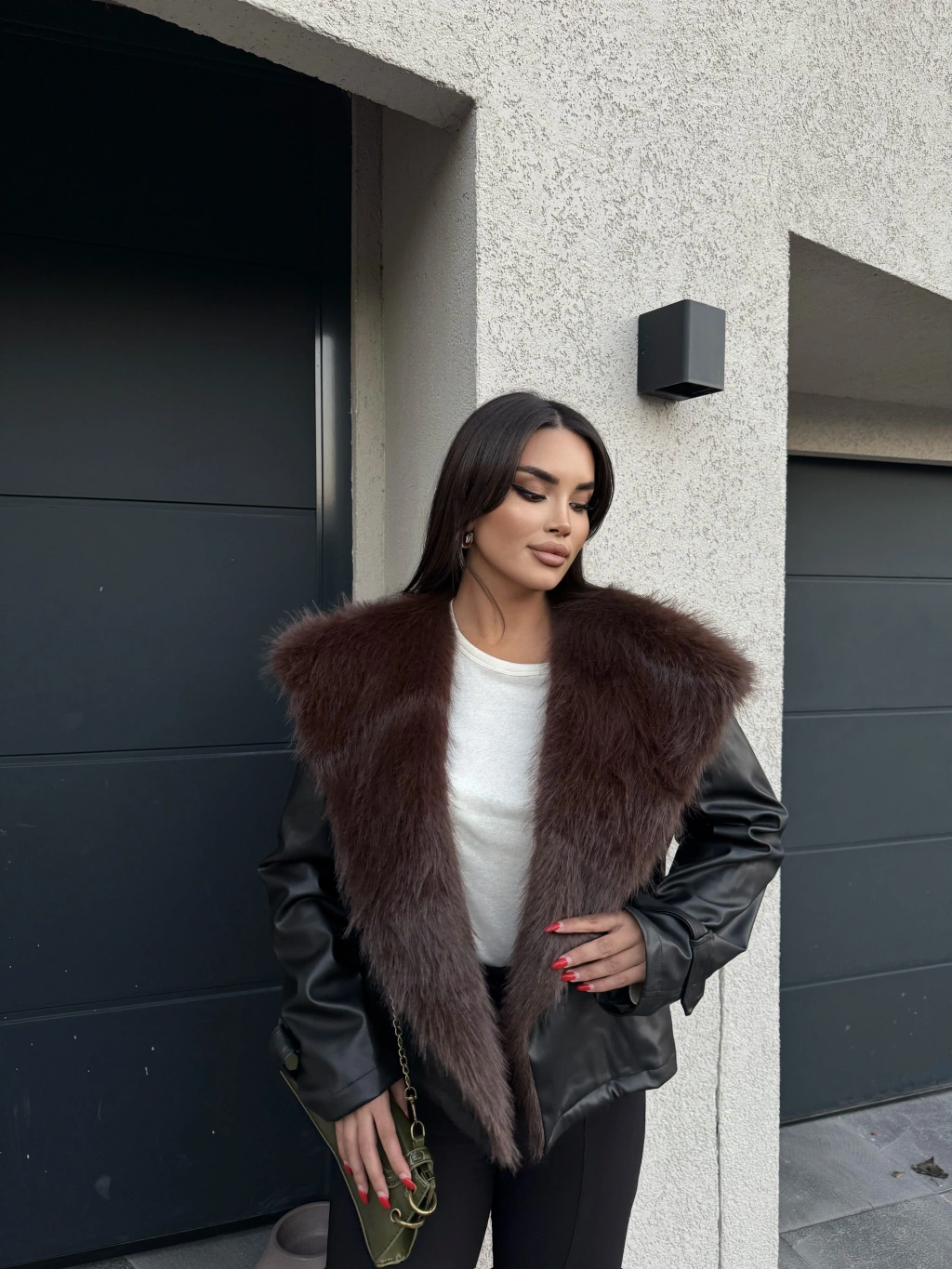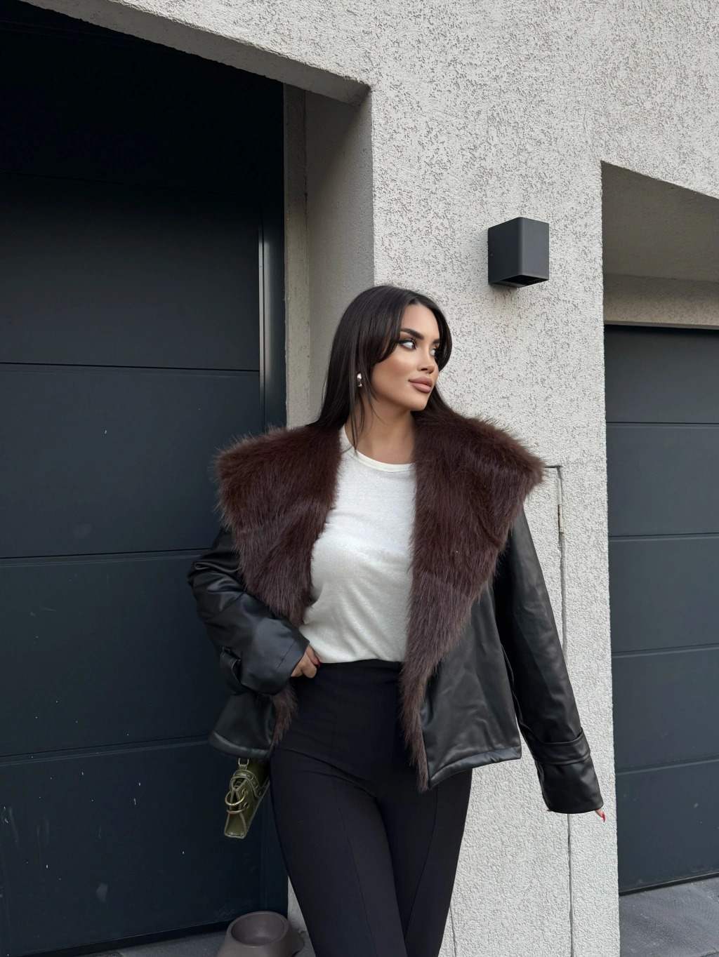Siyah Kahverengi Kürklü Deri Premium Ceket