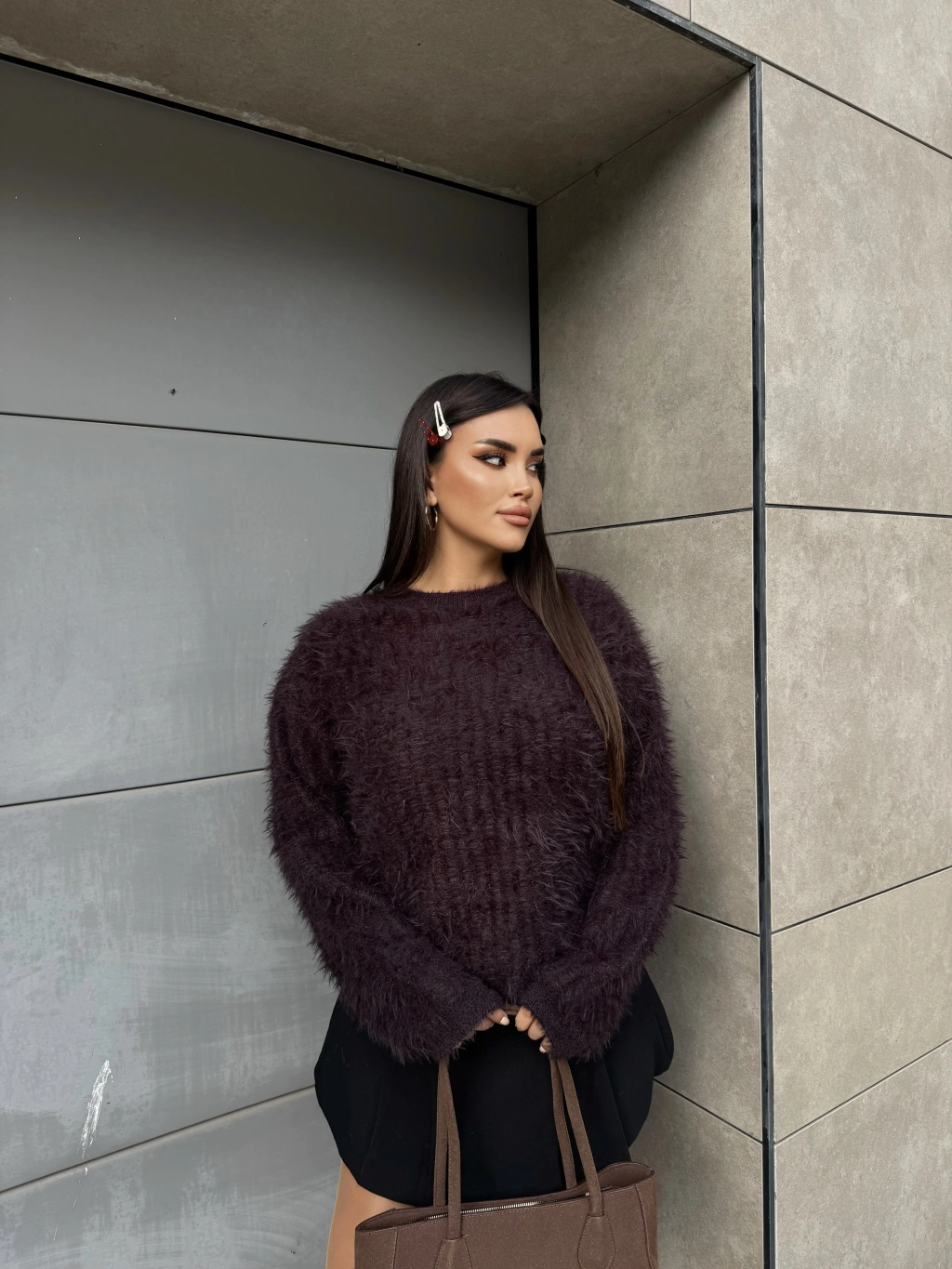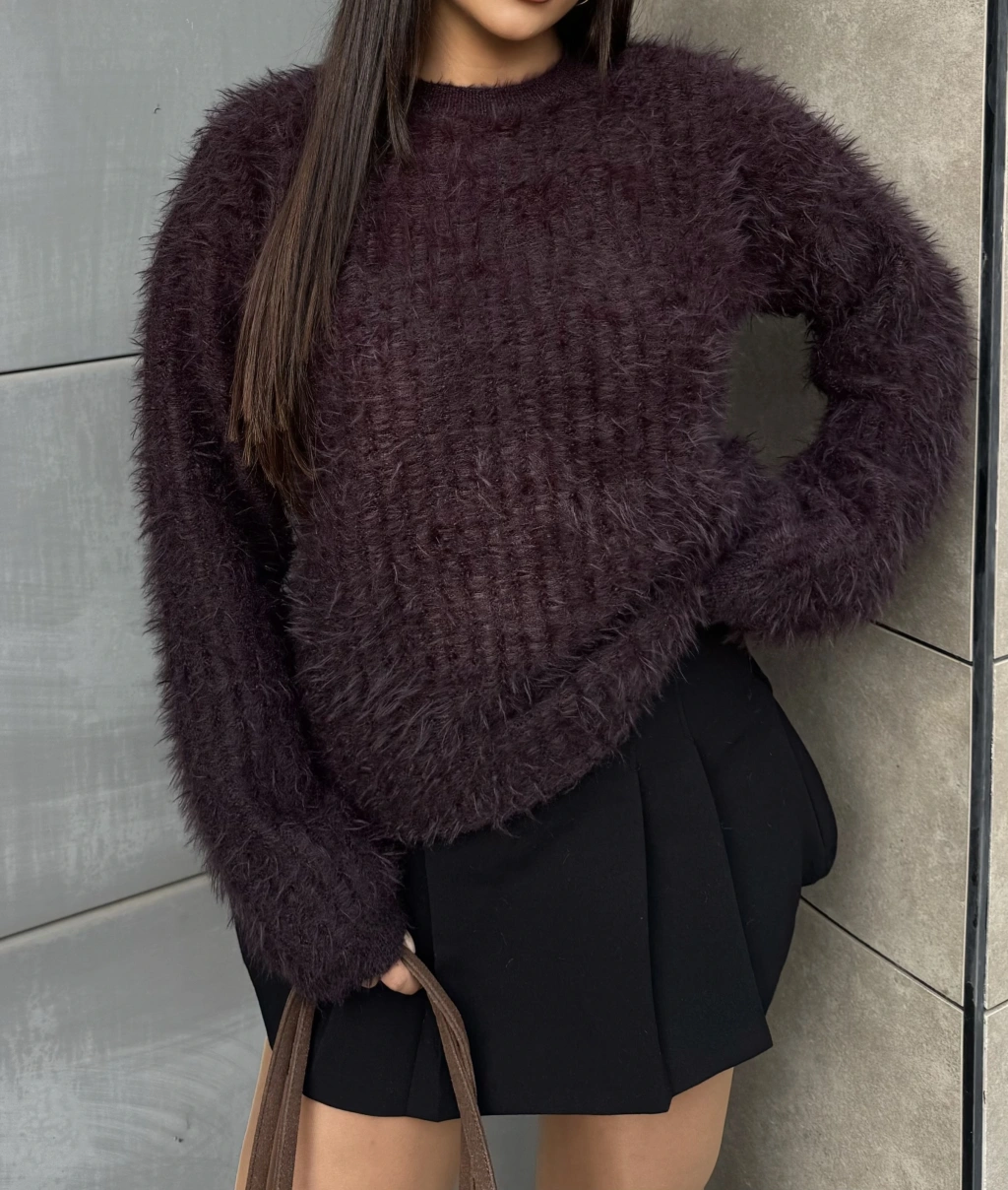 Kahverengi Bisiklet Yaka Yumoş Kazak