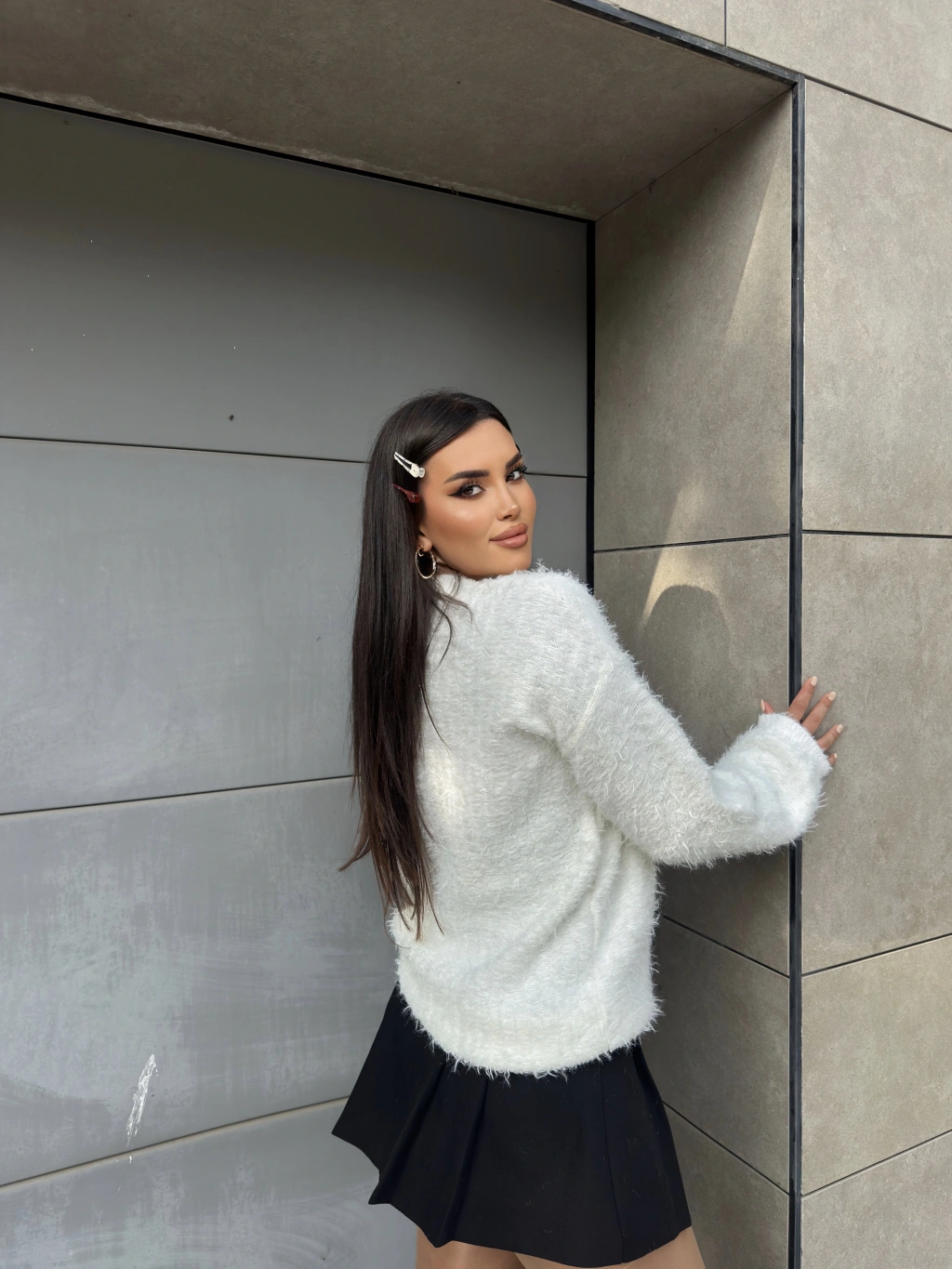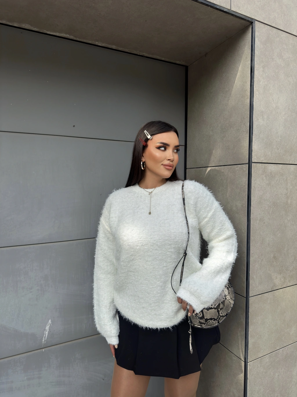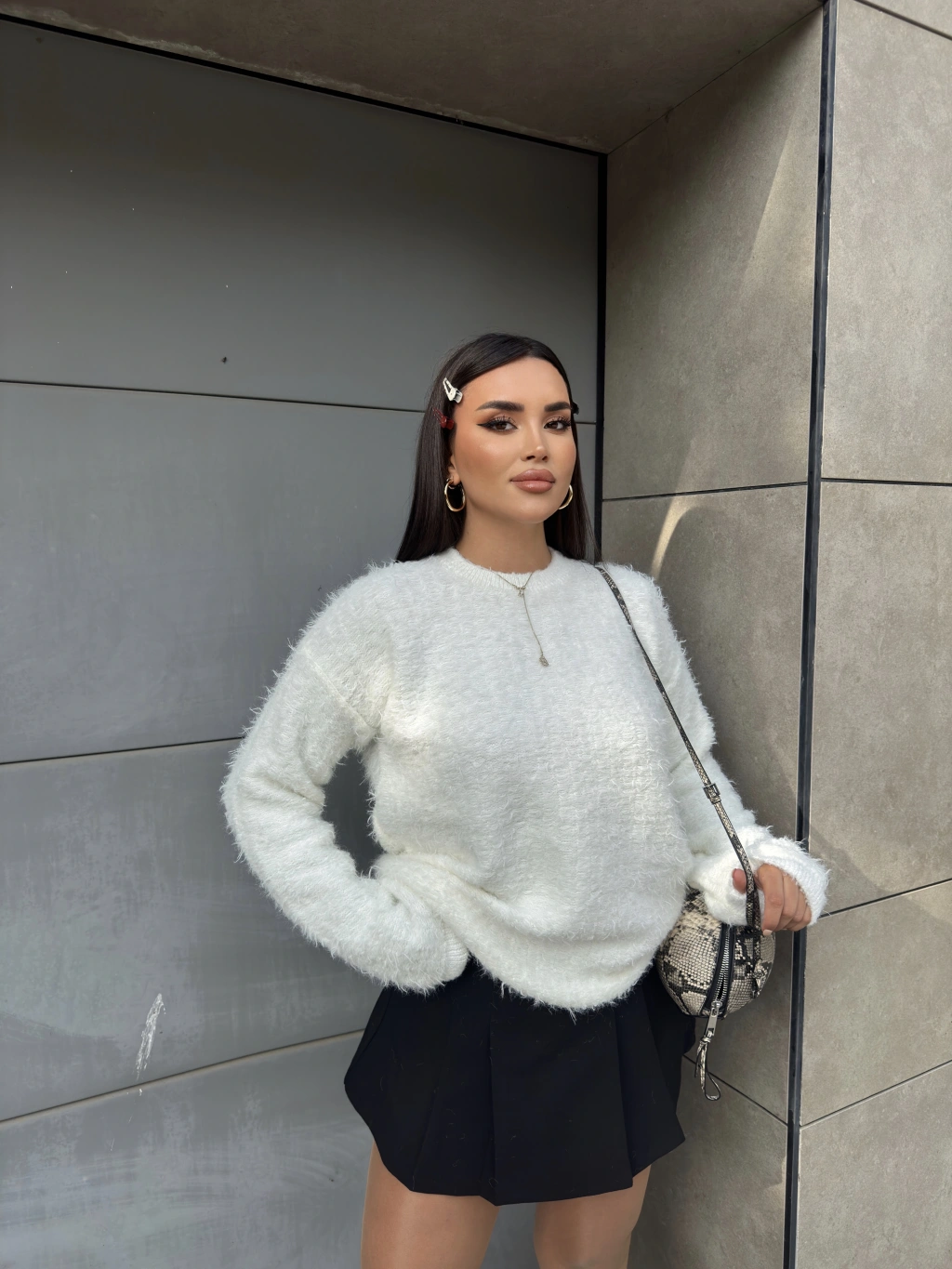 Beyaz Bisiklet Yaka Yumoş Kazak