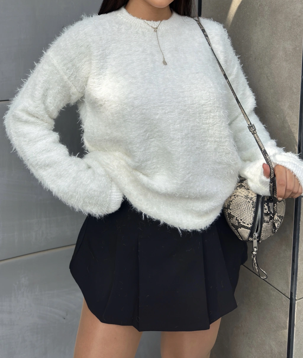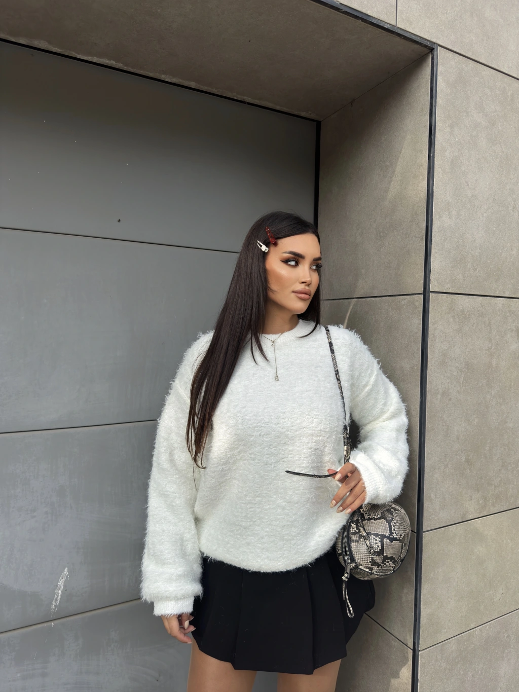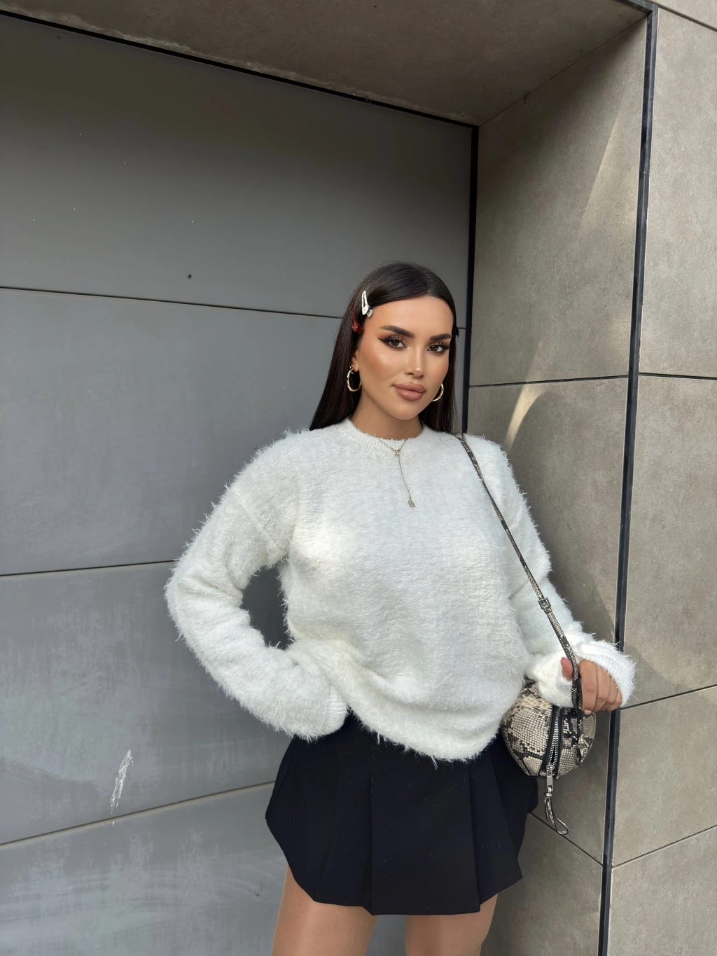 Beyaz Bisiklet Yaka Yumoş Kazak