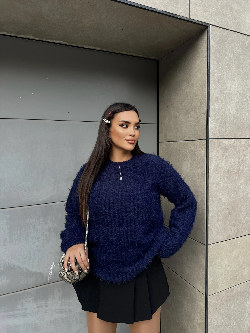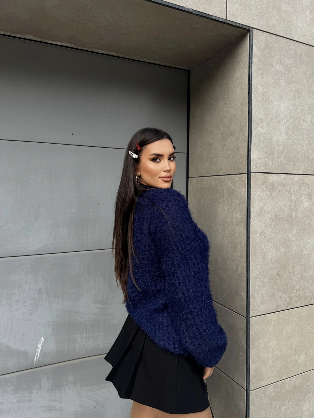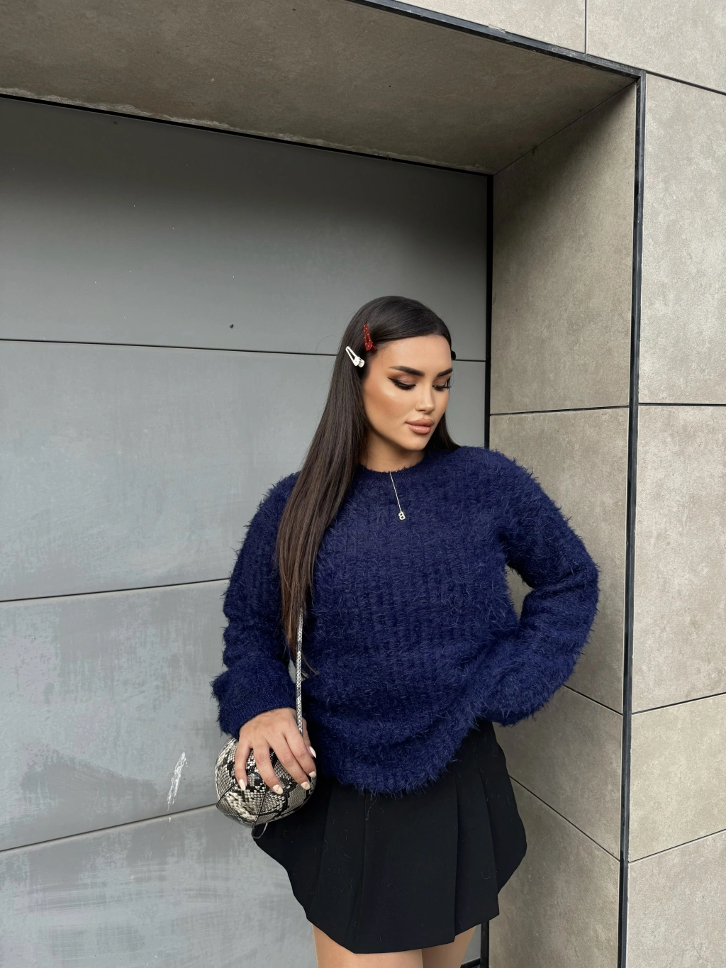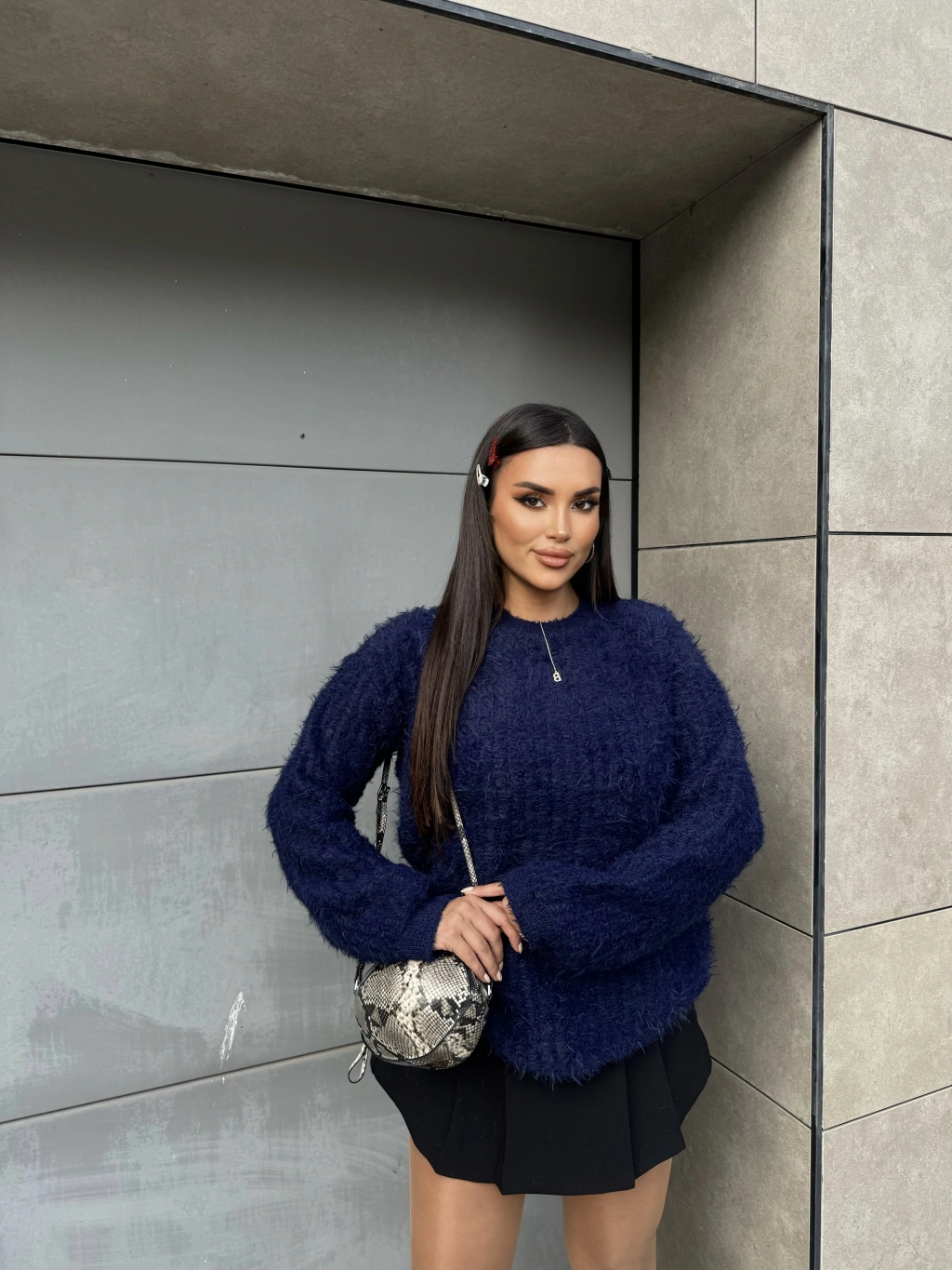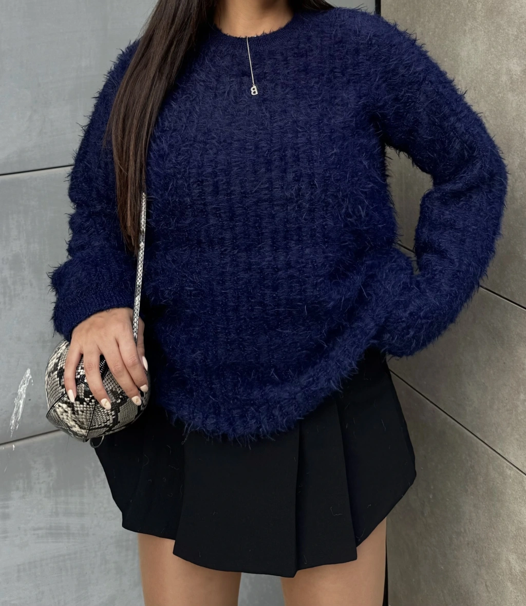 Lacivert Bisiklet Yaka Yumoş Kazak