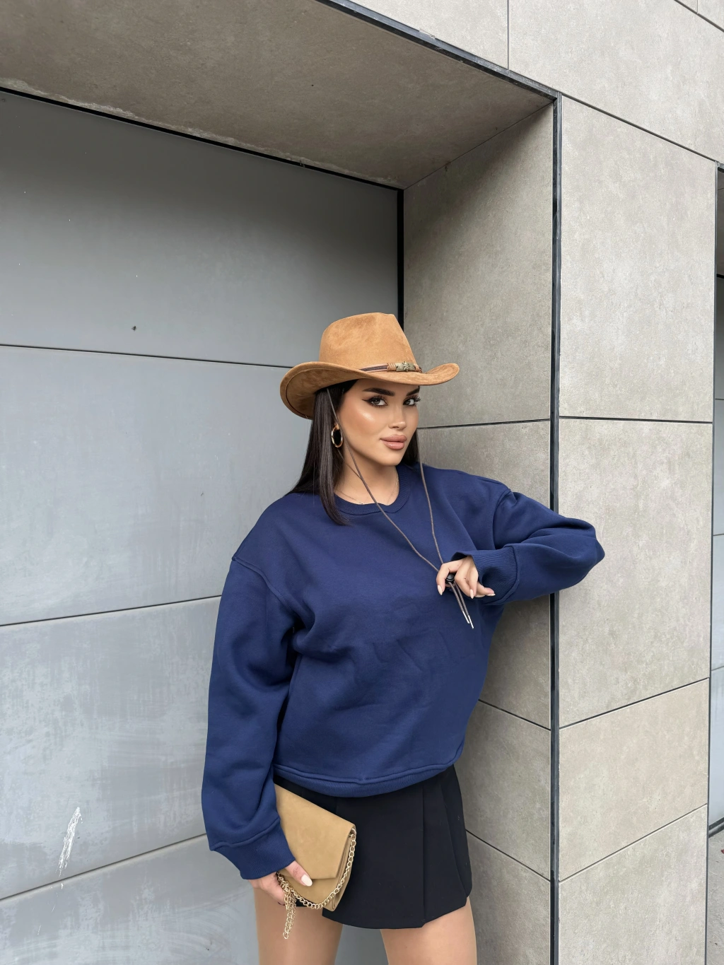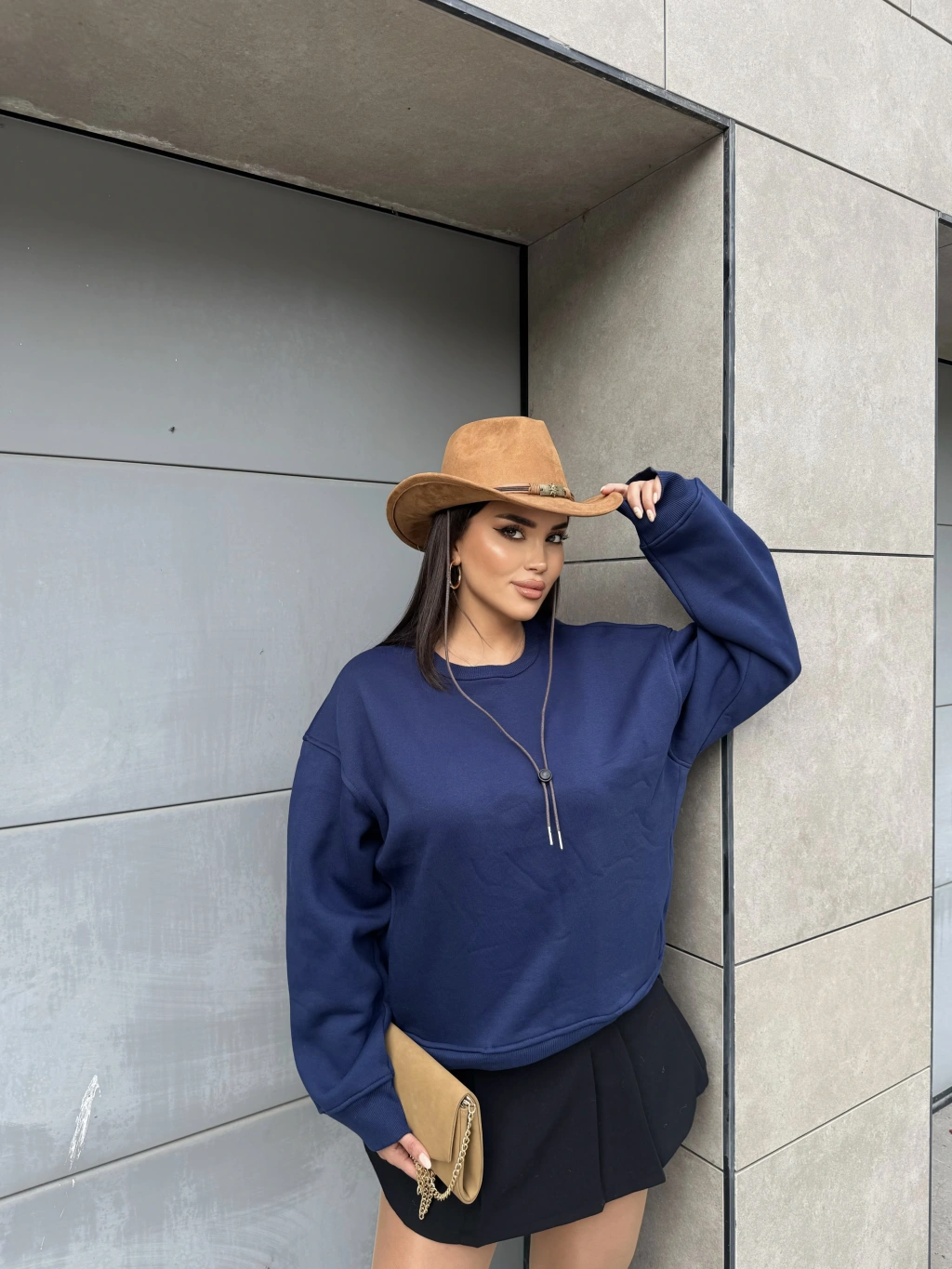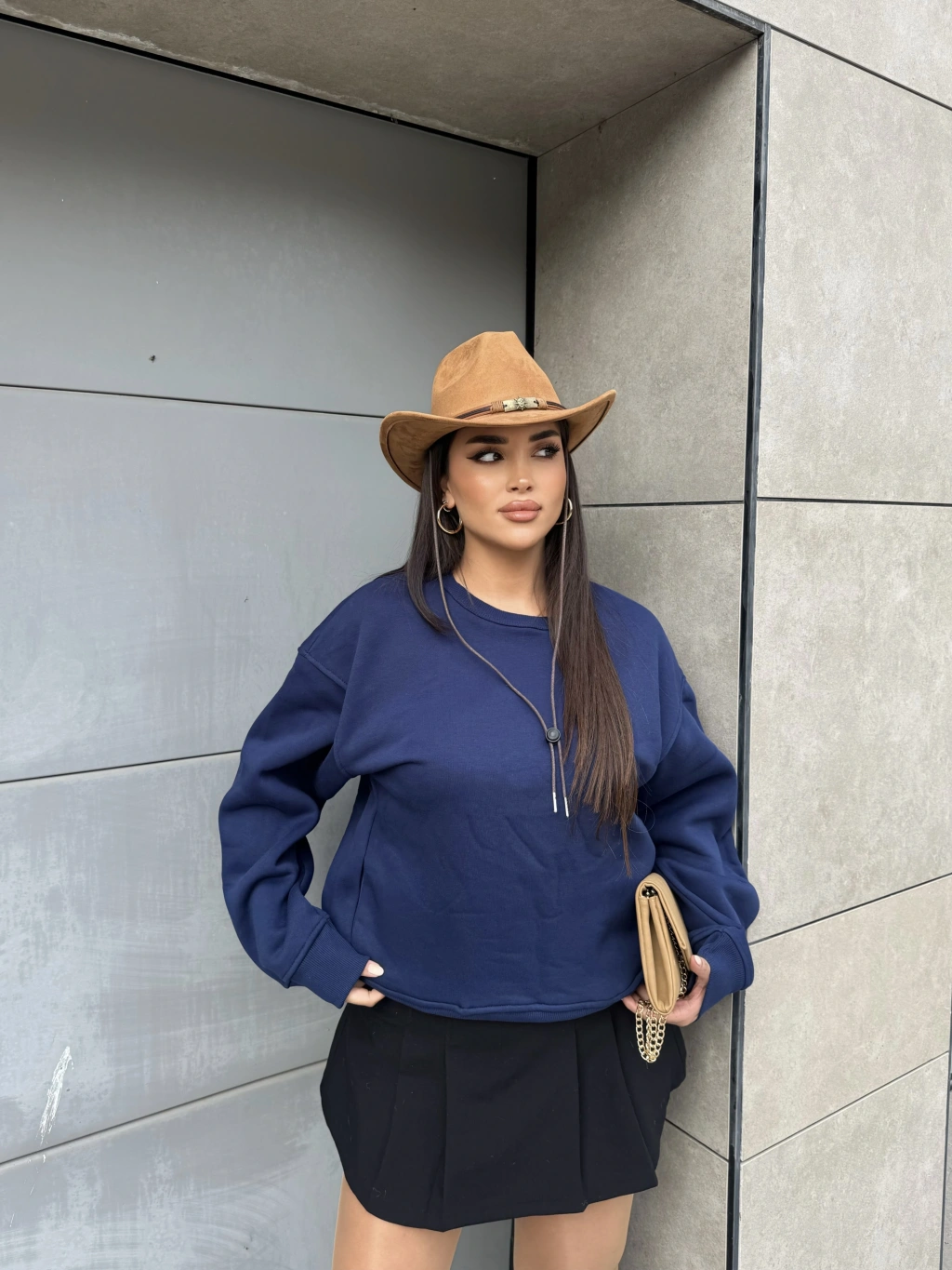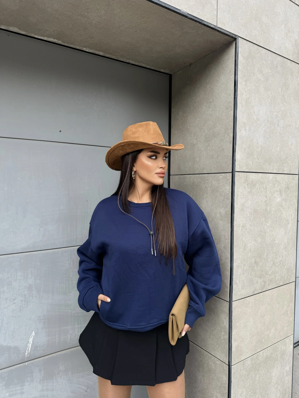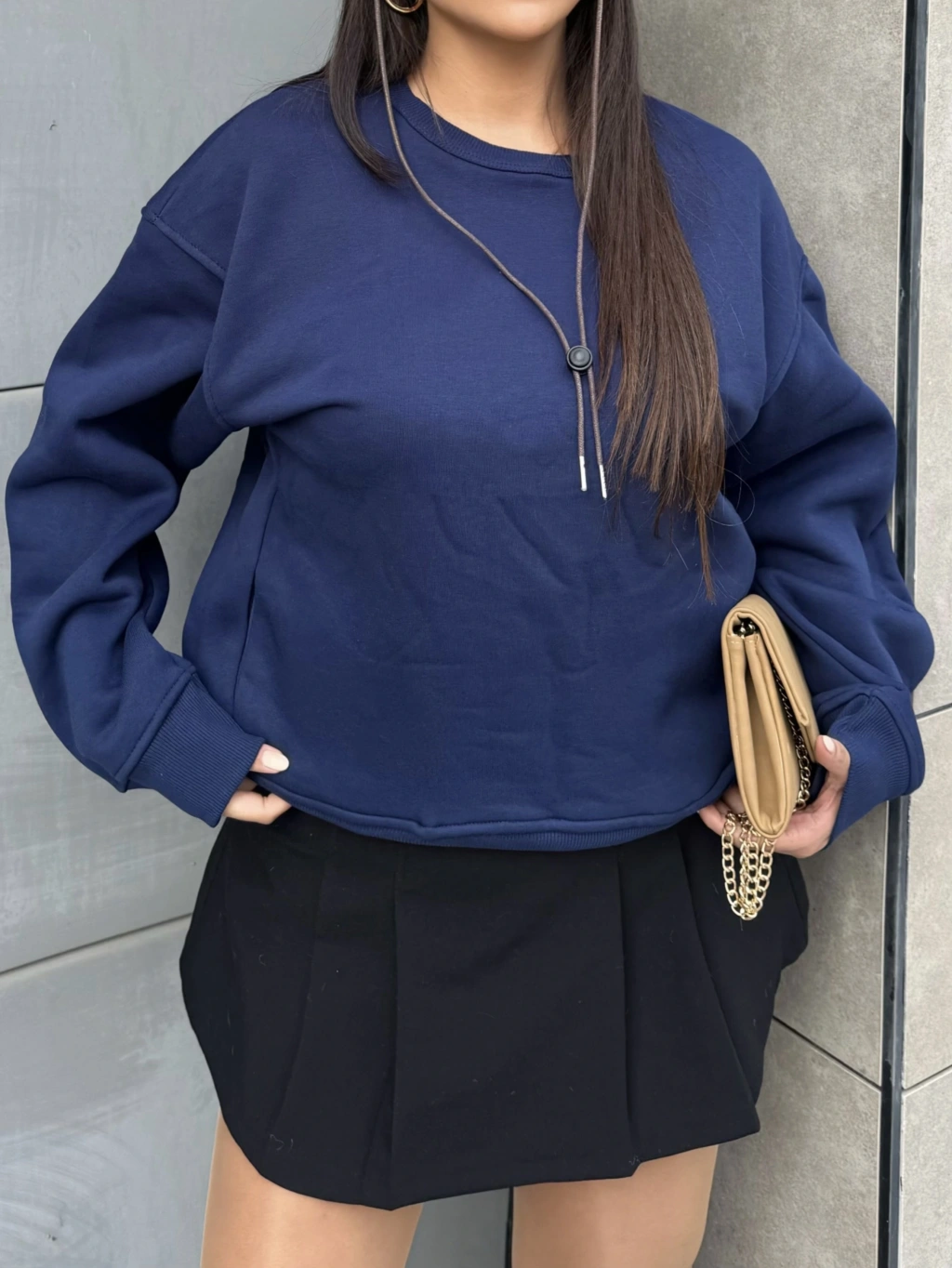 Lacivert Bisiklet Yaka Cepli Sweatshırt