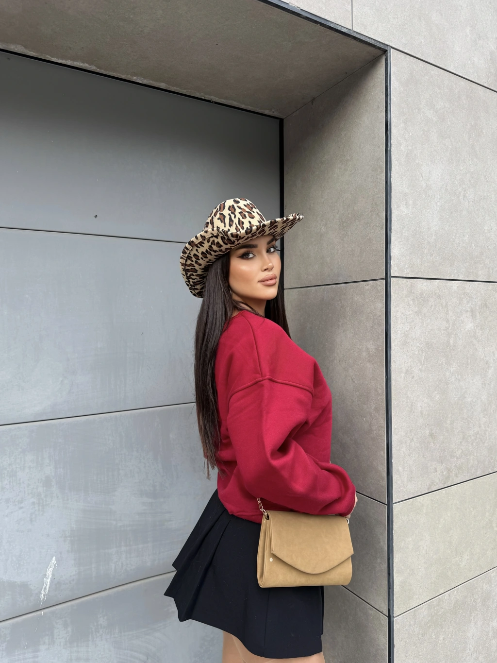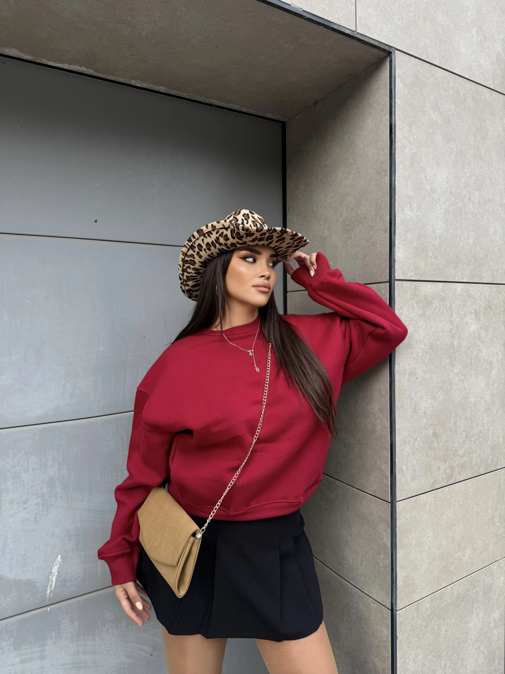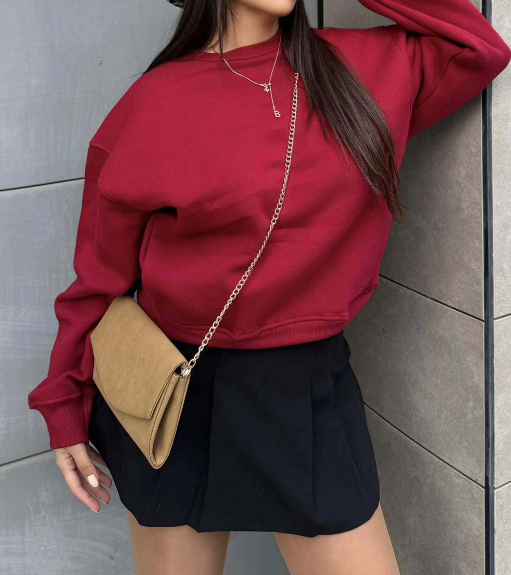 Bordo Bisiklet Yaka Cepli Sweatshırt
