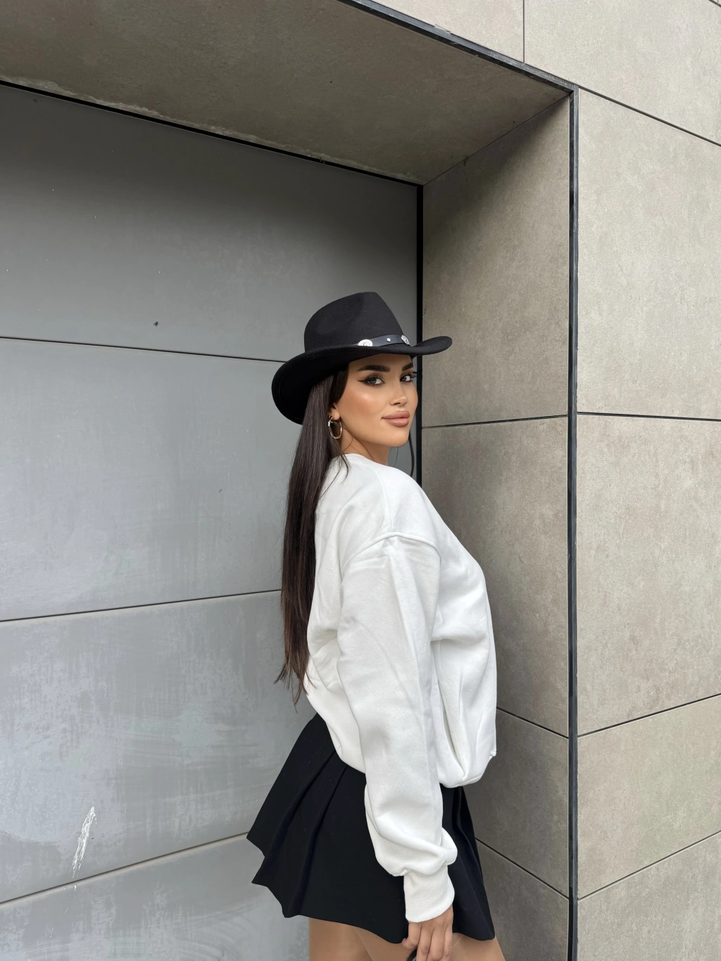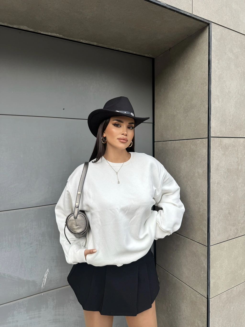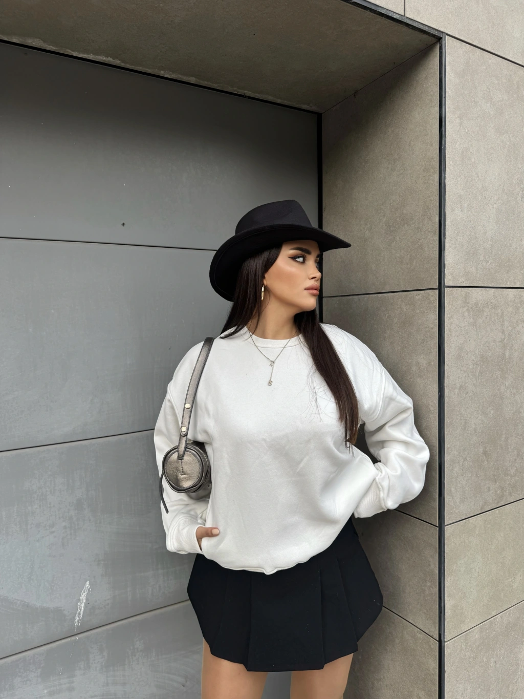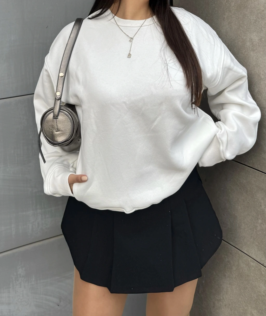 Beyaz Bisiklet Yaka Cepli Sweatshırt