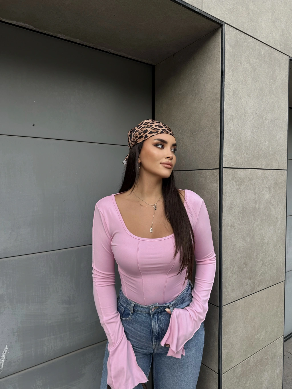 Pembe Sırt Bağlama İspanyol Kol Bluz