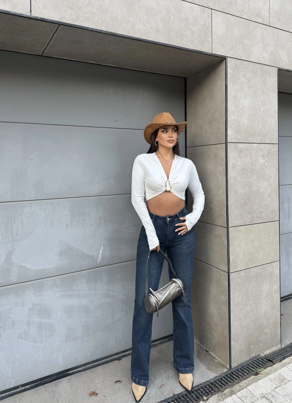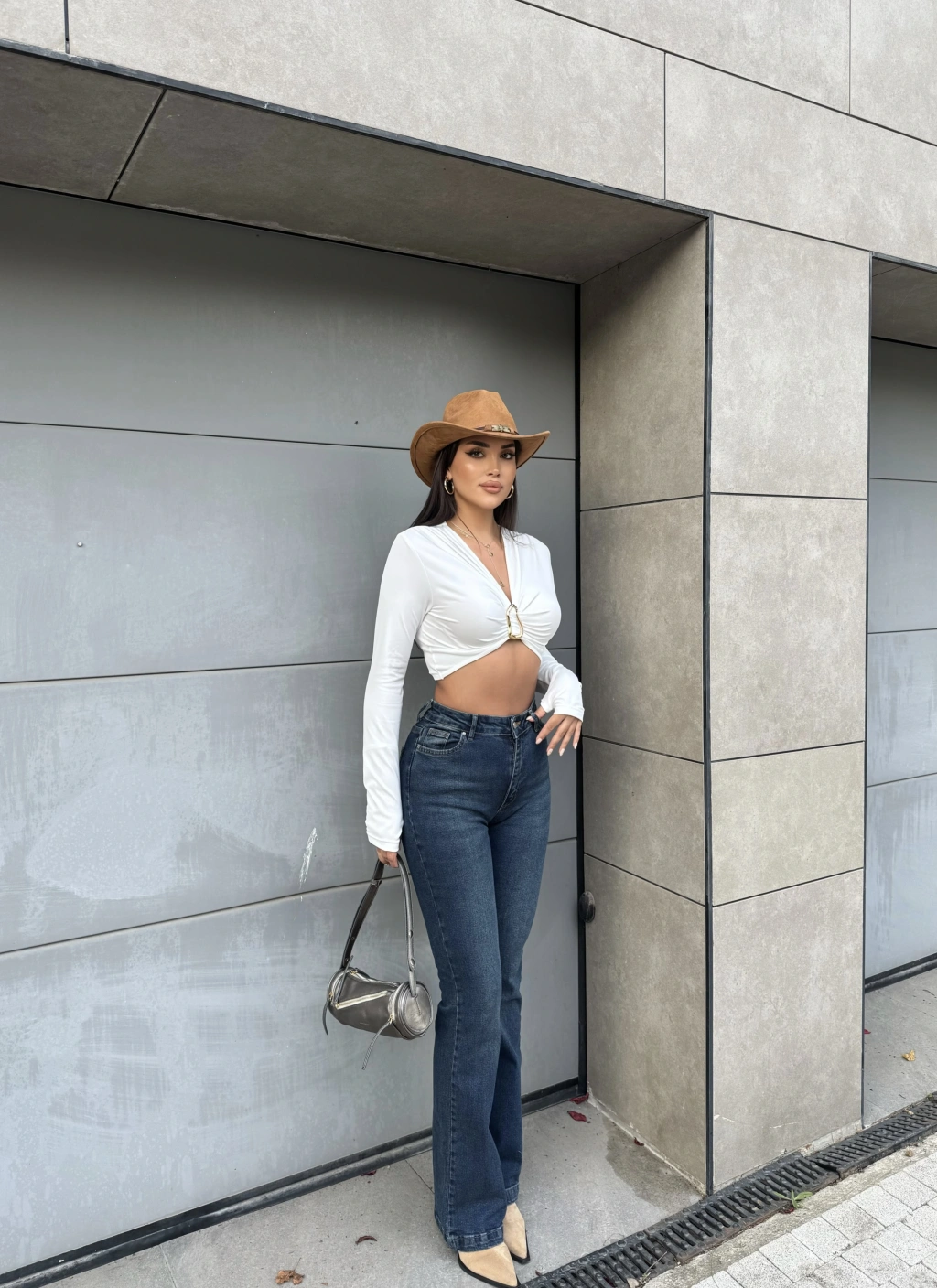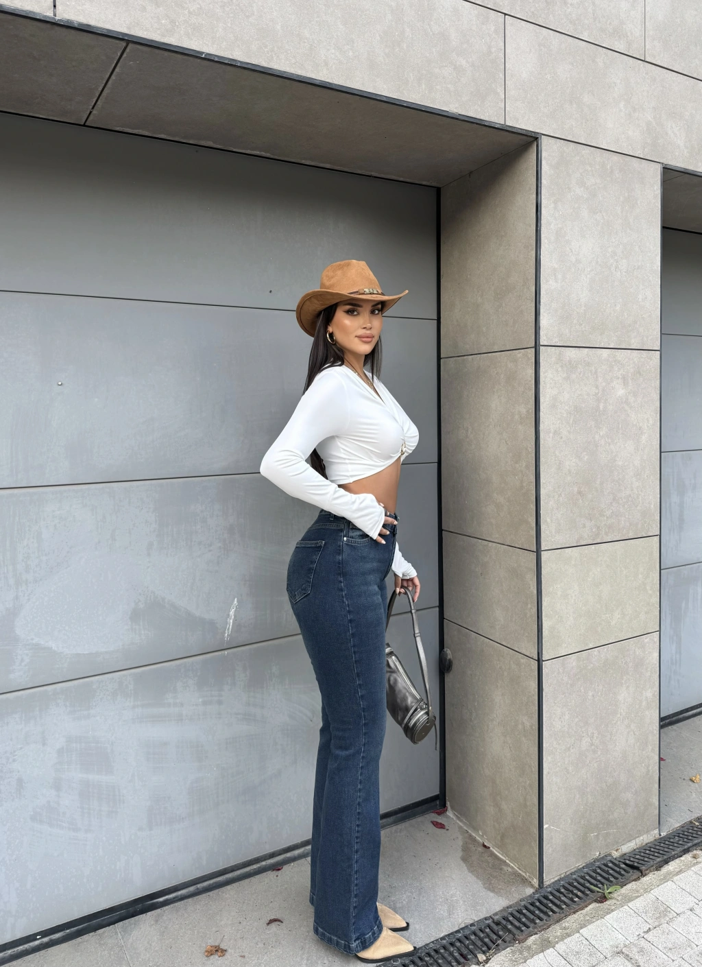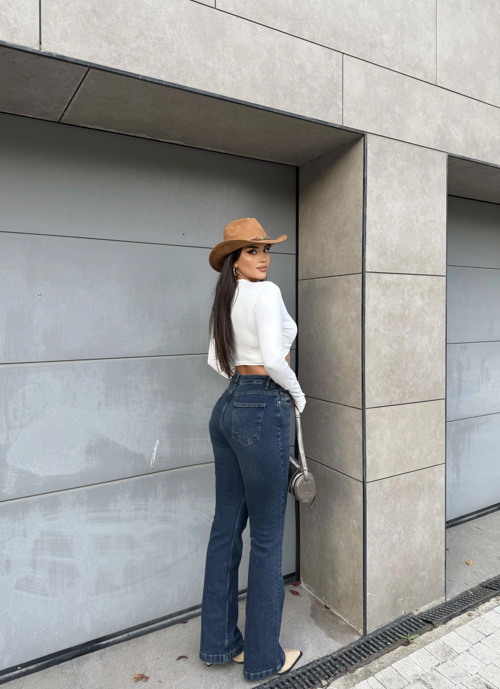 Koyu Mavi İspanyol Paça Yüksek Bel Jean
