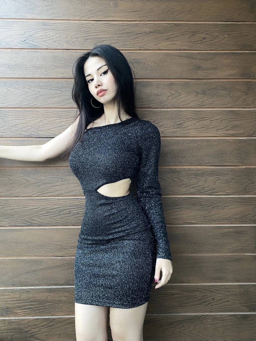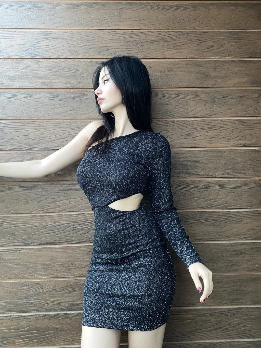 Siyah Tek Kol Simli Elbise