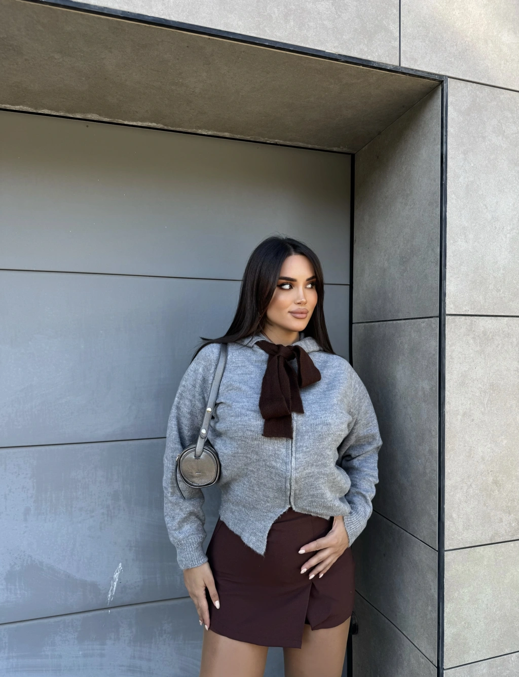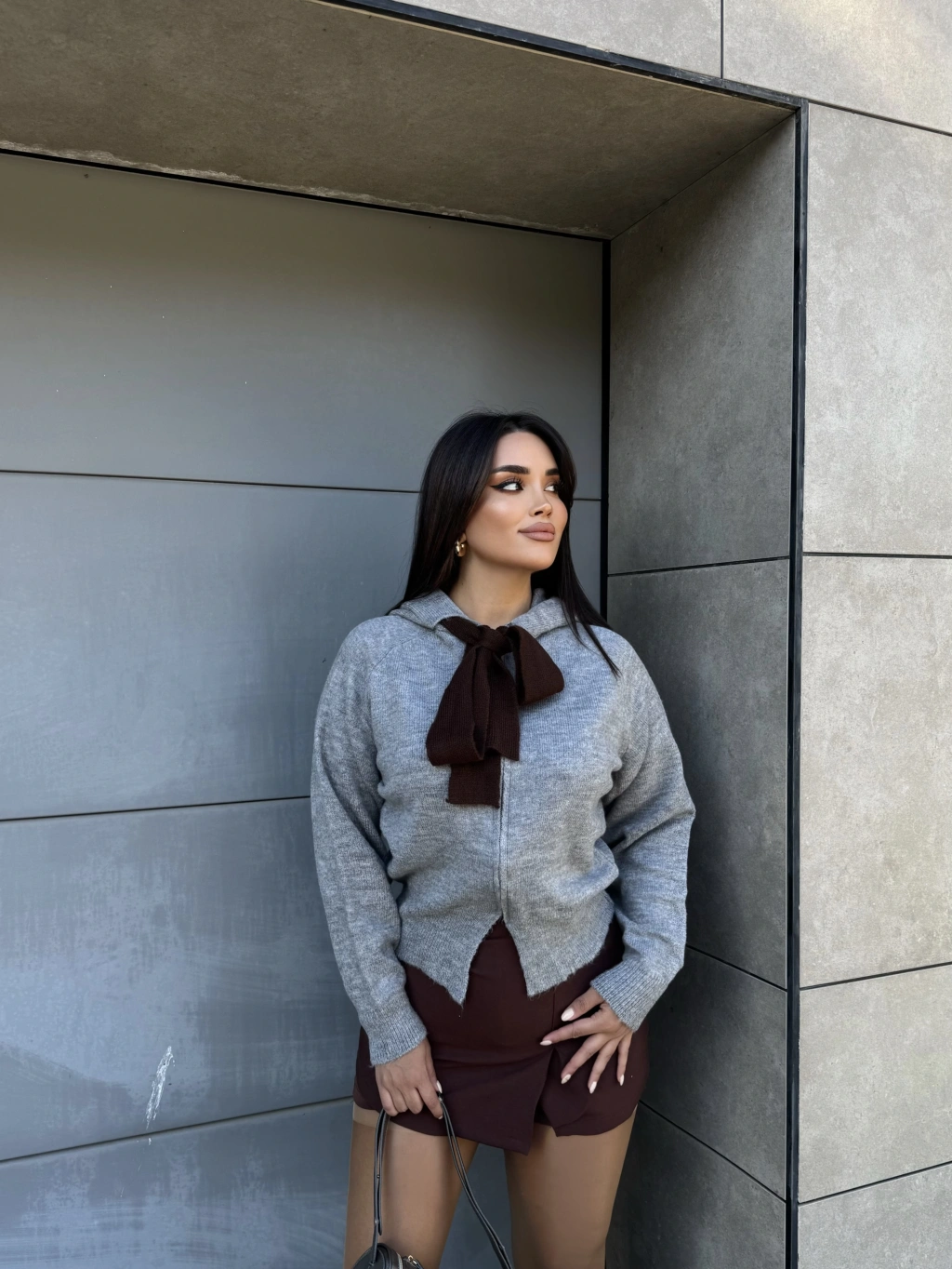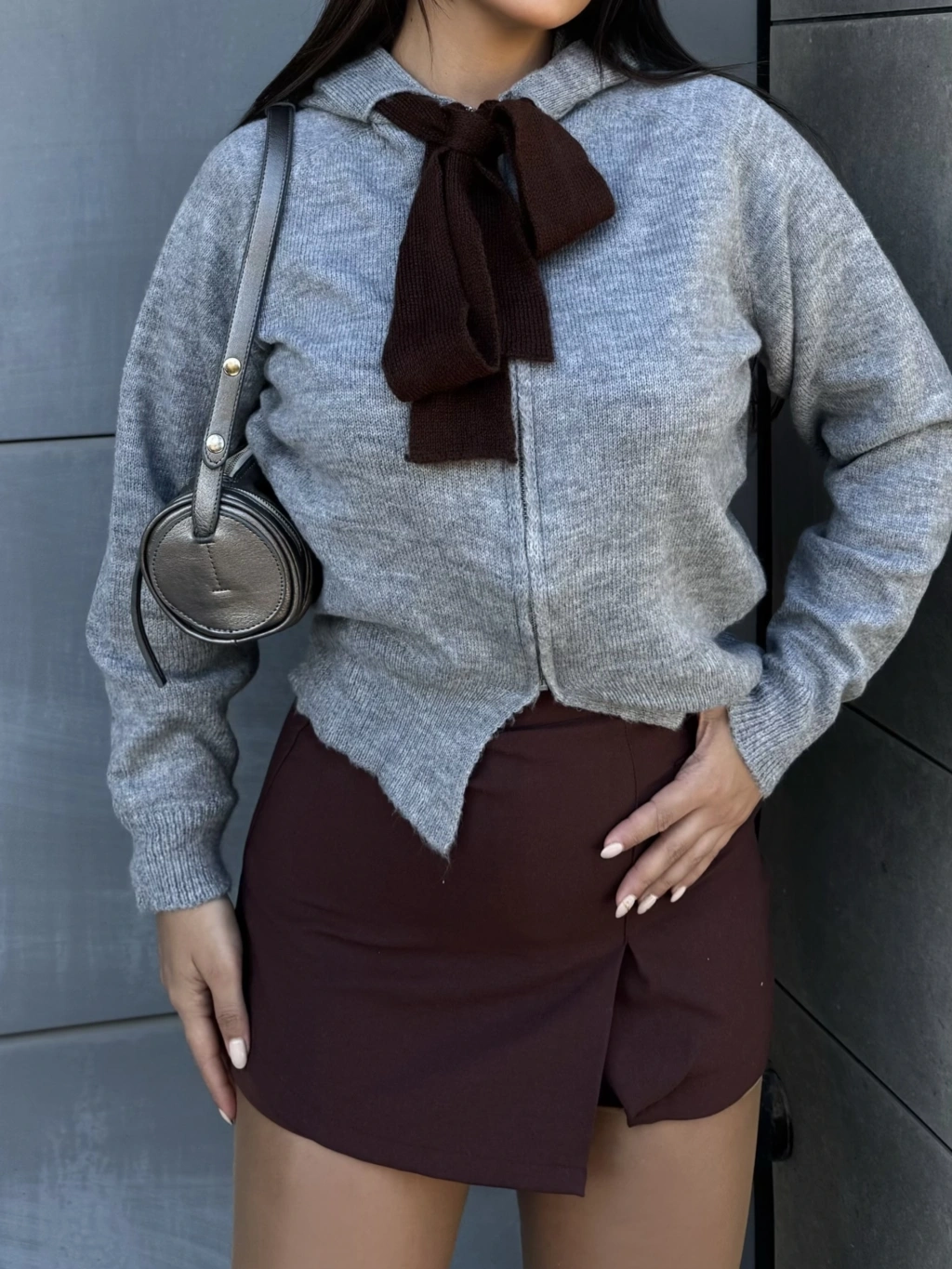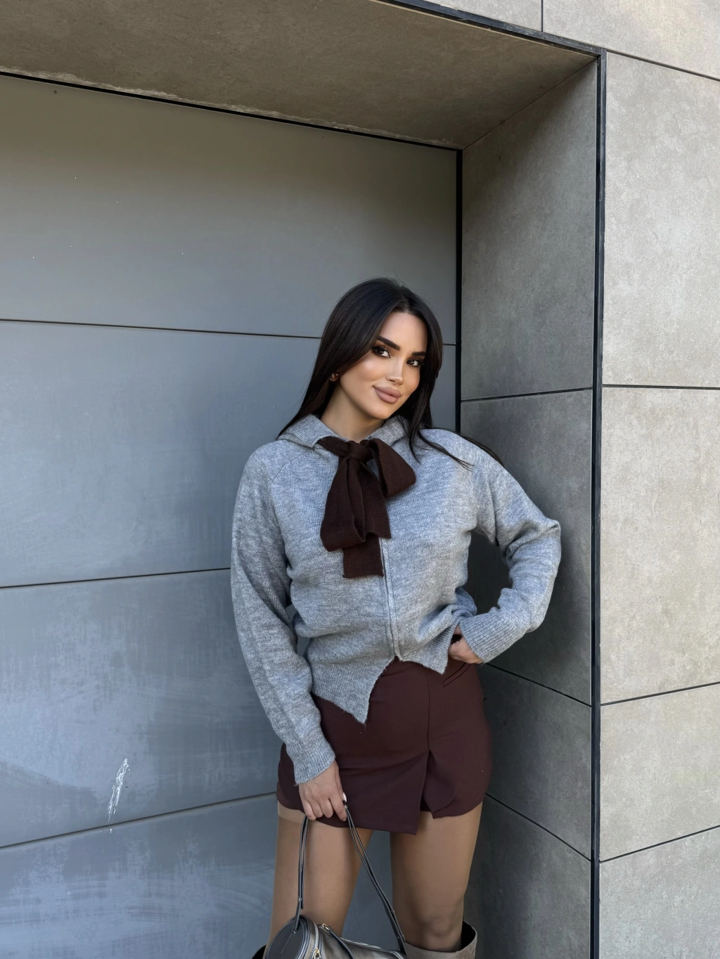 Gri Fularlı Tasarım Bluz