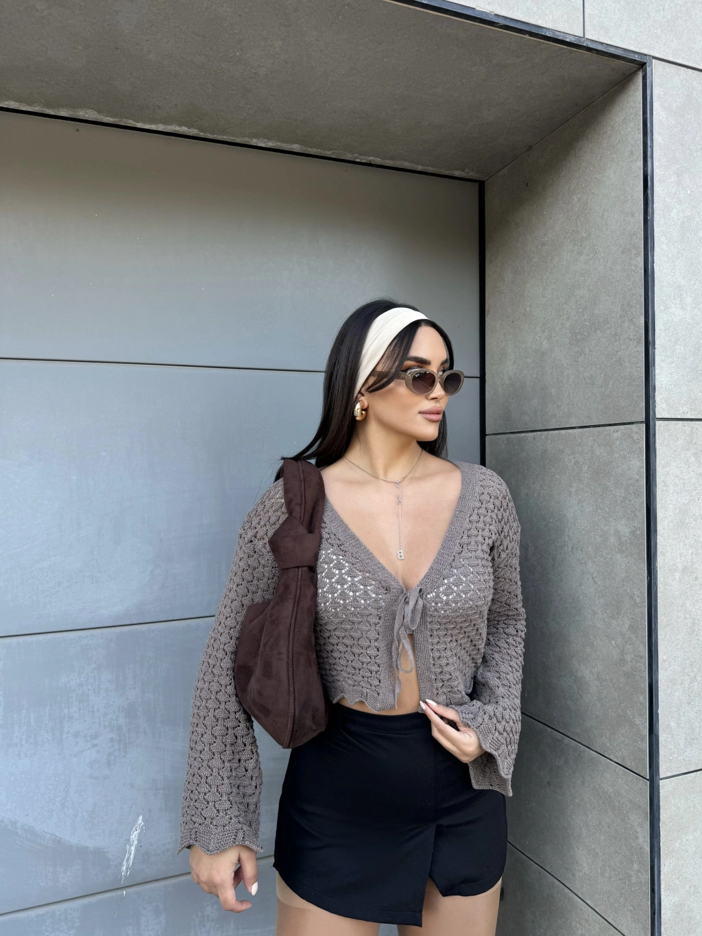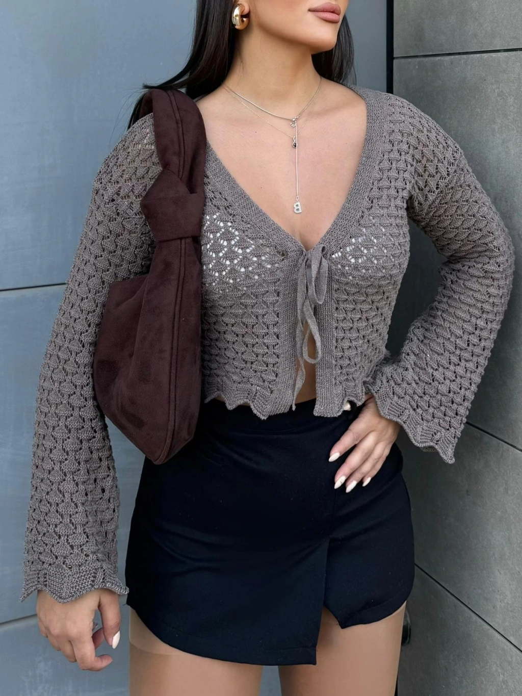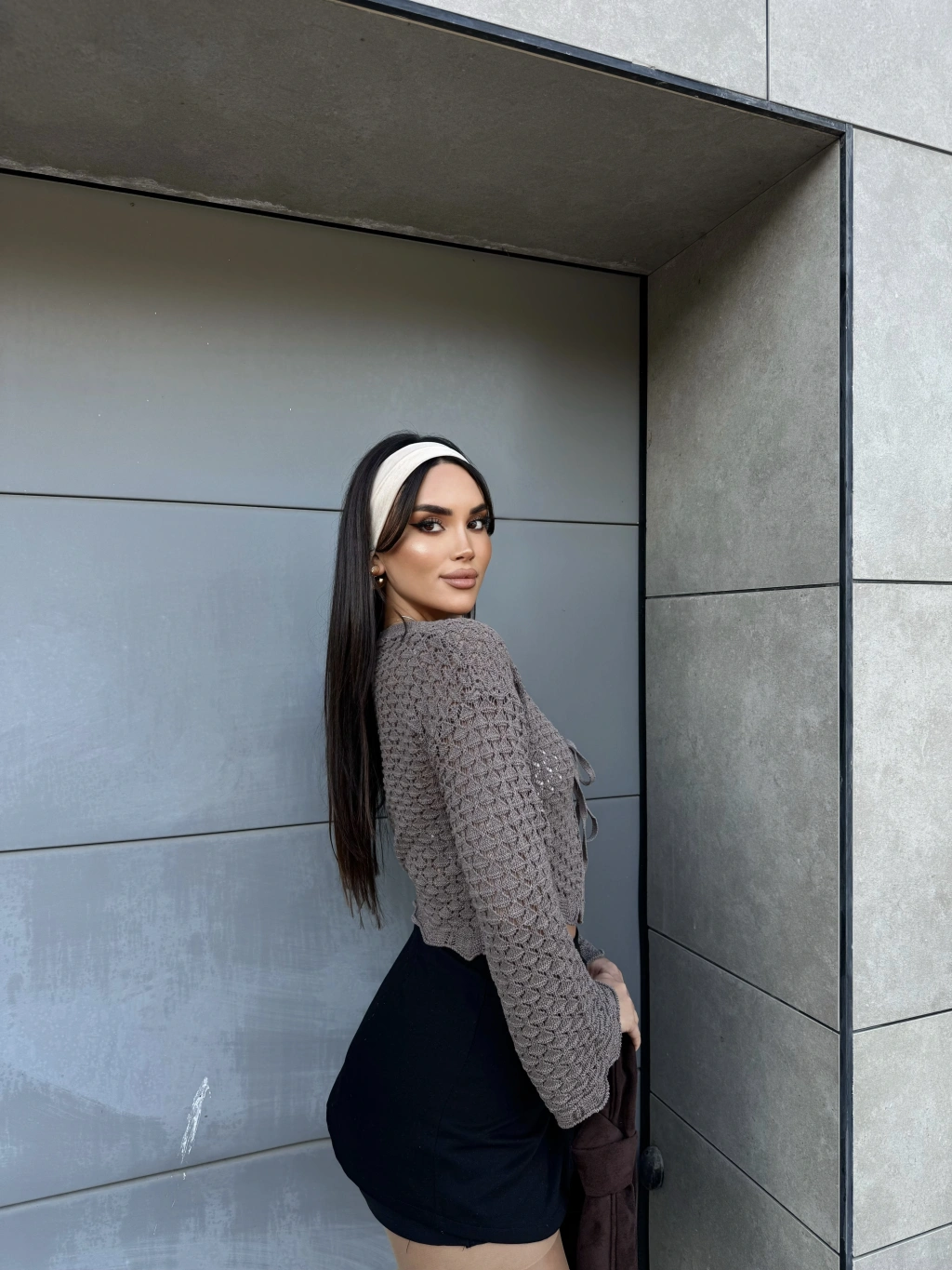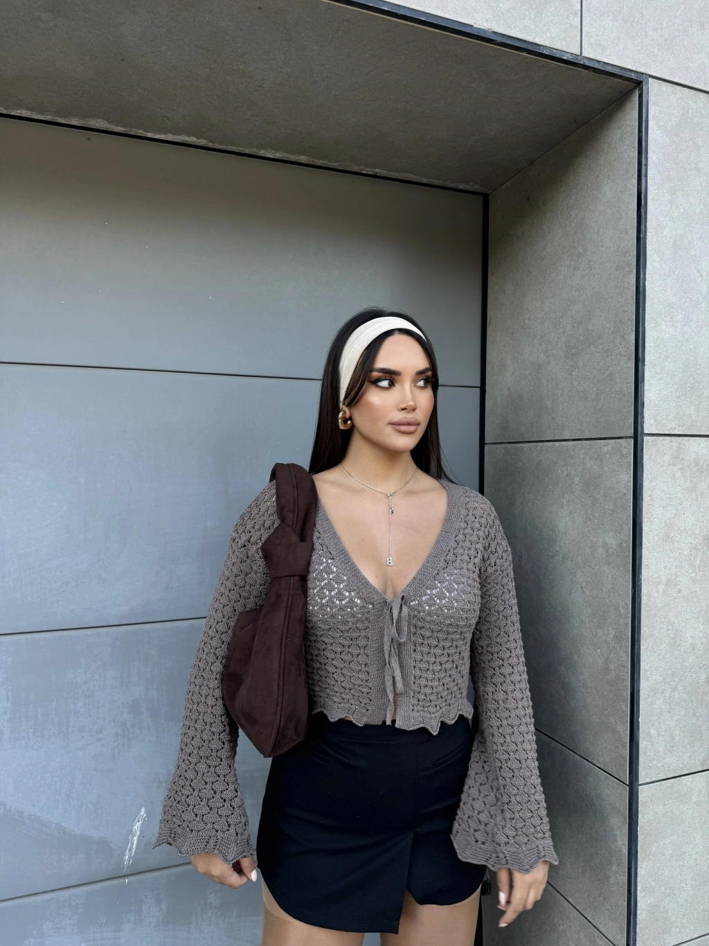 Kahverengi Ajurlu Ön Bağlamalı Triko Bluz