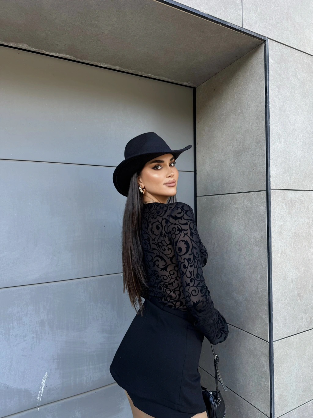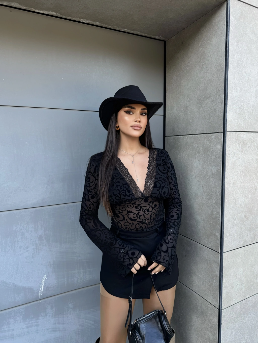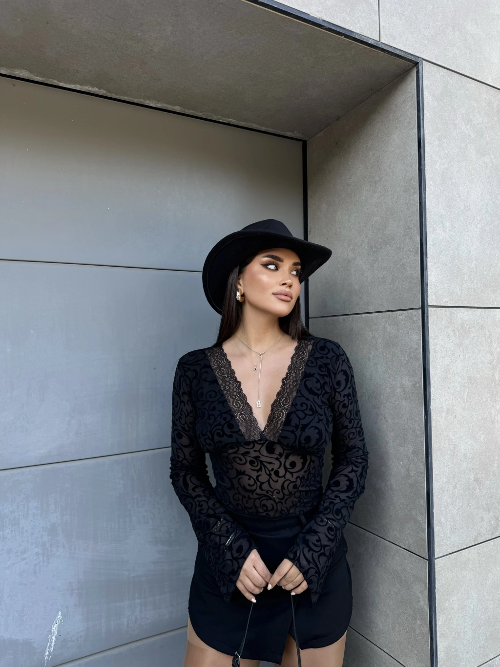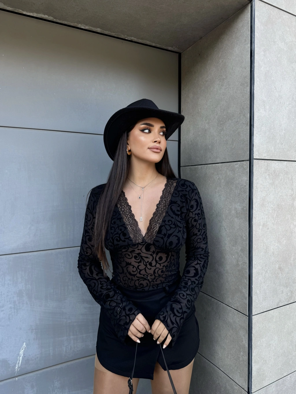Siyah Güpürlü Transparan Bluz
