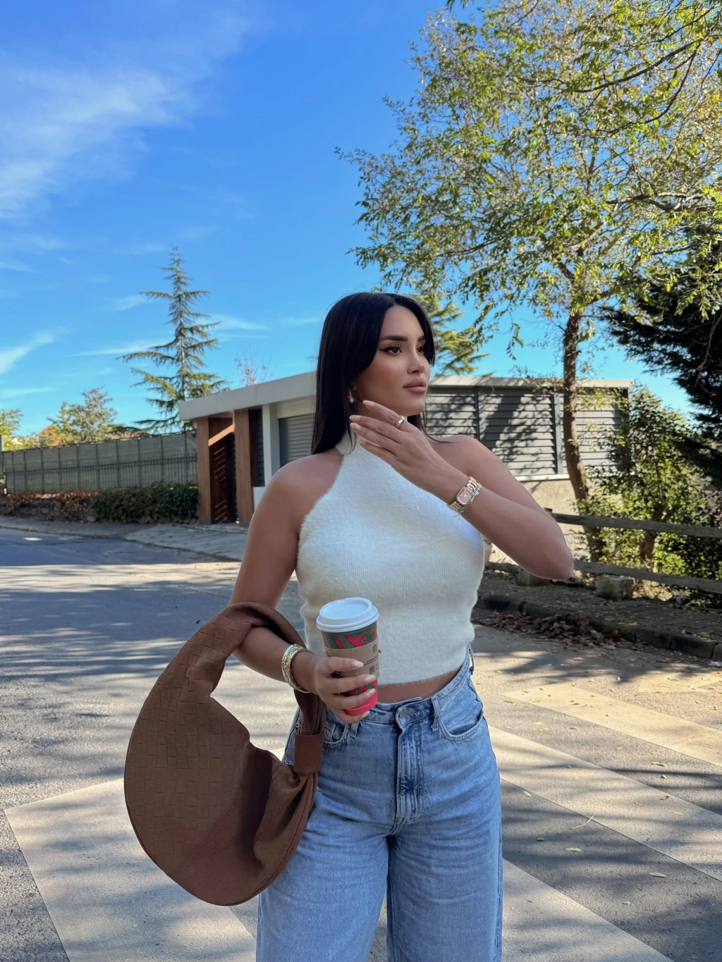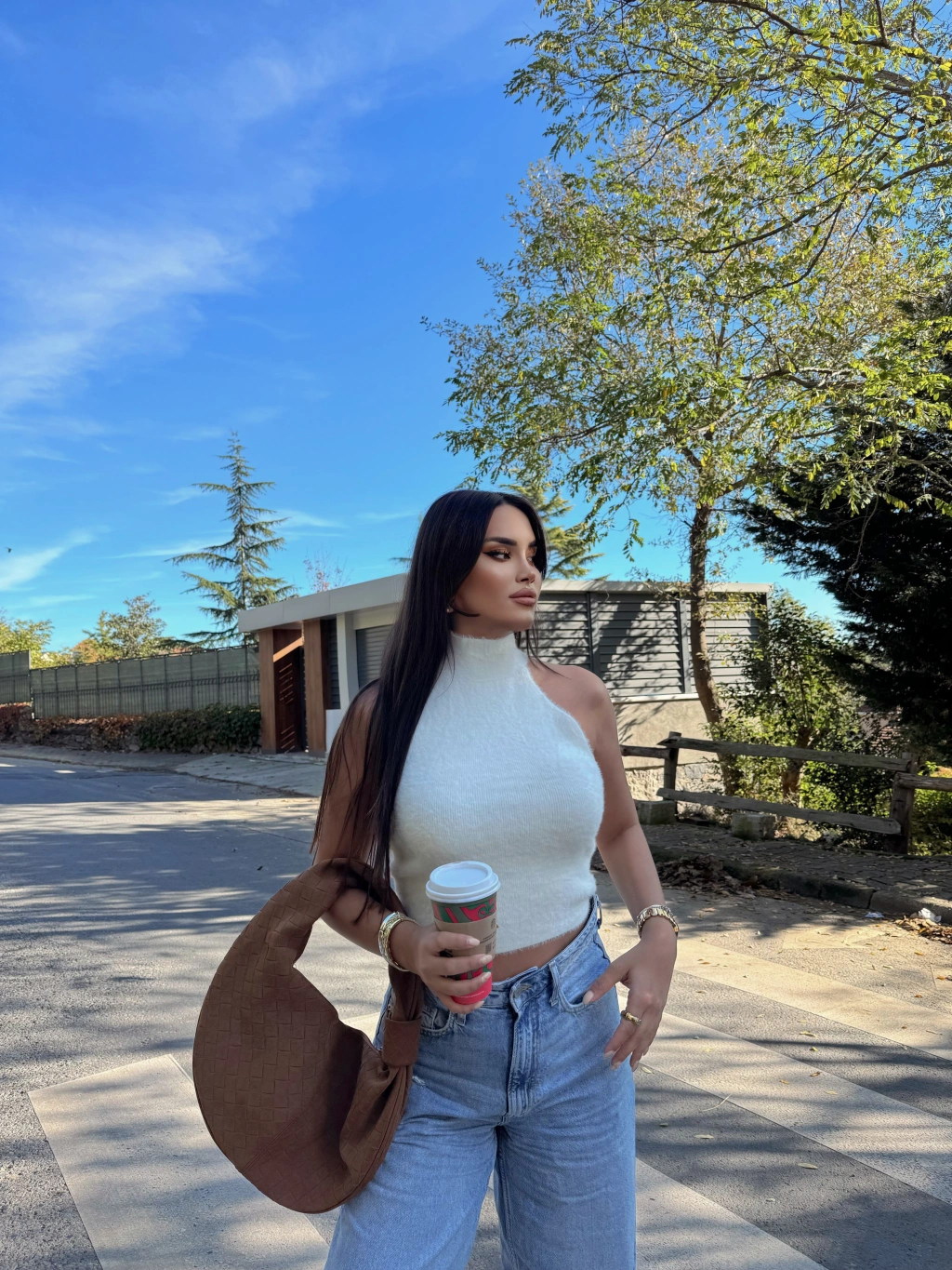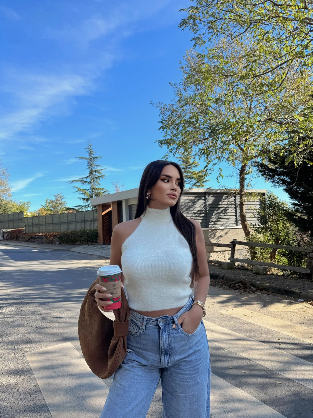 Krem Balıkçı Yaka Yumoş Triko Bluz
