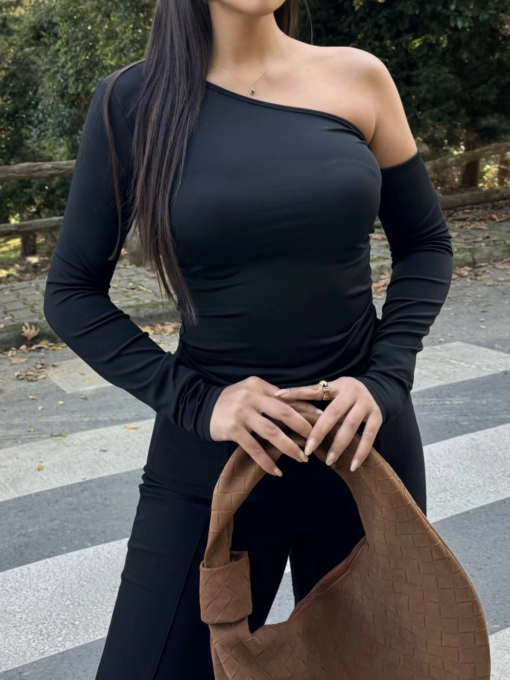 Siyah Tek Omuz Crop