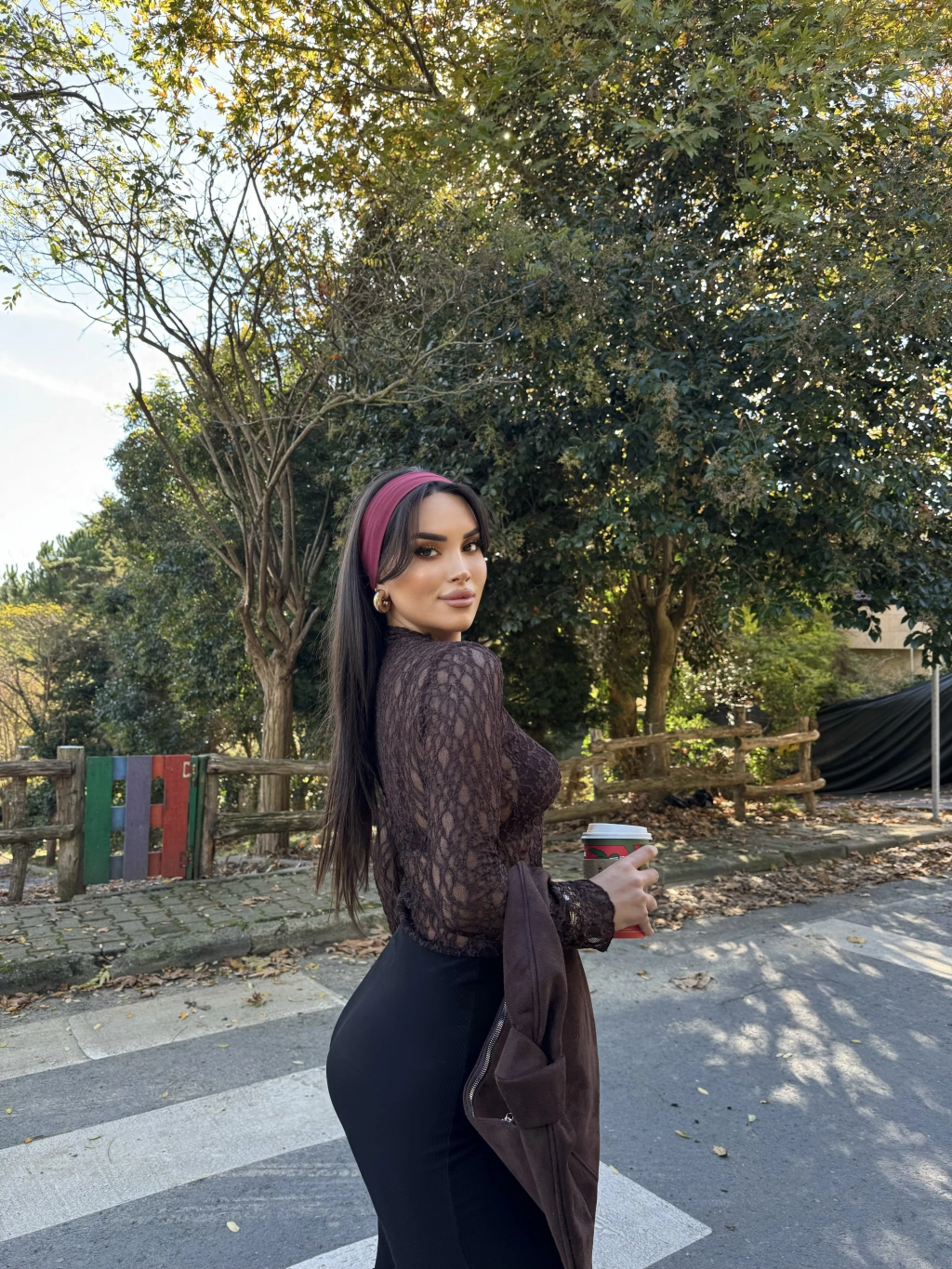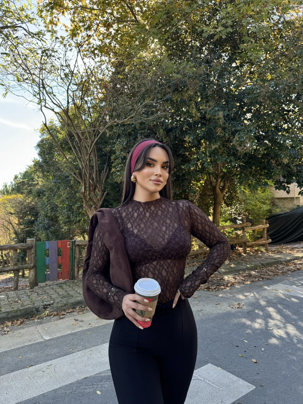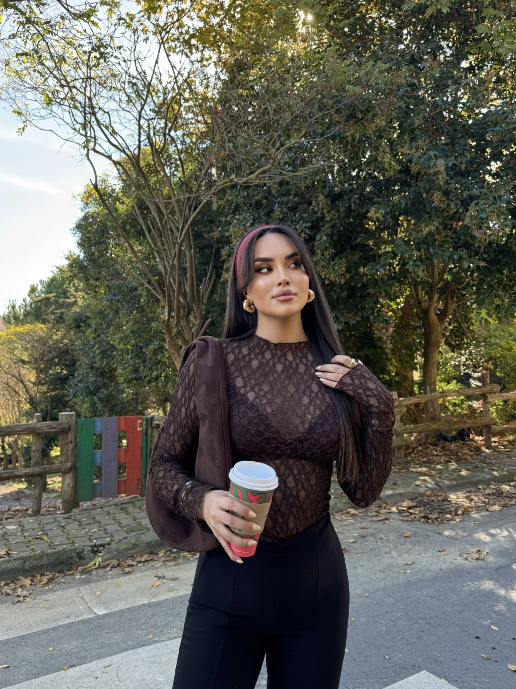 Kahverengi Bürümcük Dantel Detay Bluz