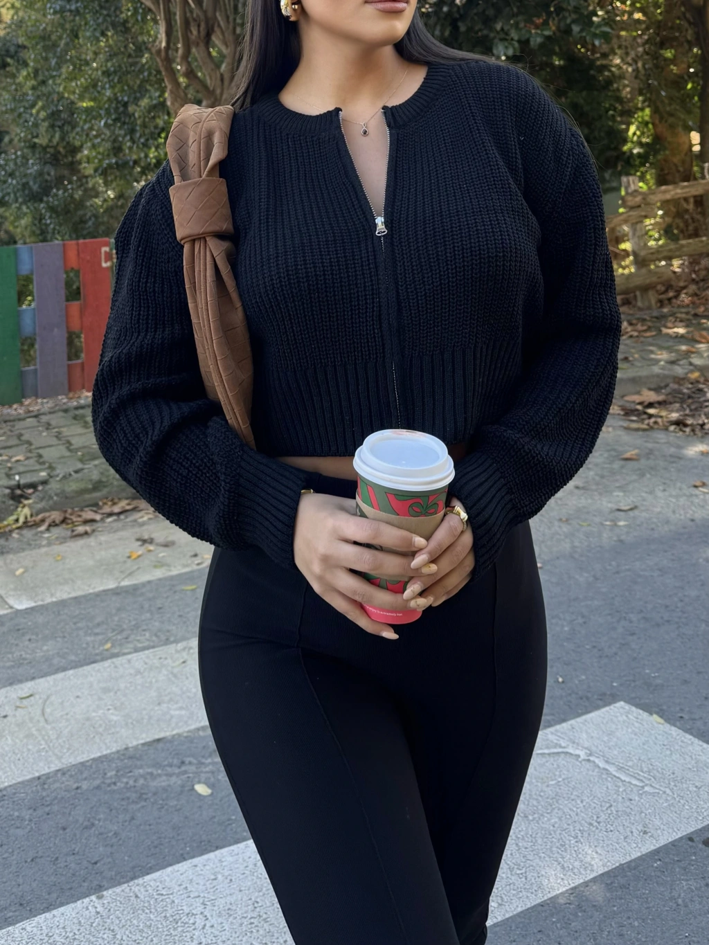 Siyah Fermuarlı Triko Hırka