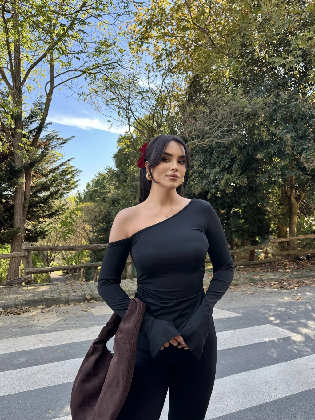 Siyah Tek Omuz Büzgülü Asimetrik Crop