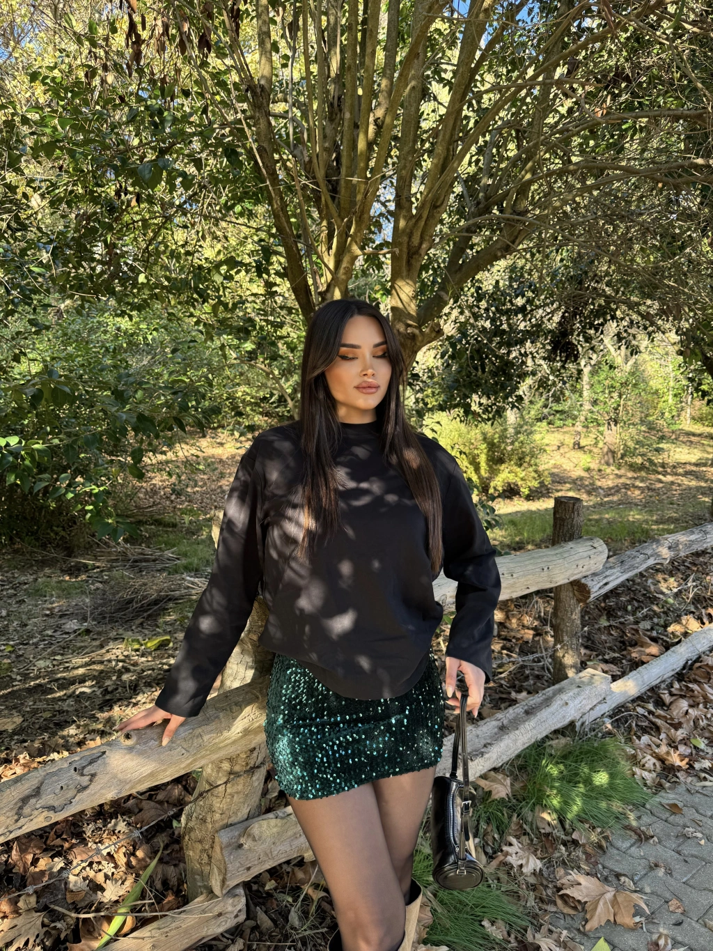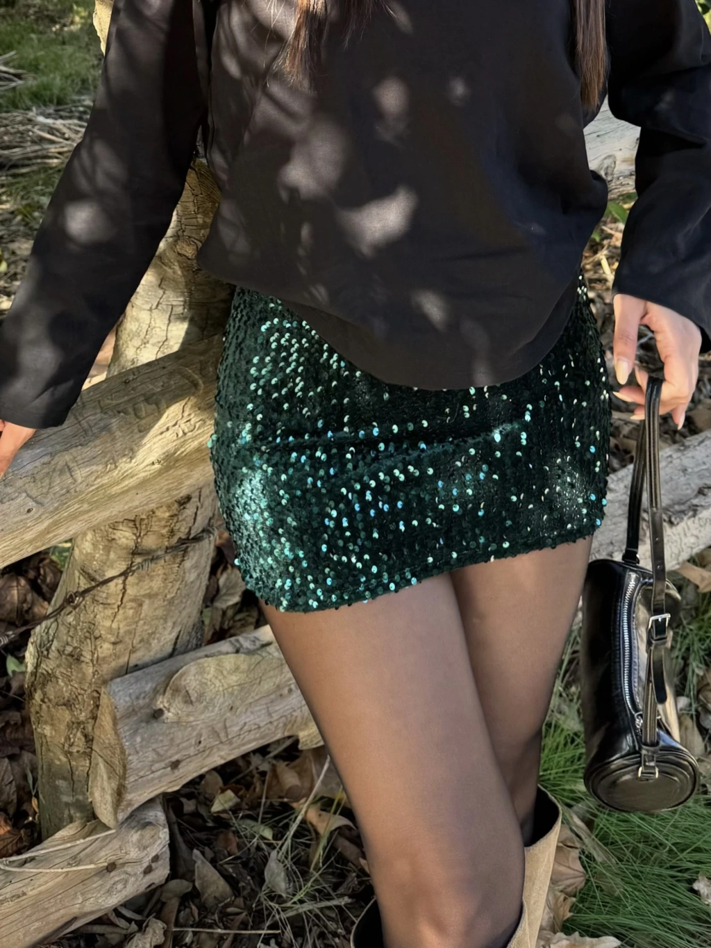 Zümrüt Yeşili Payetlli Şort Etek