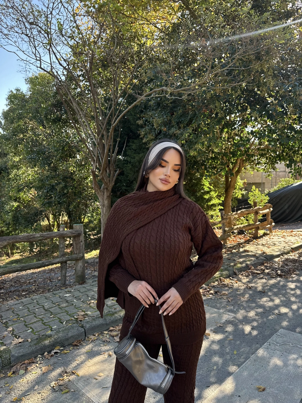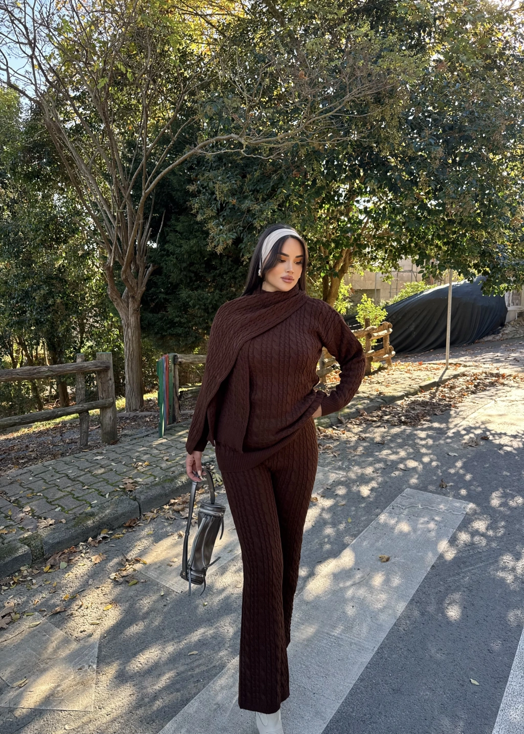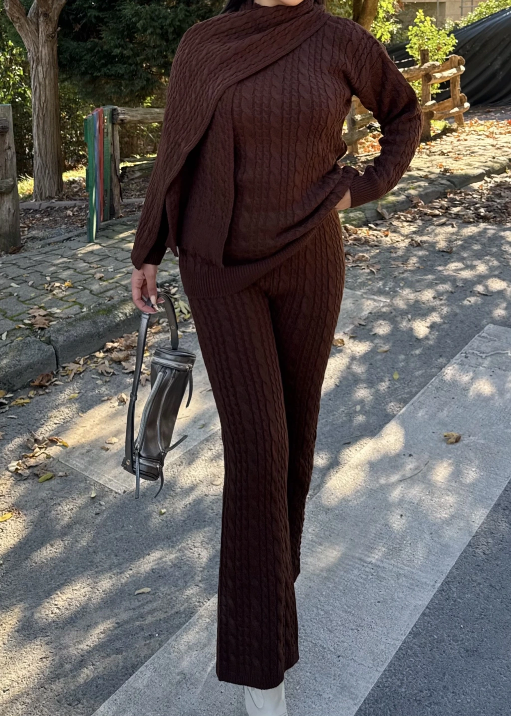 Kahverengi Üçlü Triko Takım