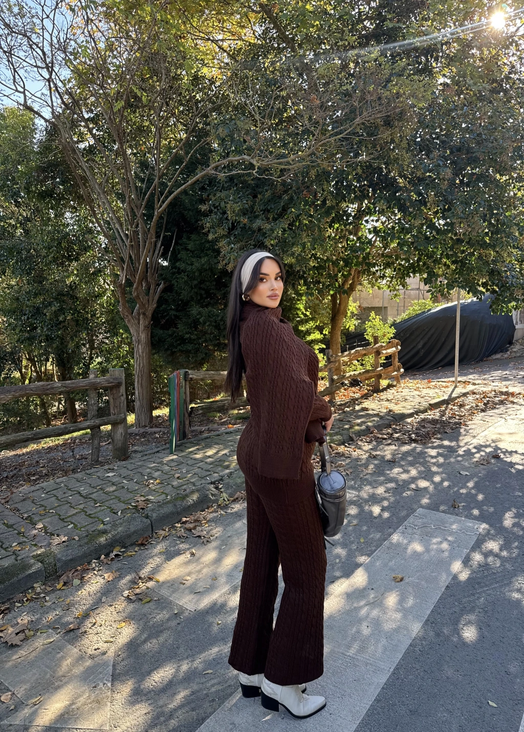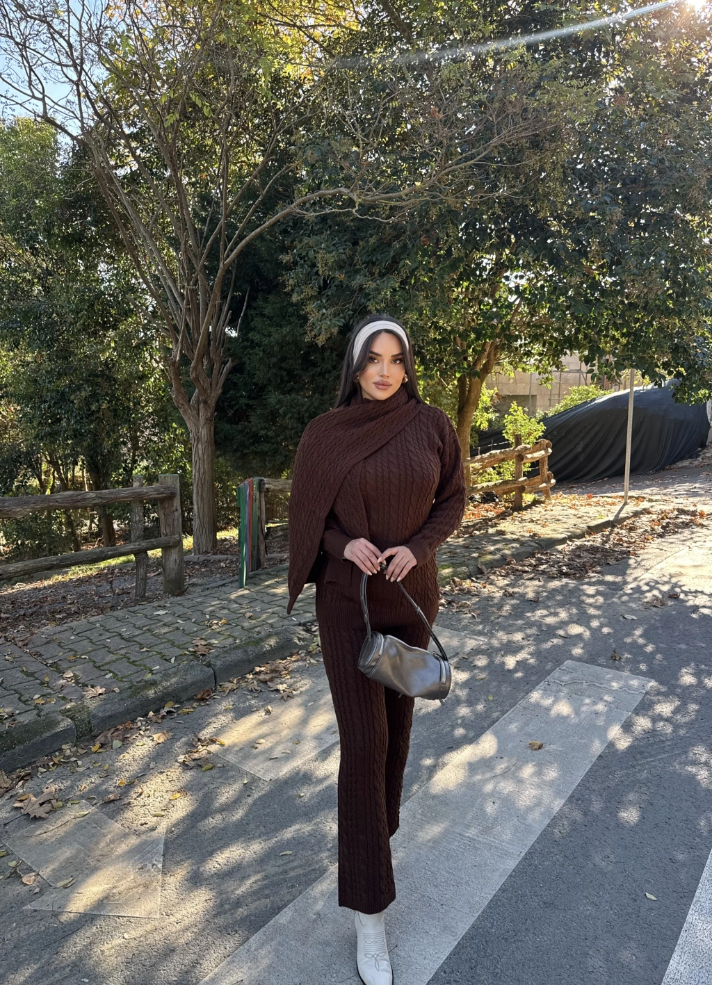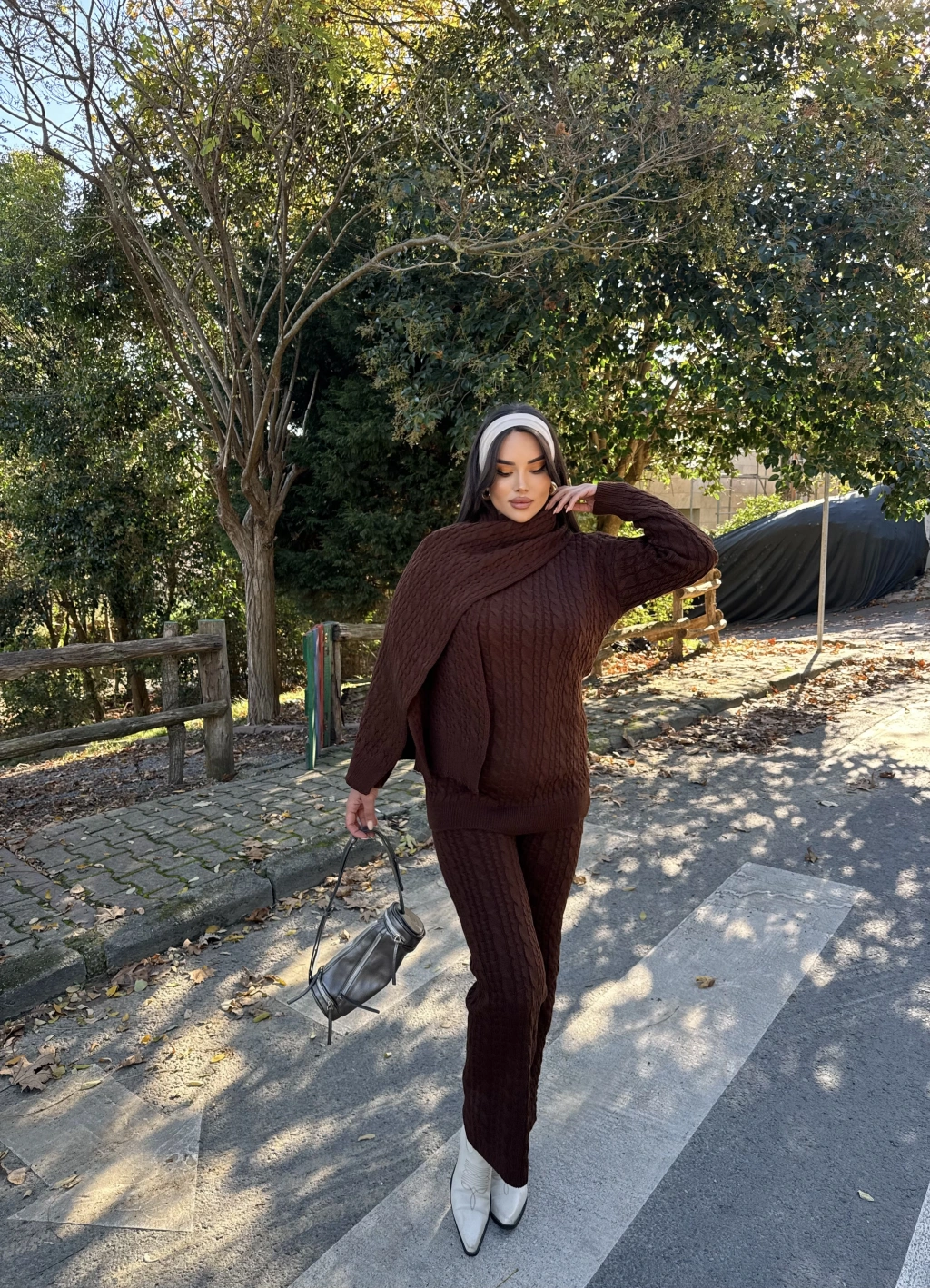 Kahverengi Üçlü Triko Takım