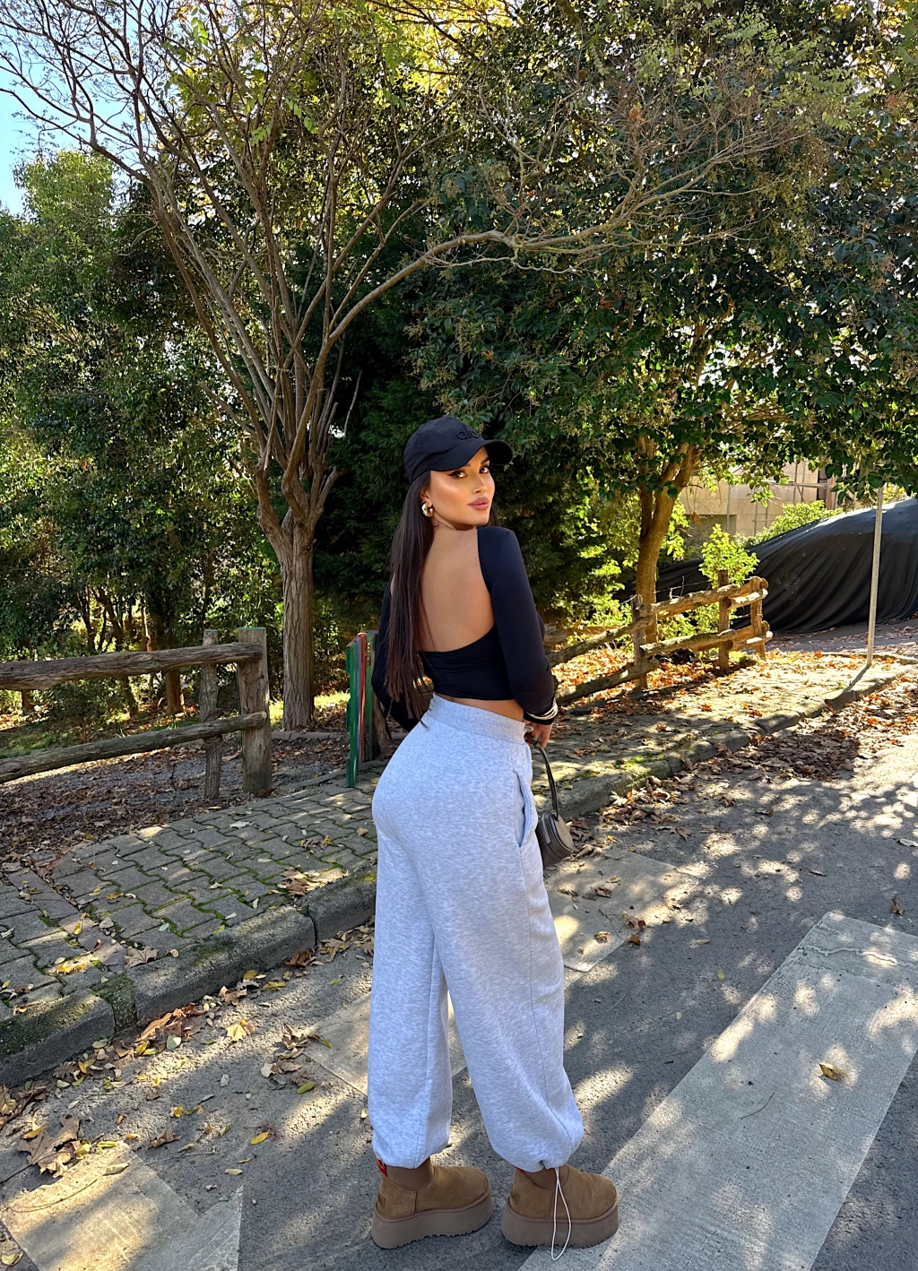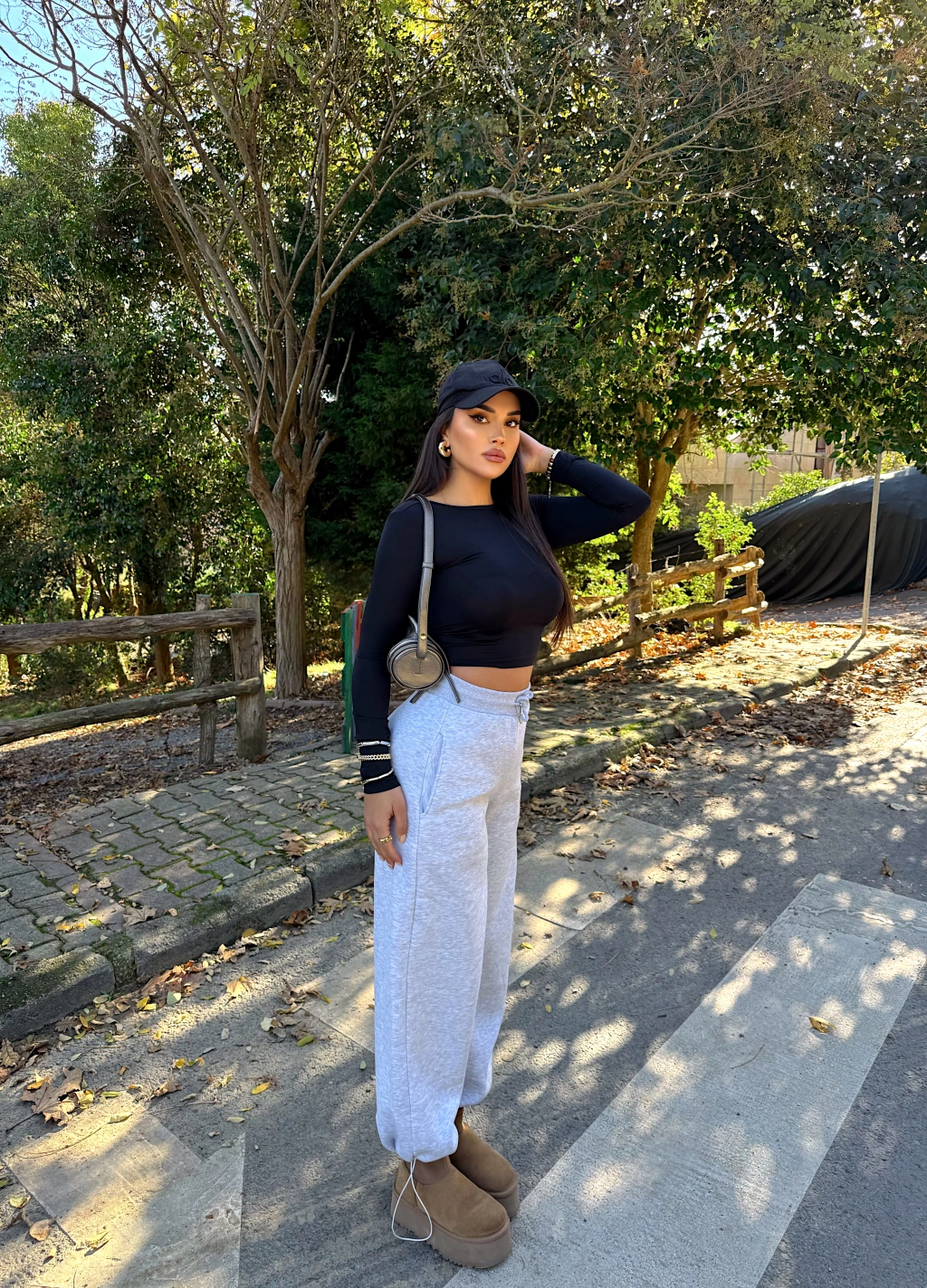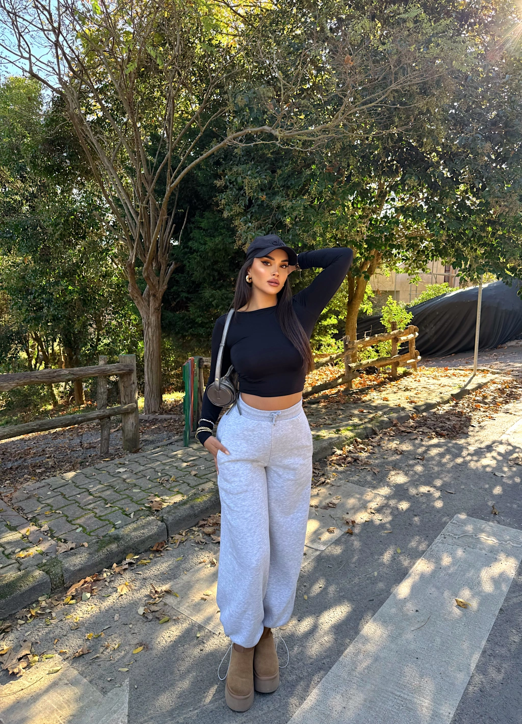 Gri Şardonlu Barrel Fit Eşofman Altı