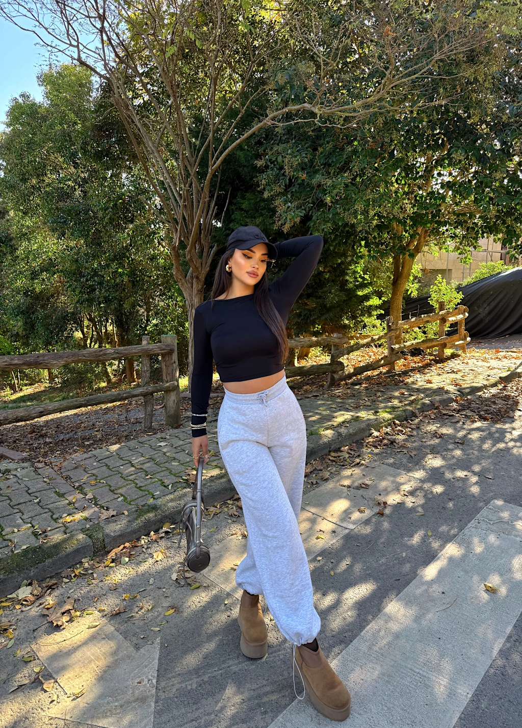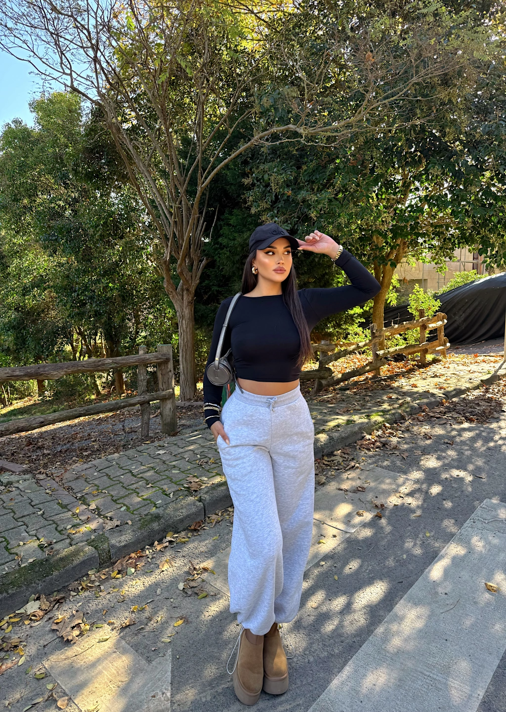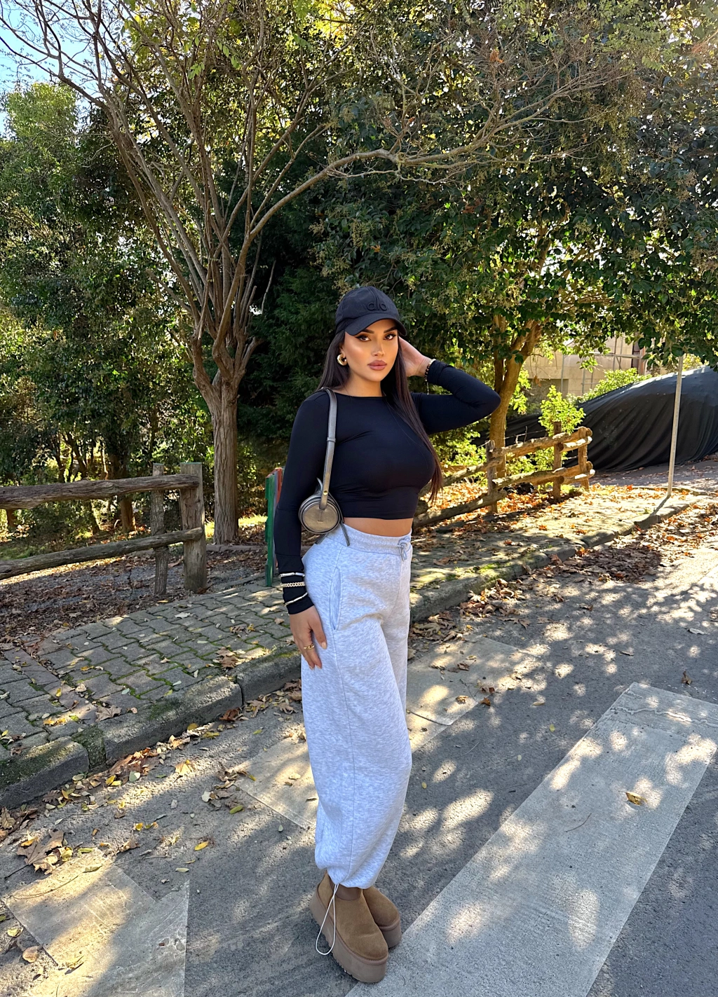 Gri Şardonlu Barrel Fit Eşofman Altı