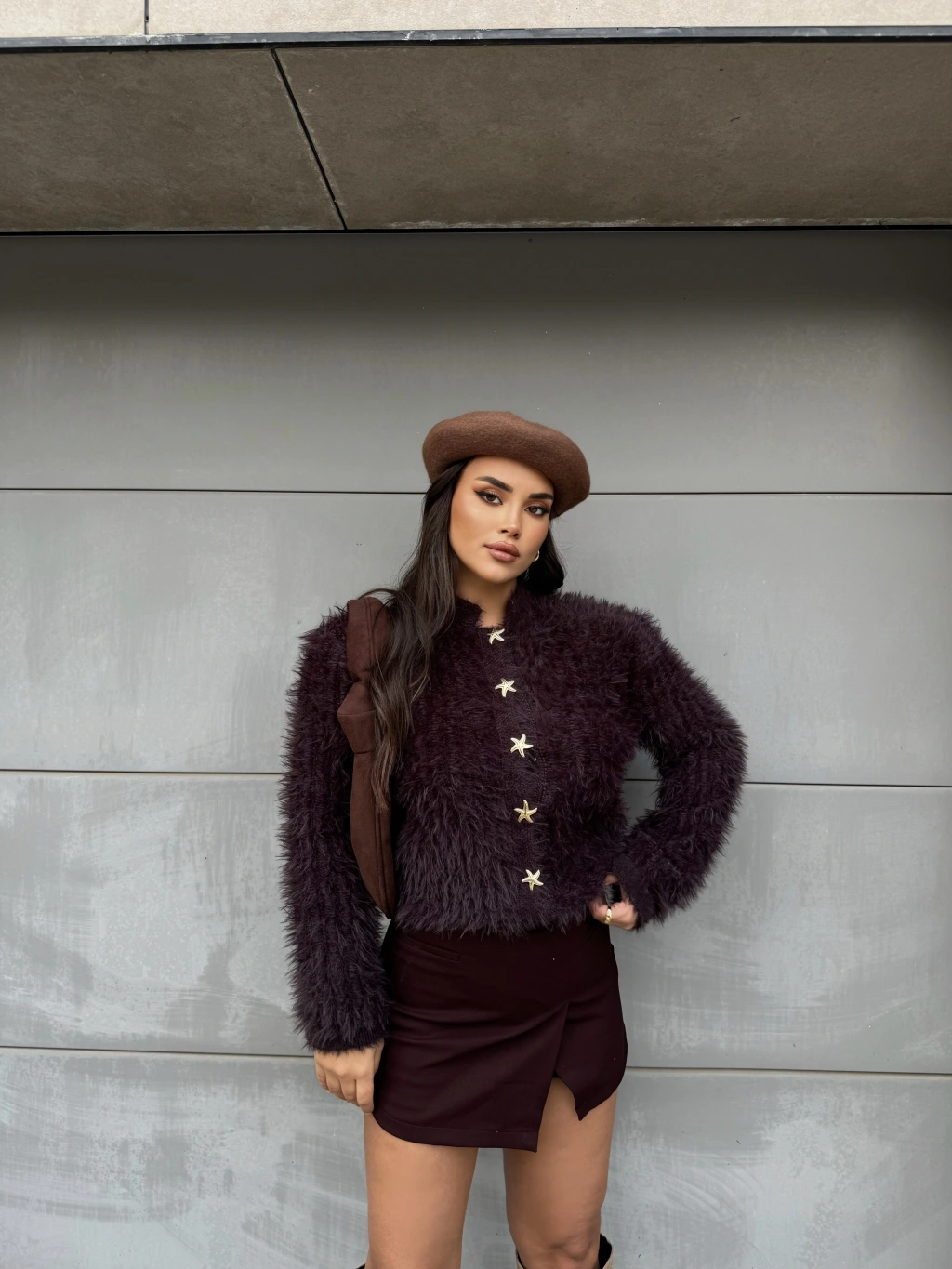Kahverengi Yumoş Deniz Yıldızlı Kazak