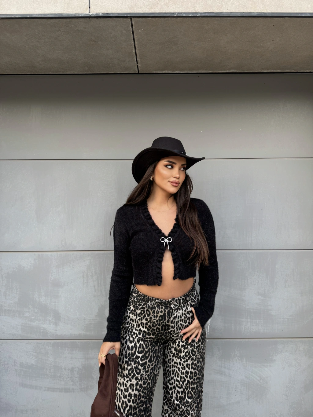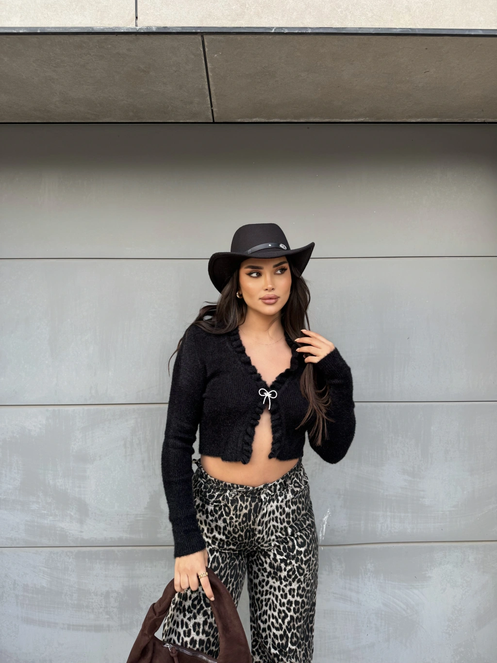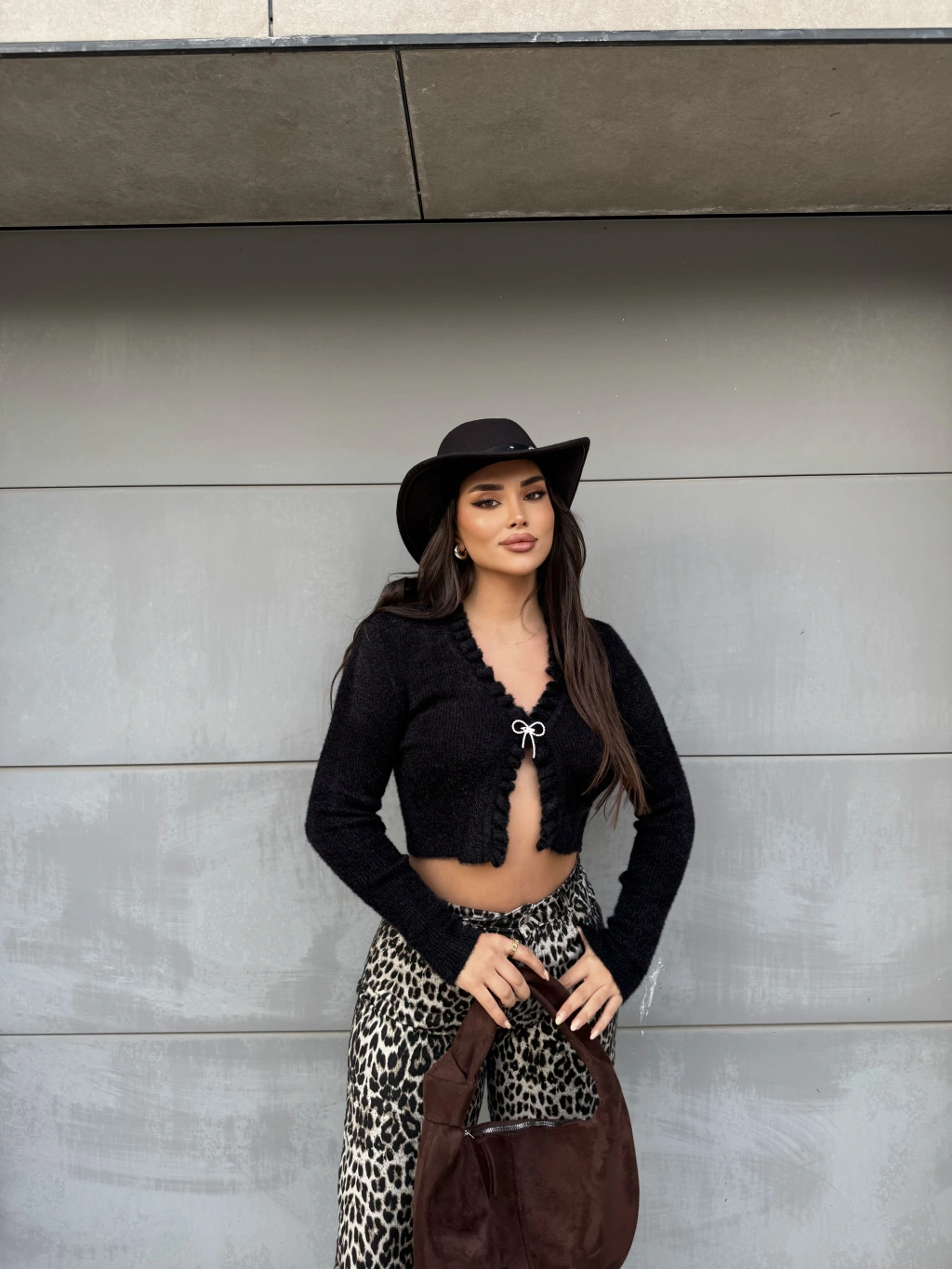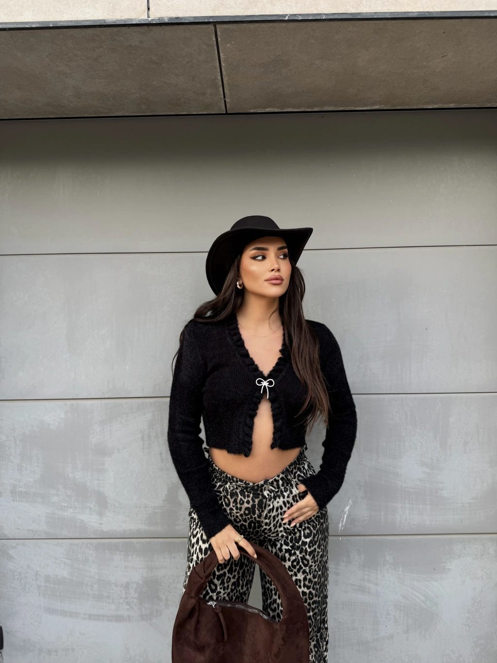 Siyah Fiyonk Aksesuarlı Triko Bluz