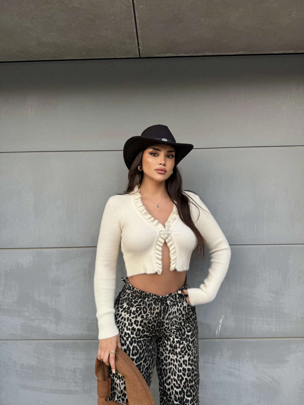 Krem Fiyonk Aksesuarlı Triko Bluz