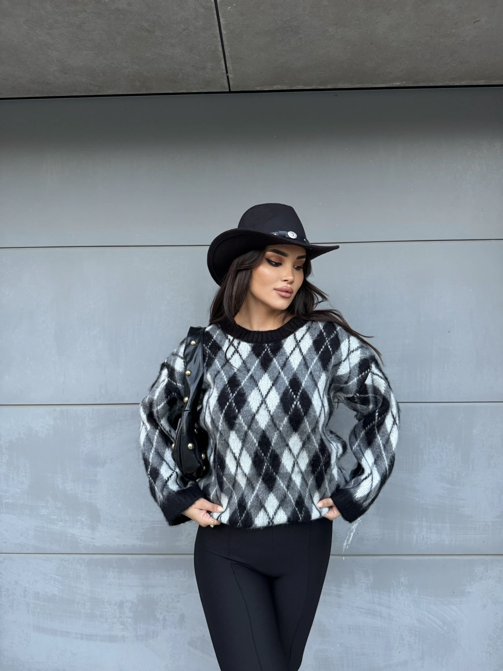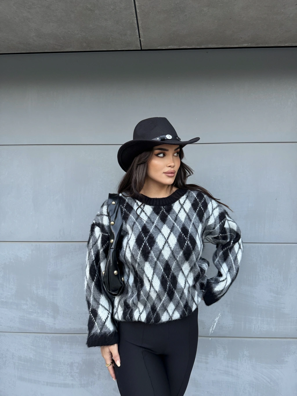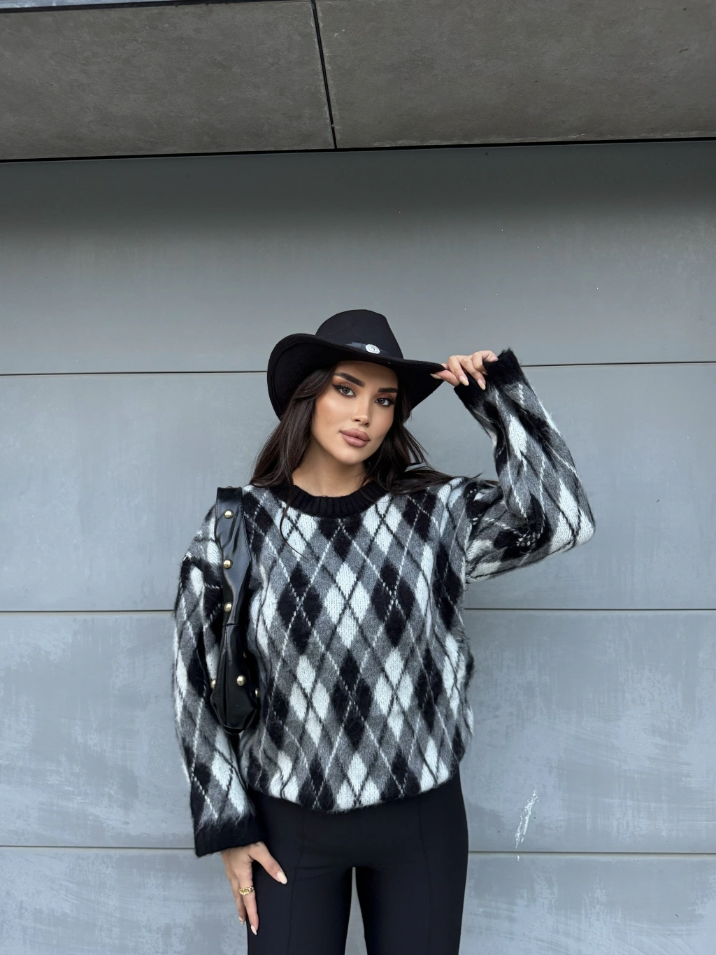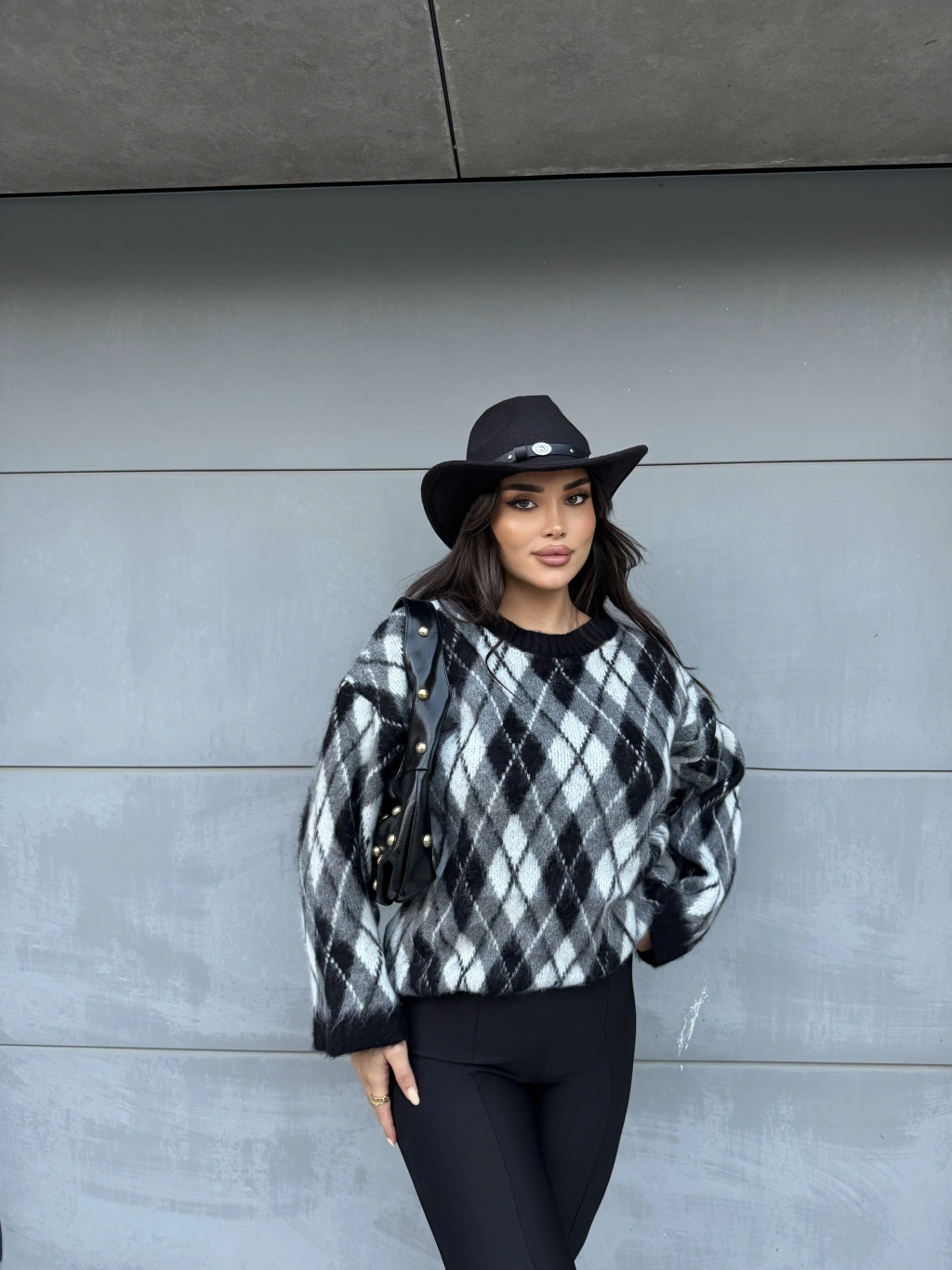 Siyah Şardonlu Baklava Desen Kazak