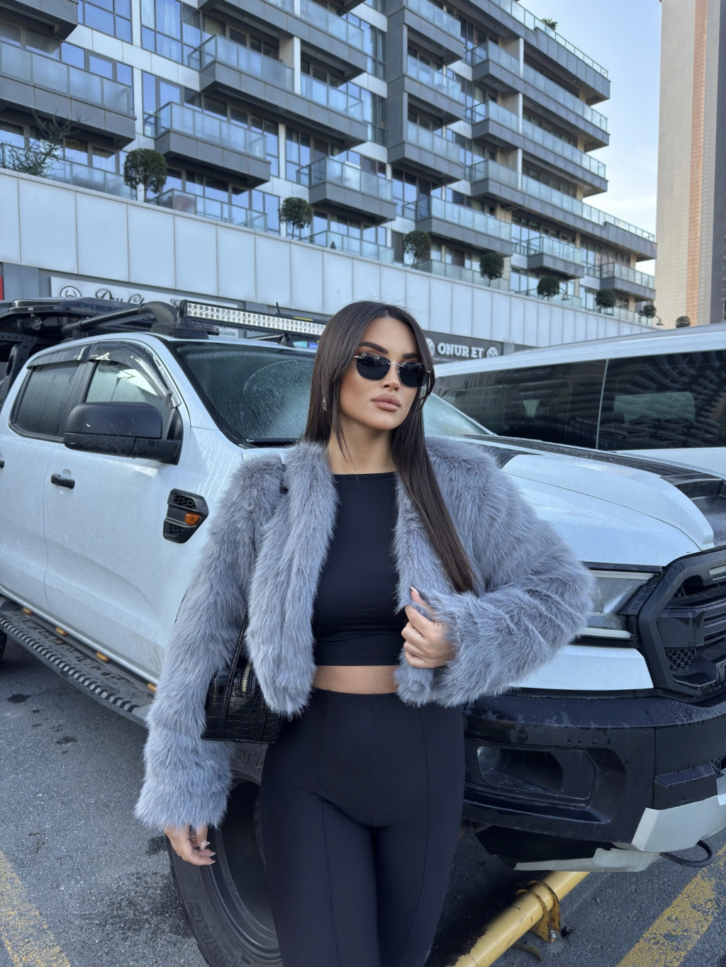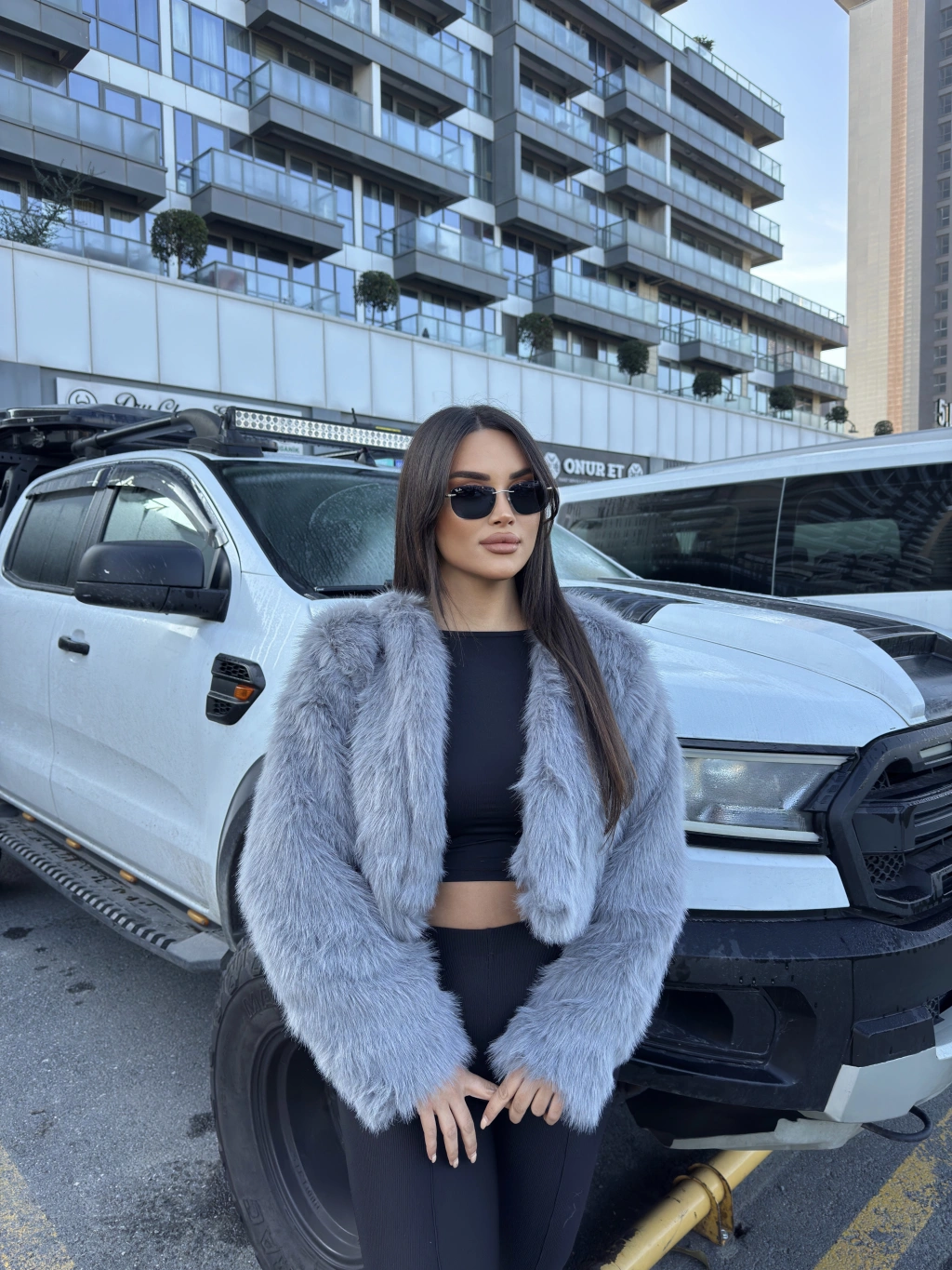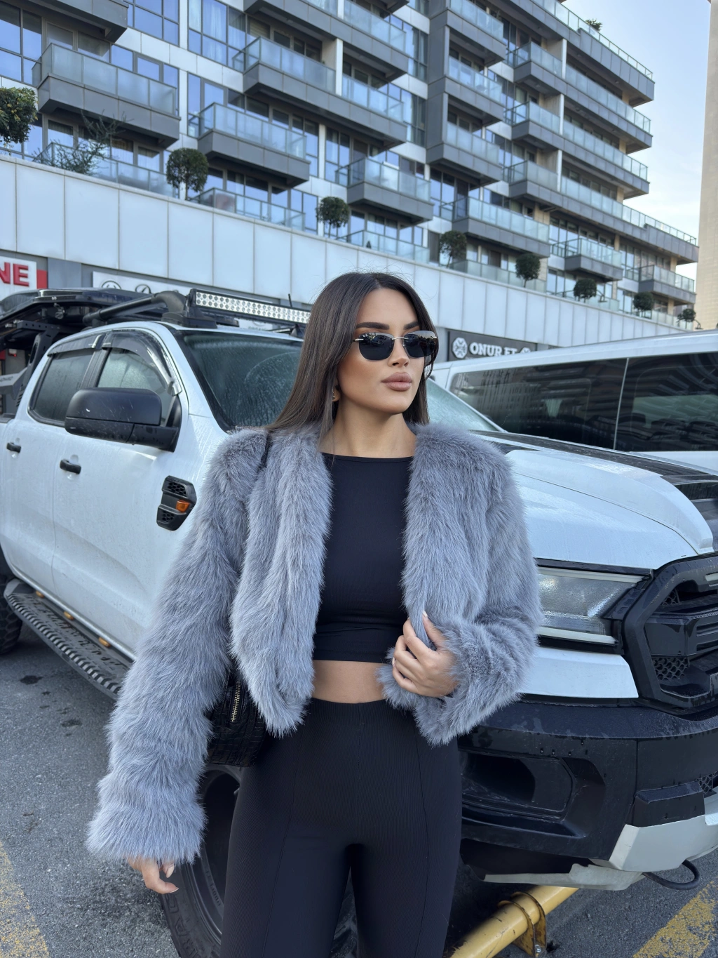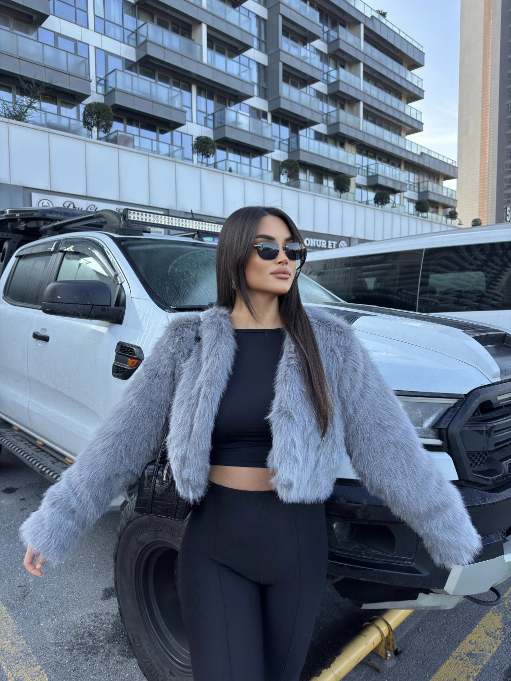 Gri Crop Kürk Ceket