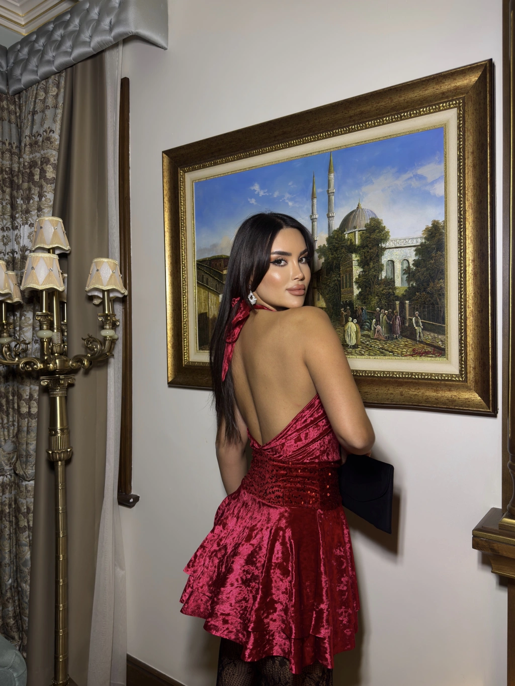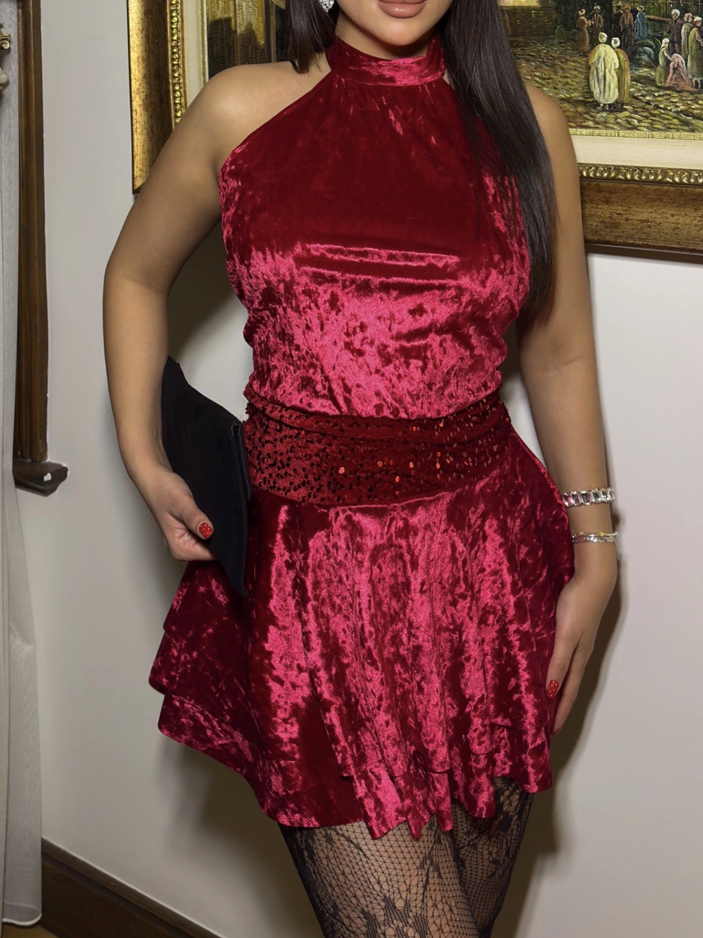 Kırmızı Kadife Sırt Detay Elbise