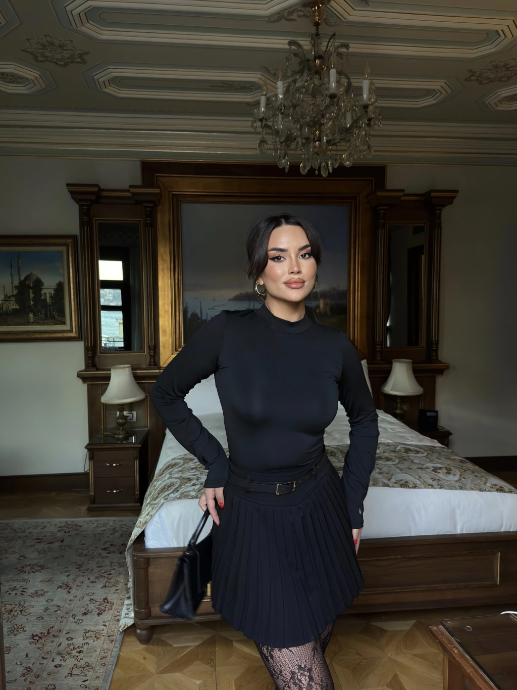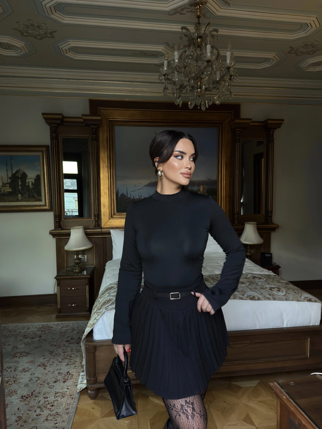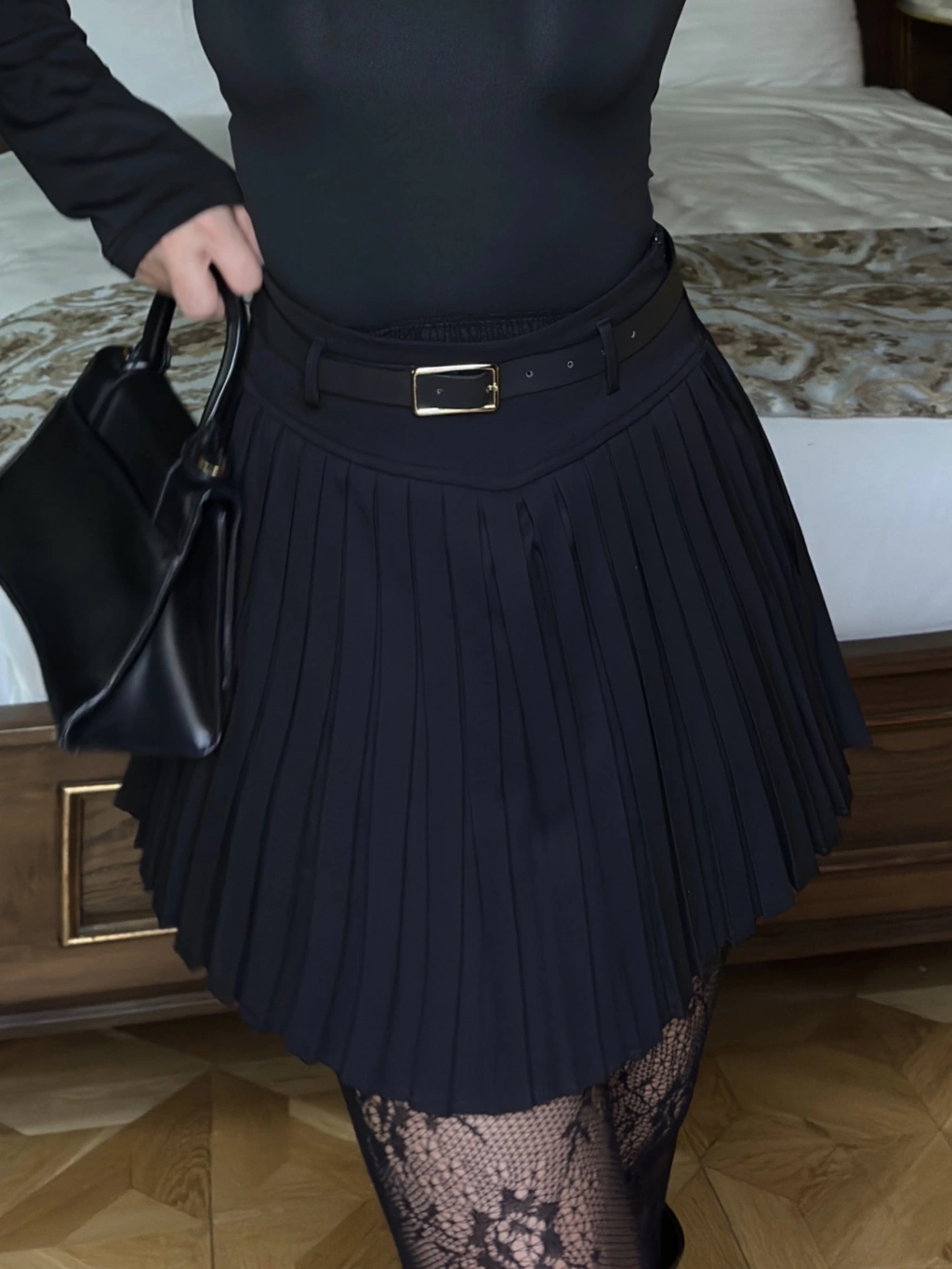 Siyah Piliseli Şort Etek