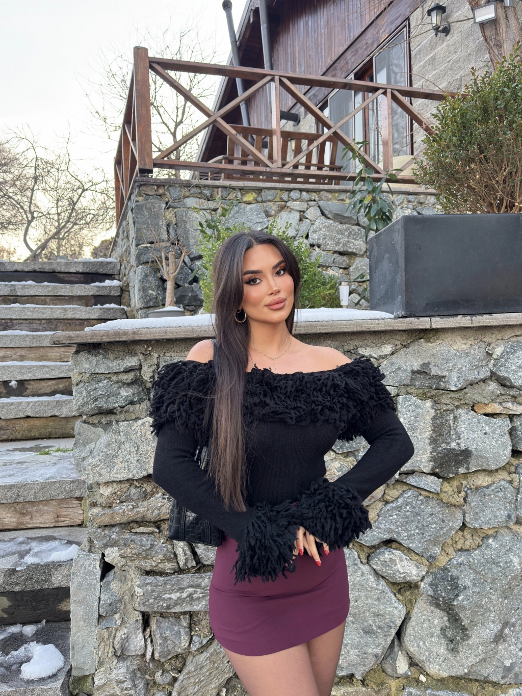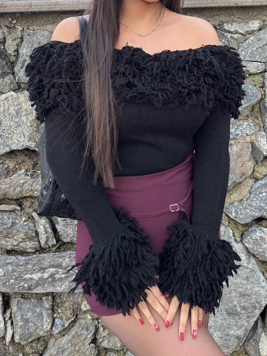 Siyah Püsküllü Madonna Kazak