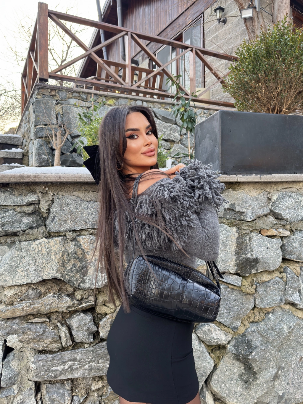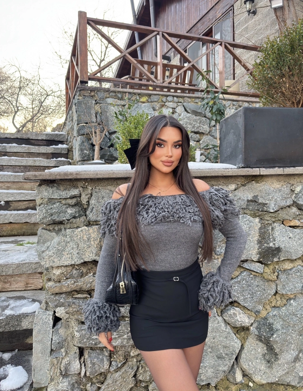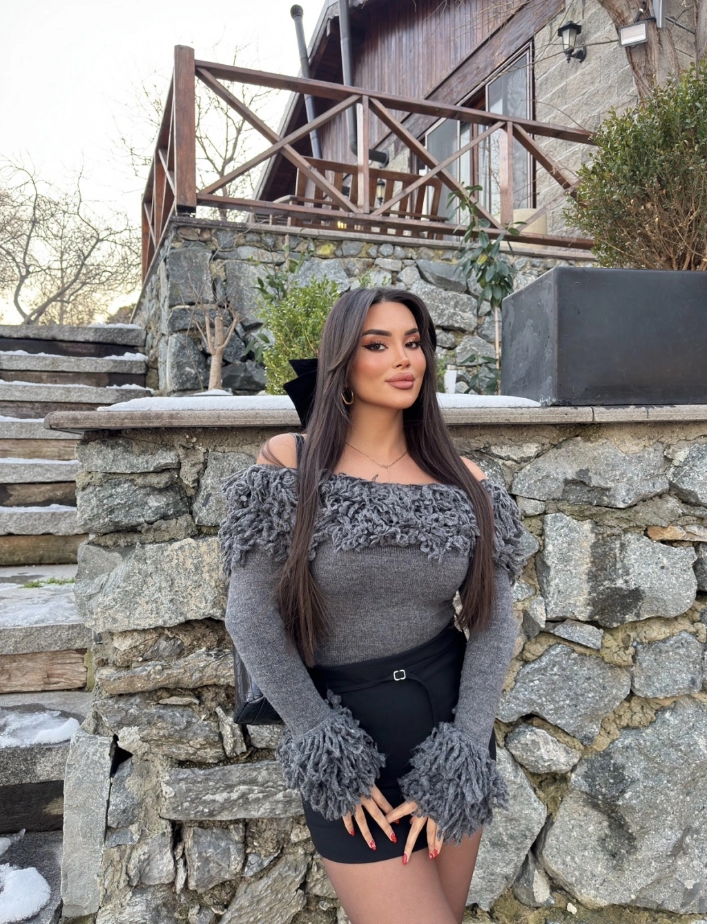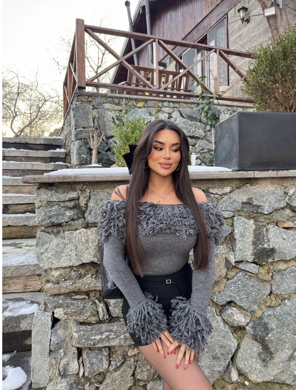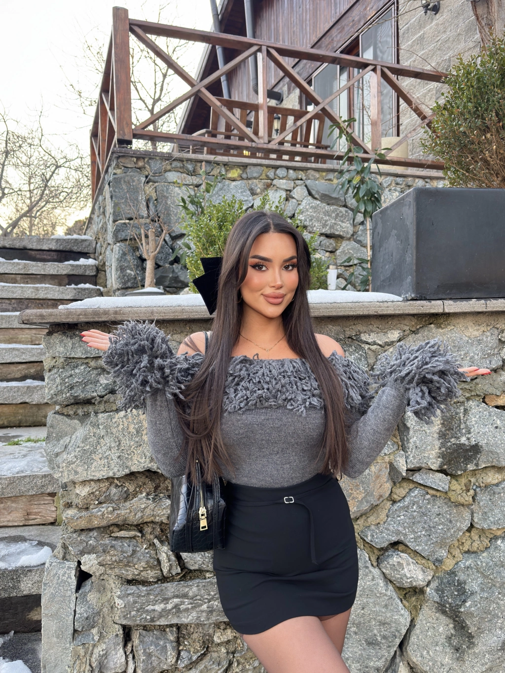 Antrasit Püsküllü Madonna Kazak