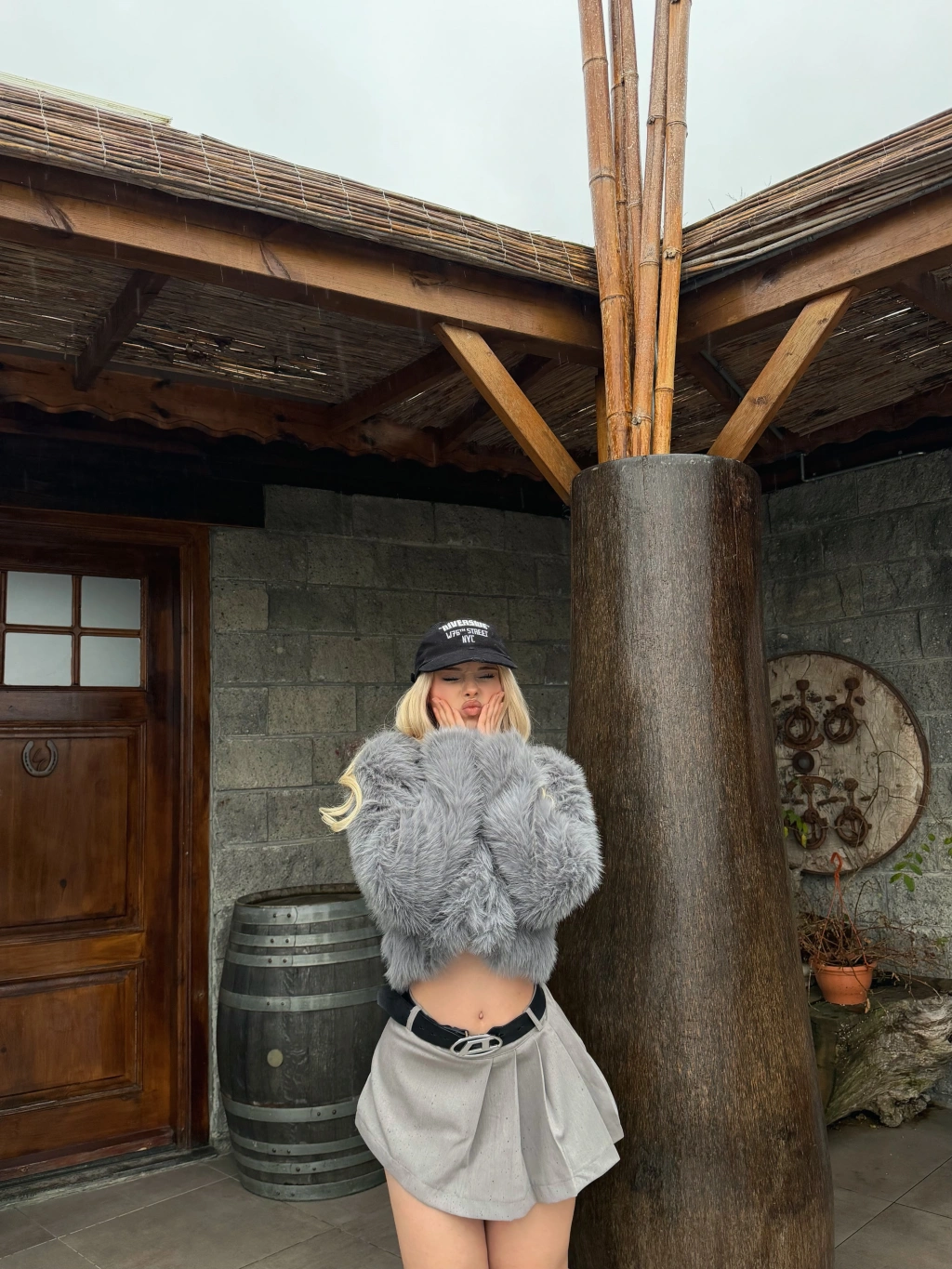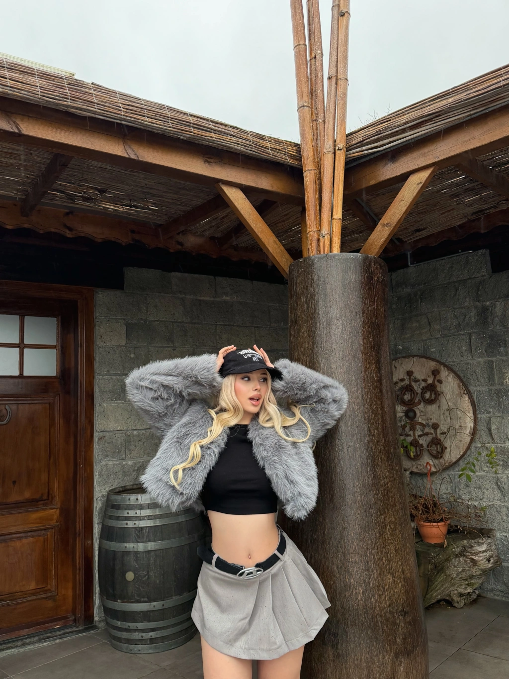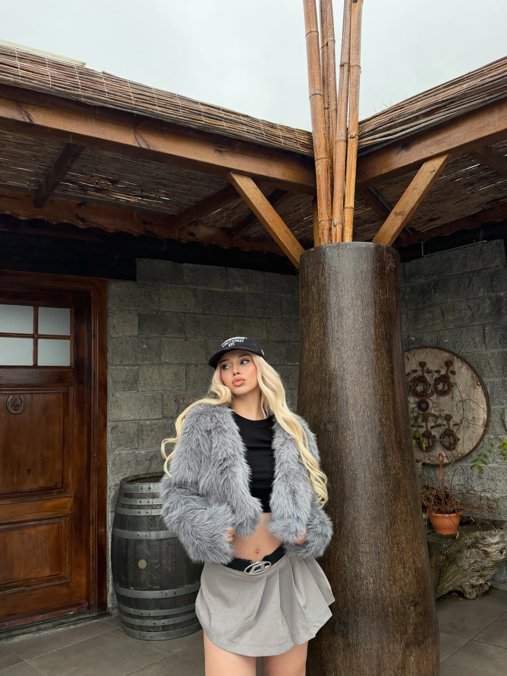 Gri Crop Kürk Ceket
